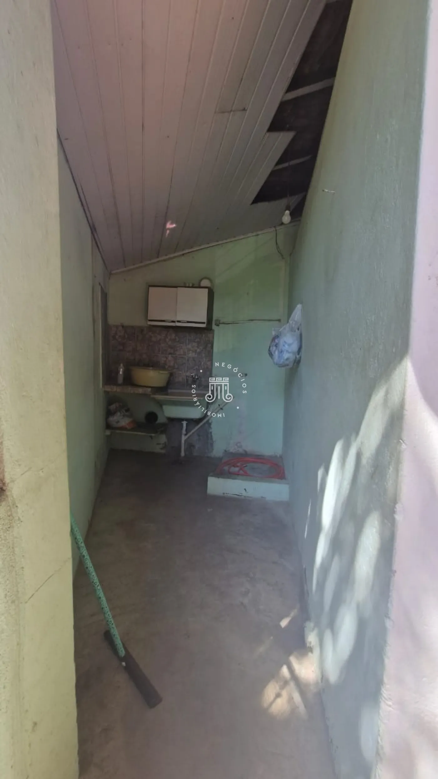 Segunda casa com sala , cozinha, sala de jantar, 01 banheiro, 02 dormitórios, ampla varanda com lavanderia e um salão grande comercial com 01 banheiro que cabe 05 carros.