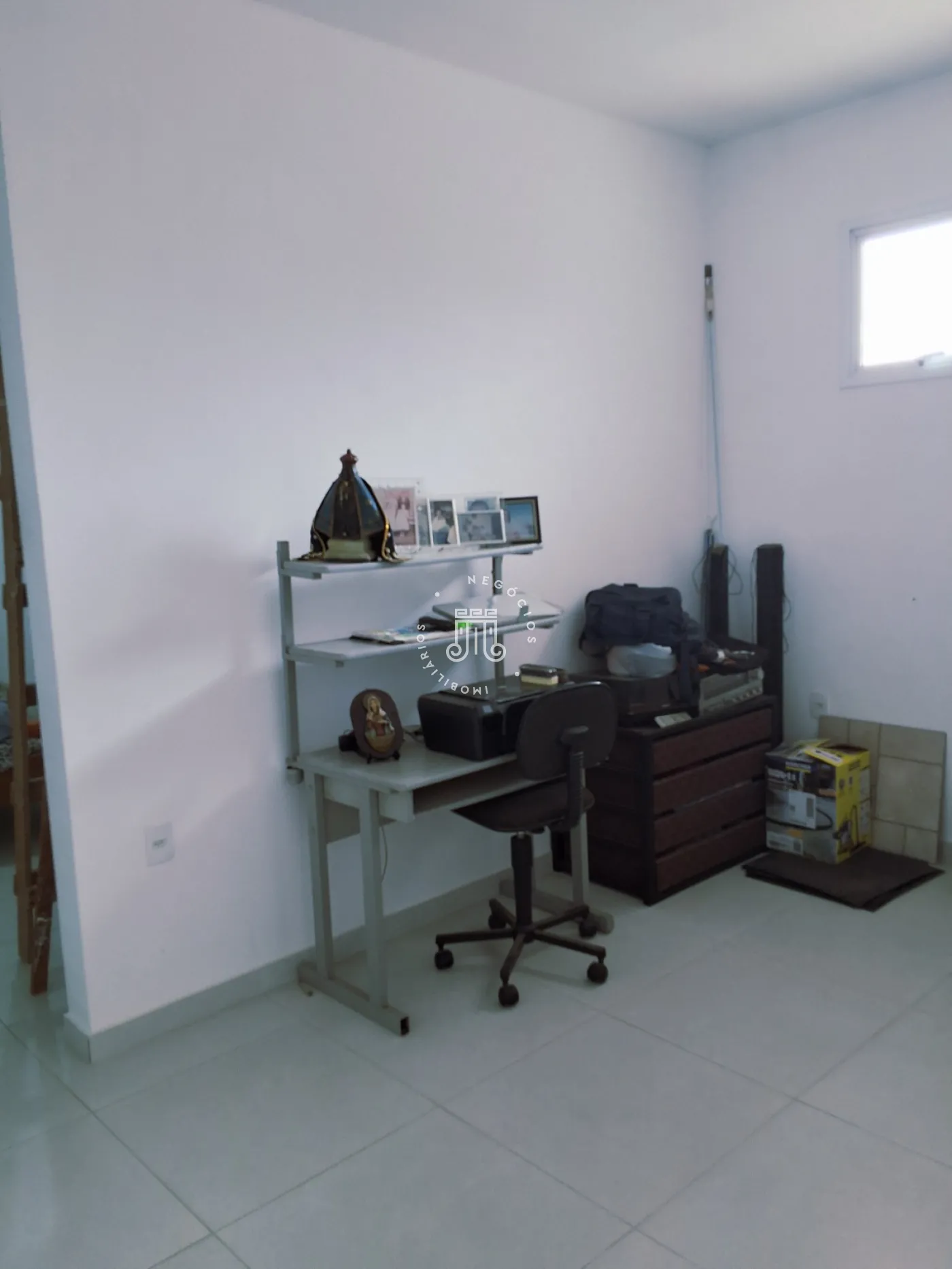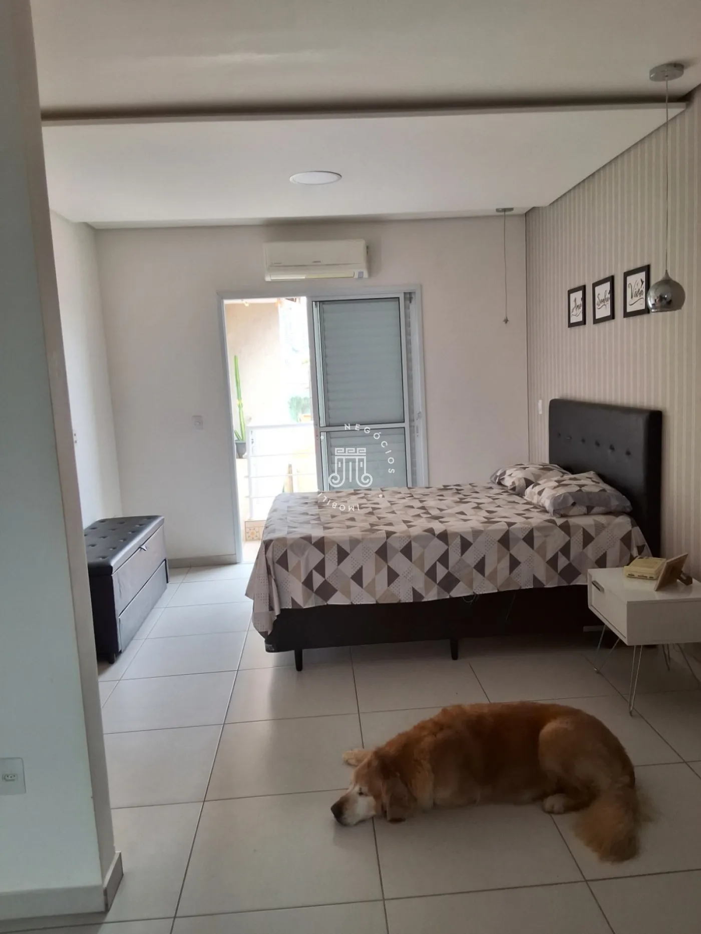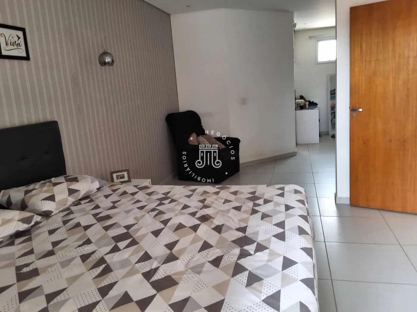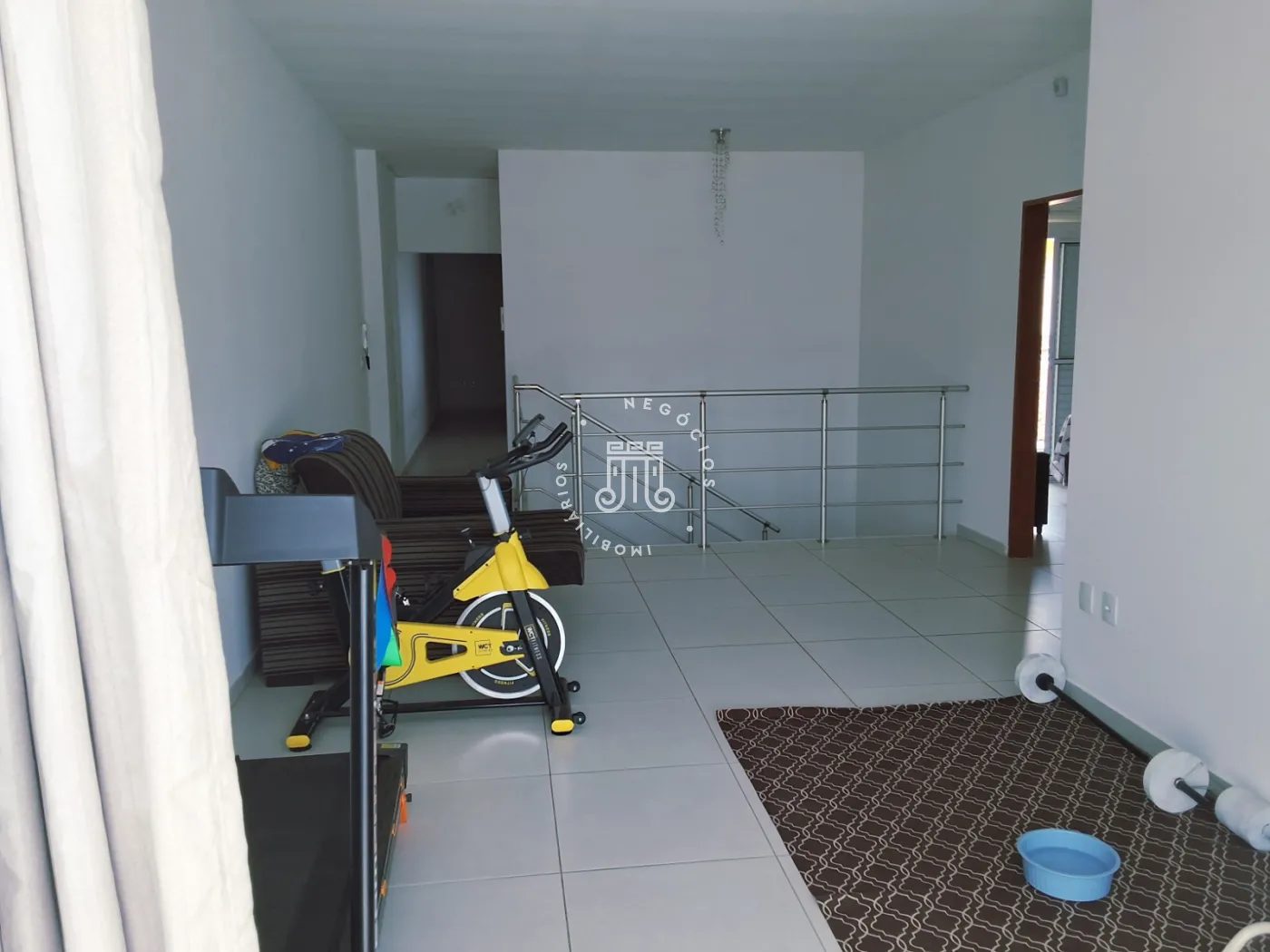 Piso superior Com 3 quartos com sacadas, sendo uma suíte com closet e ar condicionado, sala, escritório, varanda, banheiro social.