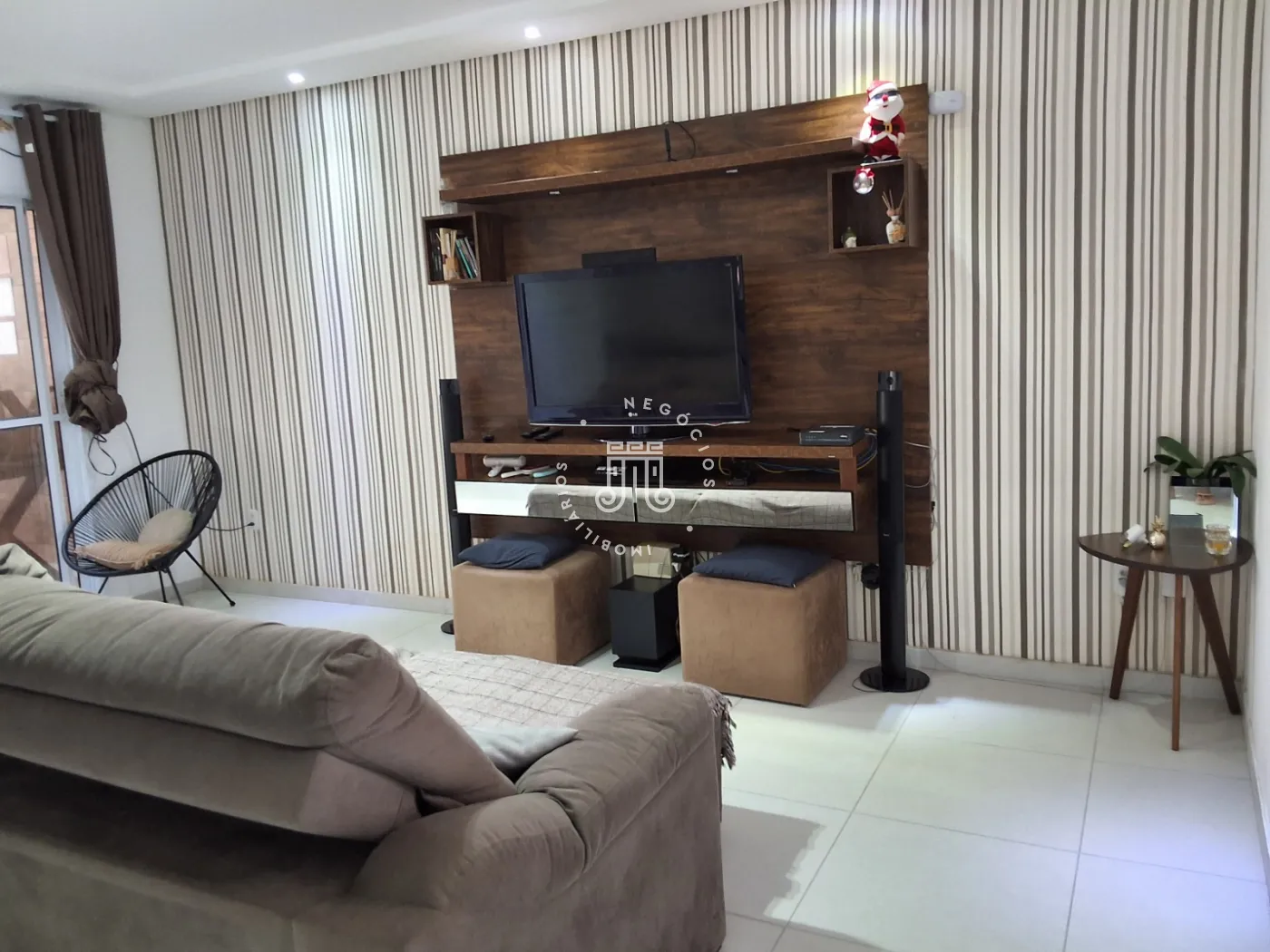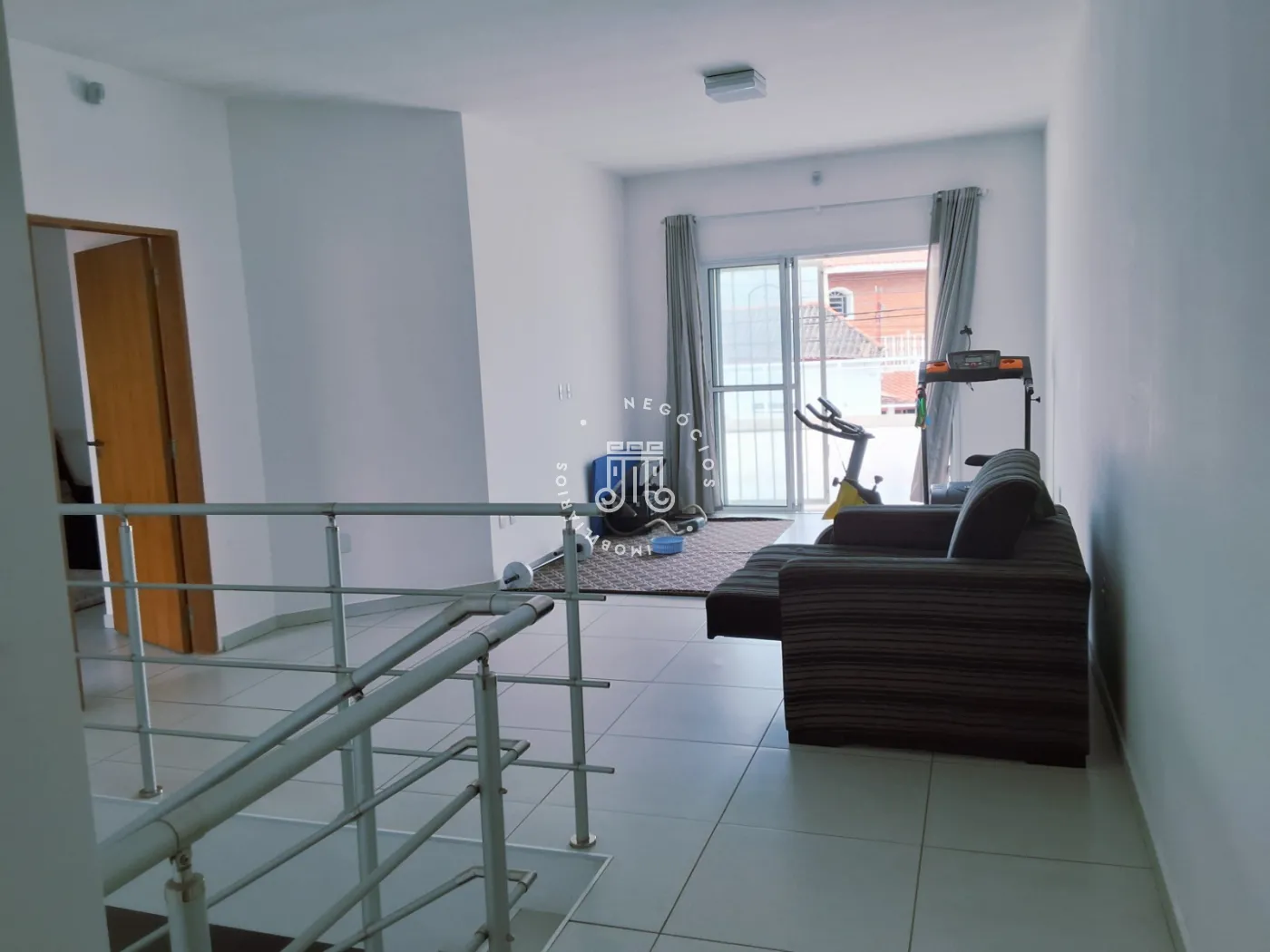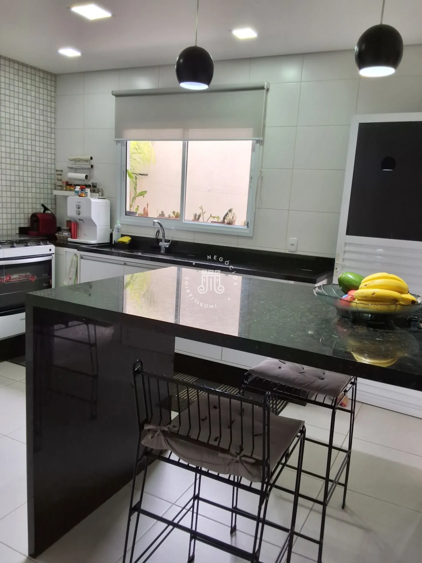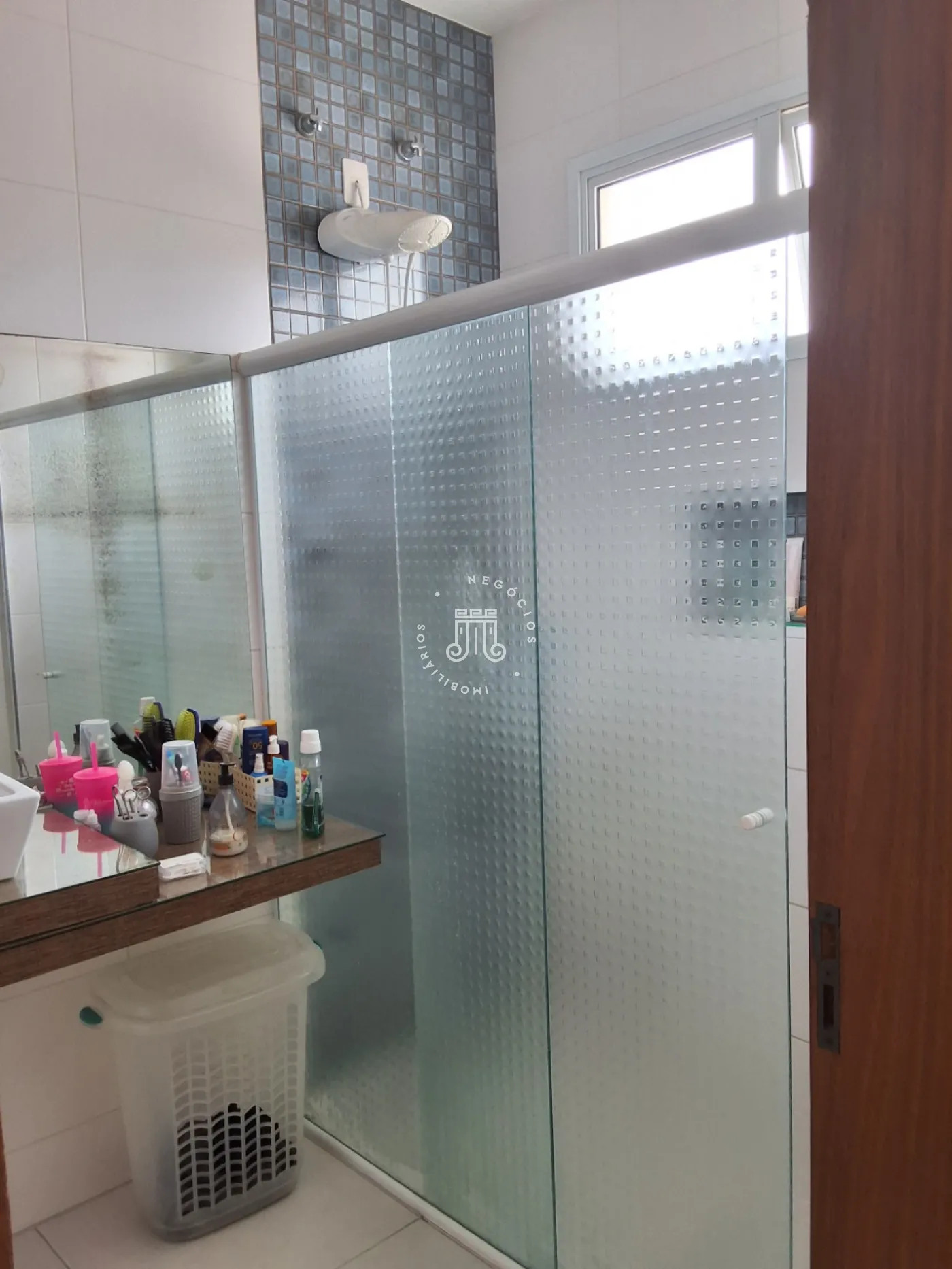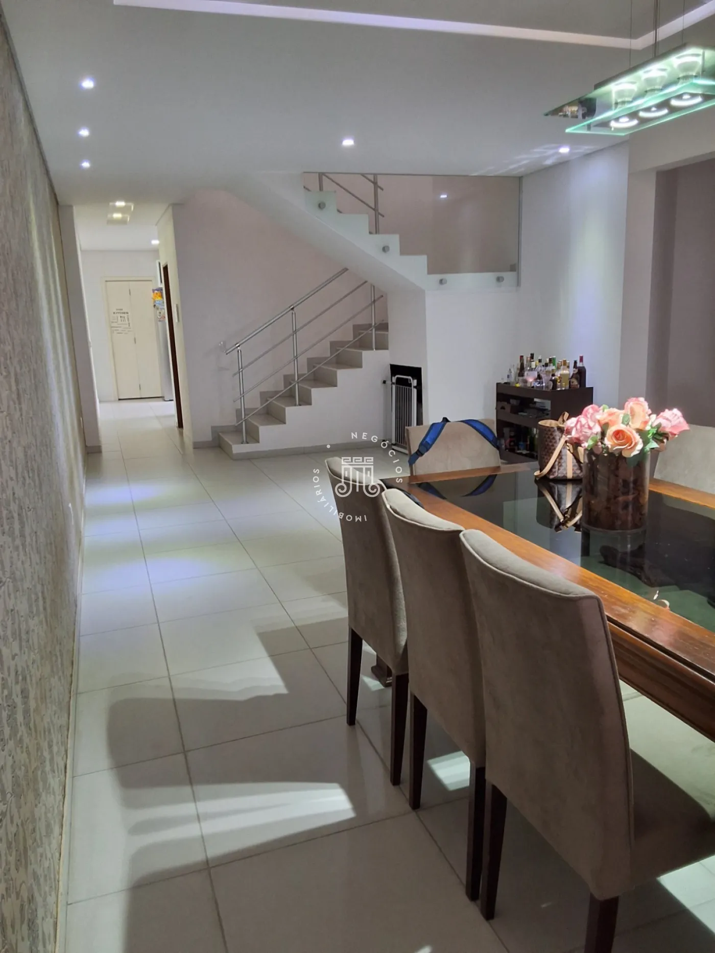 Piso superior Com 3 quartos com sacadas, sendo uma suíte com closet e ar condicionado, sala, escritório, varanda, banheiro social.