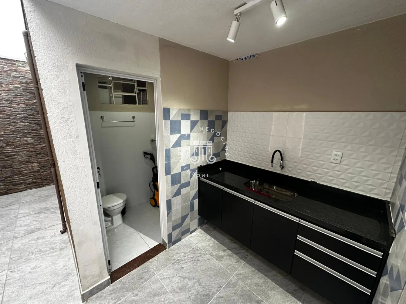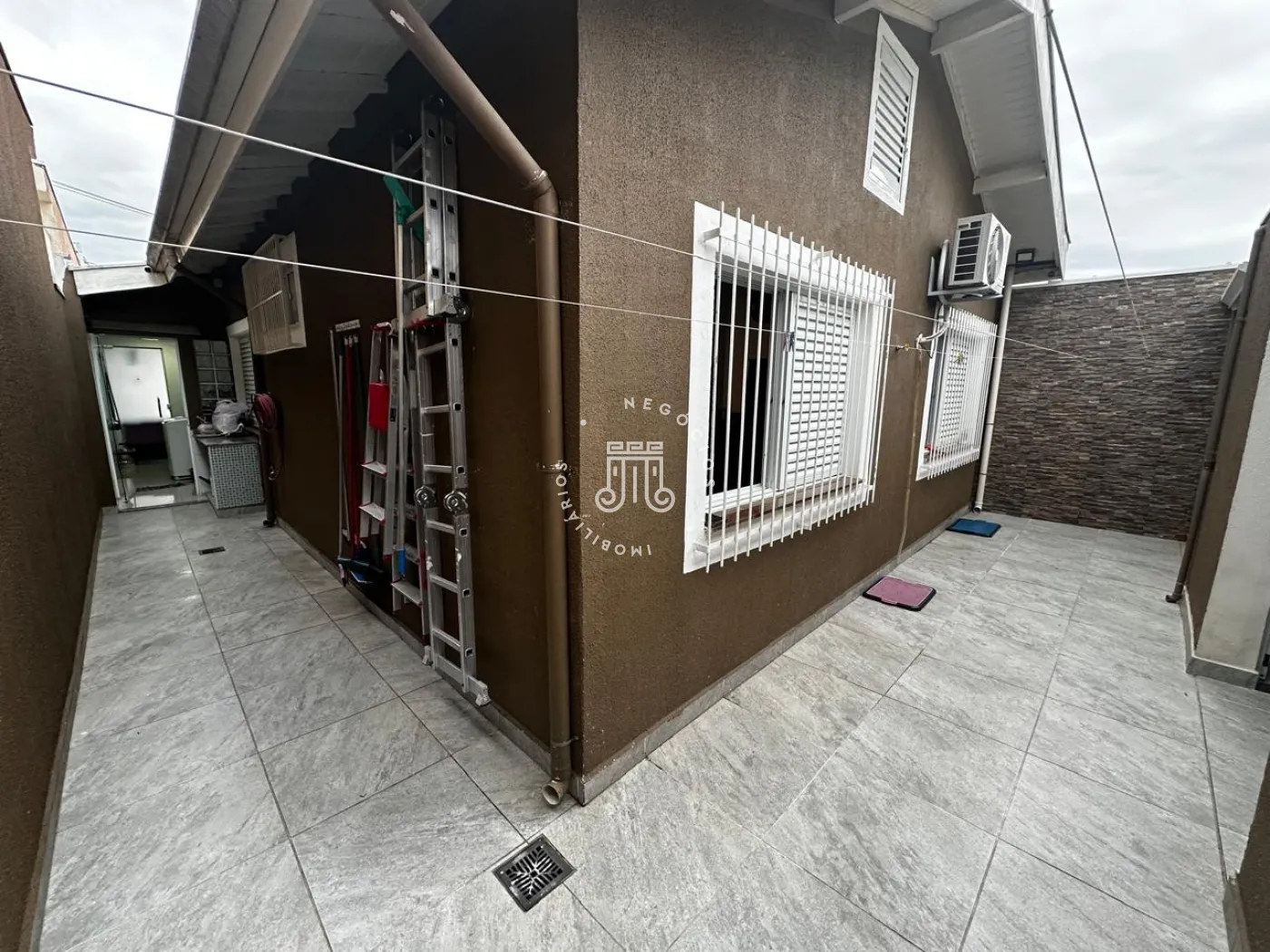 2 vagas de garagem cobertas e 1 descoberta. Um quintal com um quarto e banheiro.
