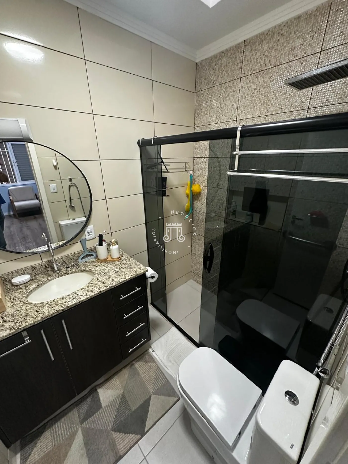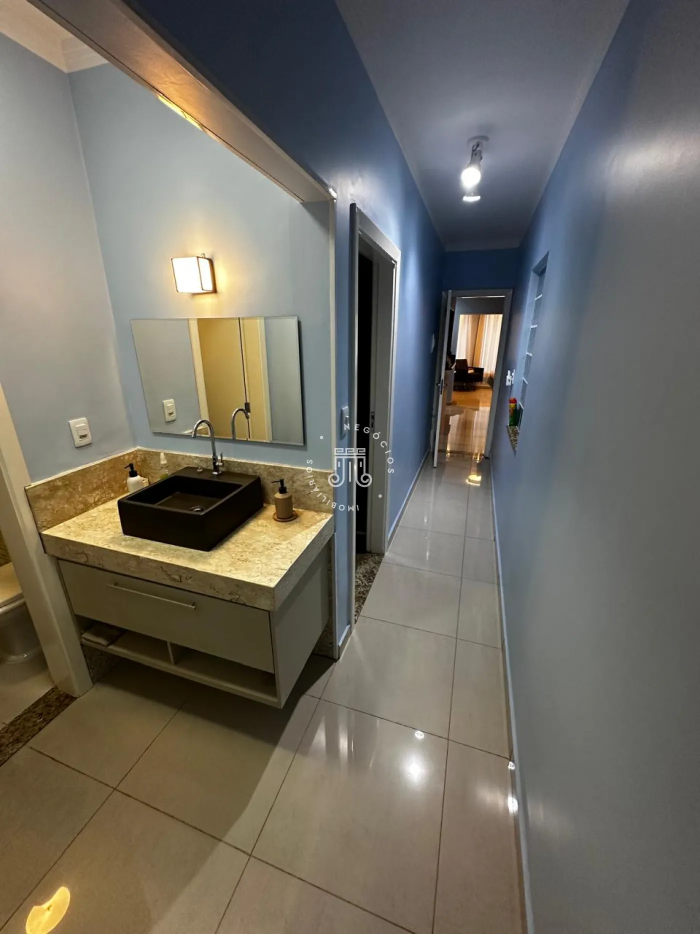 Composto por 3 dormitórios com piso laminado sendo 1 suíte, sala para dois ambientes em piso porcelanato com sanca, cozinha planejada, área de serviços com armário embutido, banheiro social com box de vidro e gabinete.