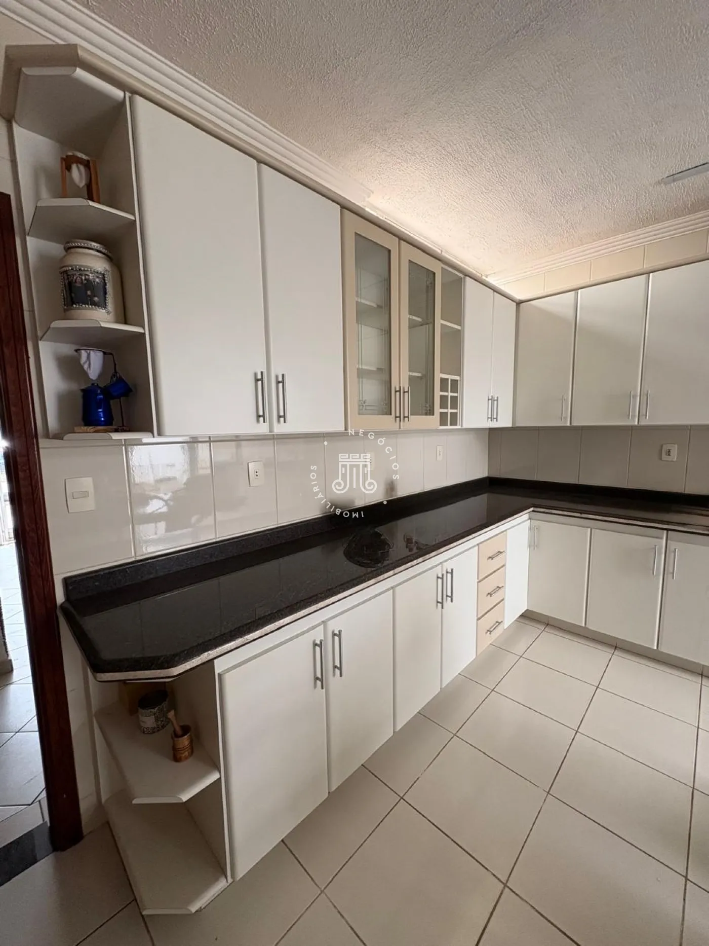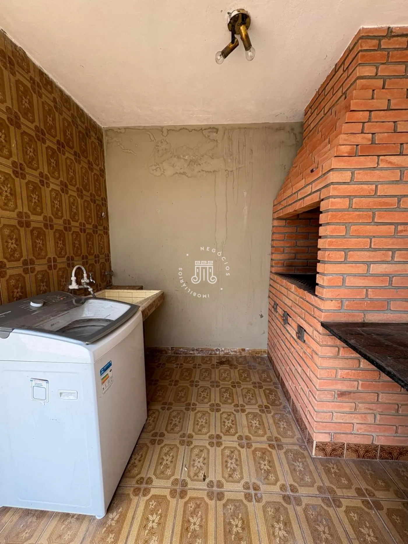 O imóvel possui 208 metros quadrados de área construída. Conta com três quartos com armários planejados, um banheiro, cozinha com armários planejados, lavanderia e churrasqueira. A garagem tem capacidade para quatro automóveis. Nos fundos, há uma edícula com dois cômodos e um banheiro.