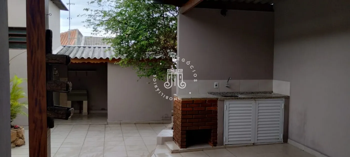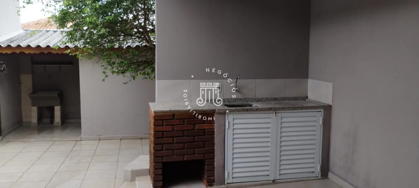 O imóvel está distribuído da seguinte forma: 02 dormitórios sendo 01 com ar condicionado, sala, cozinha com ventilador de teto, banheiro, área de serviço, área gourmet com churrasqueira, pia e banheiro. É uma casa de fundos com a entrada independente. O imóvel não possui vaga de garagem.
