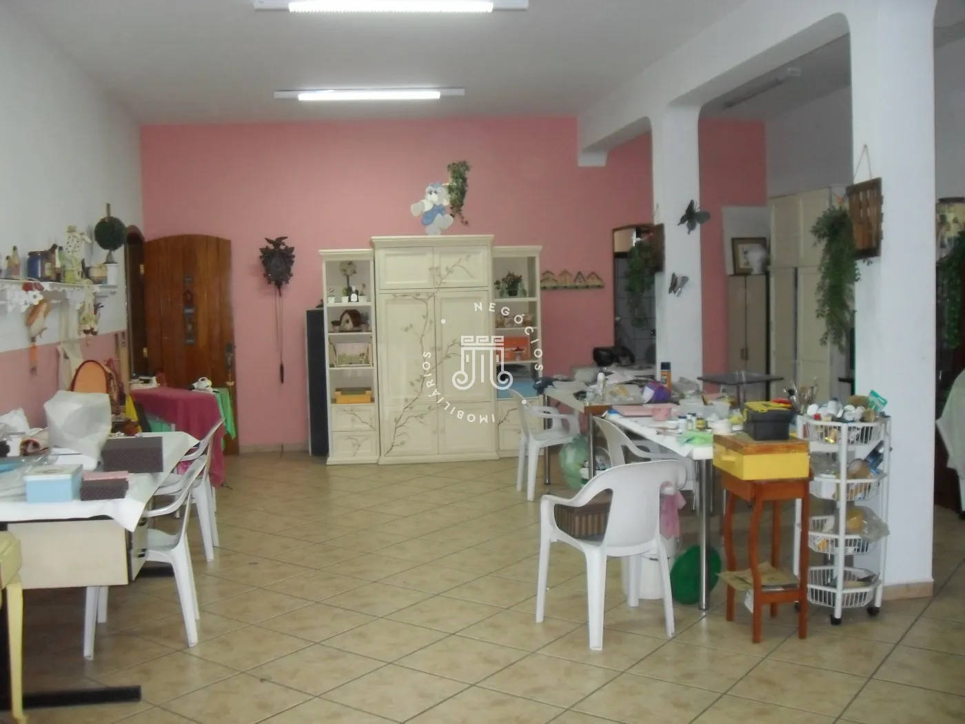 Salão de Festas ou salão para atividade comercial, quintal com churrasqueira e piscina. Garagem com portão eletrônico para 4 carros.