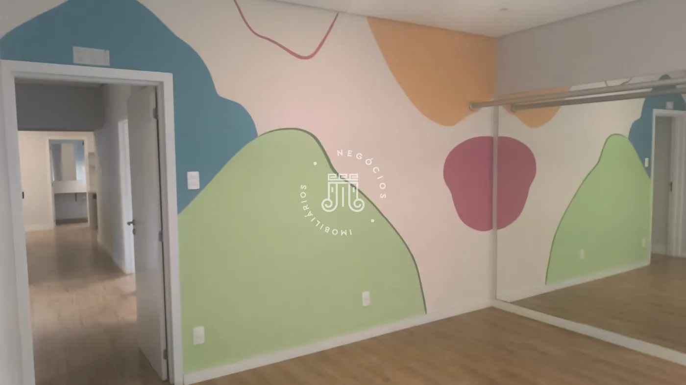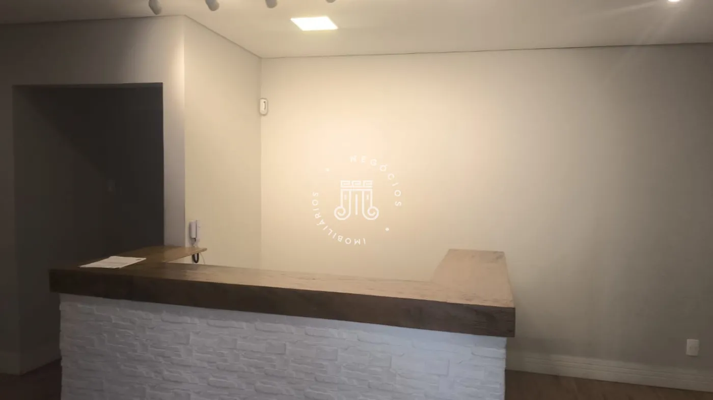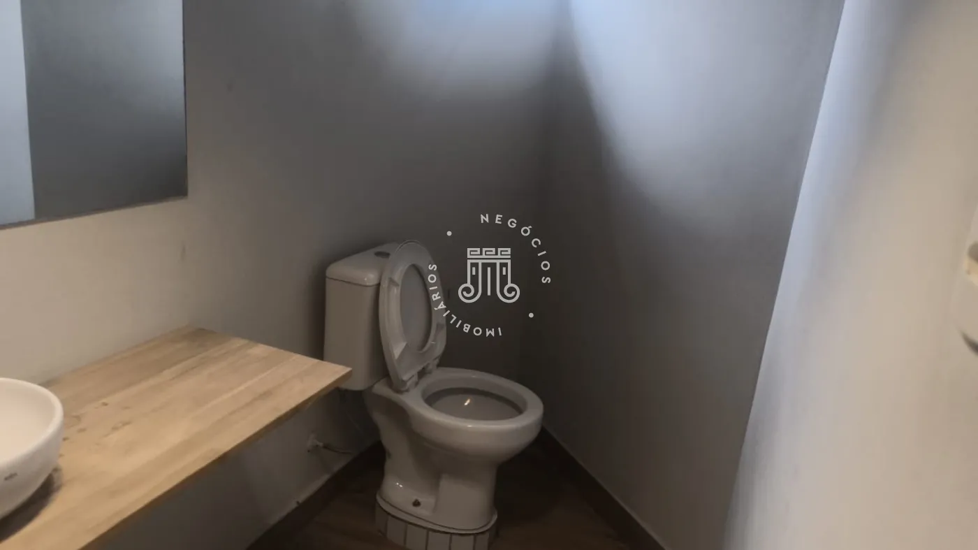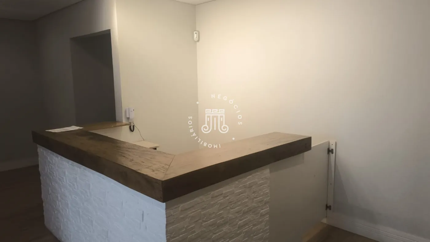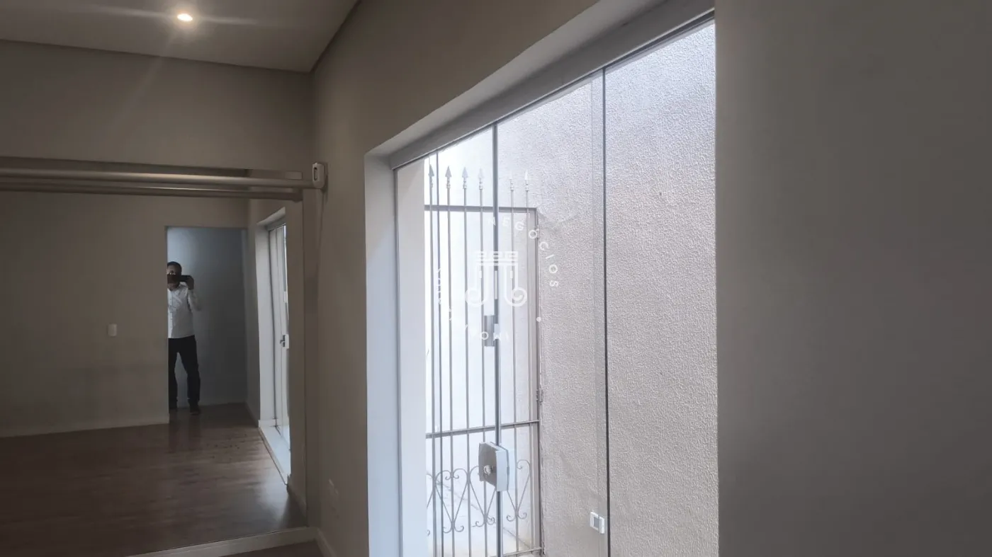 A propriedade pode ser utilizada para fins residenciais ou comerciais e possui 200 m² de terreno e 135 m² de área construída. É composta por quatro salas, sendo uma de maior dimensão, recepção com balcão de alvenaria e tampo em mármore, dois banheiros adaptados para pessoas com deficiência, cozinha, área de serviço, quarto de despejo e interfone.