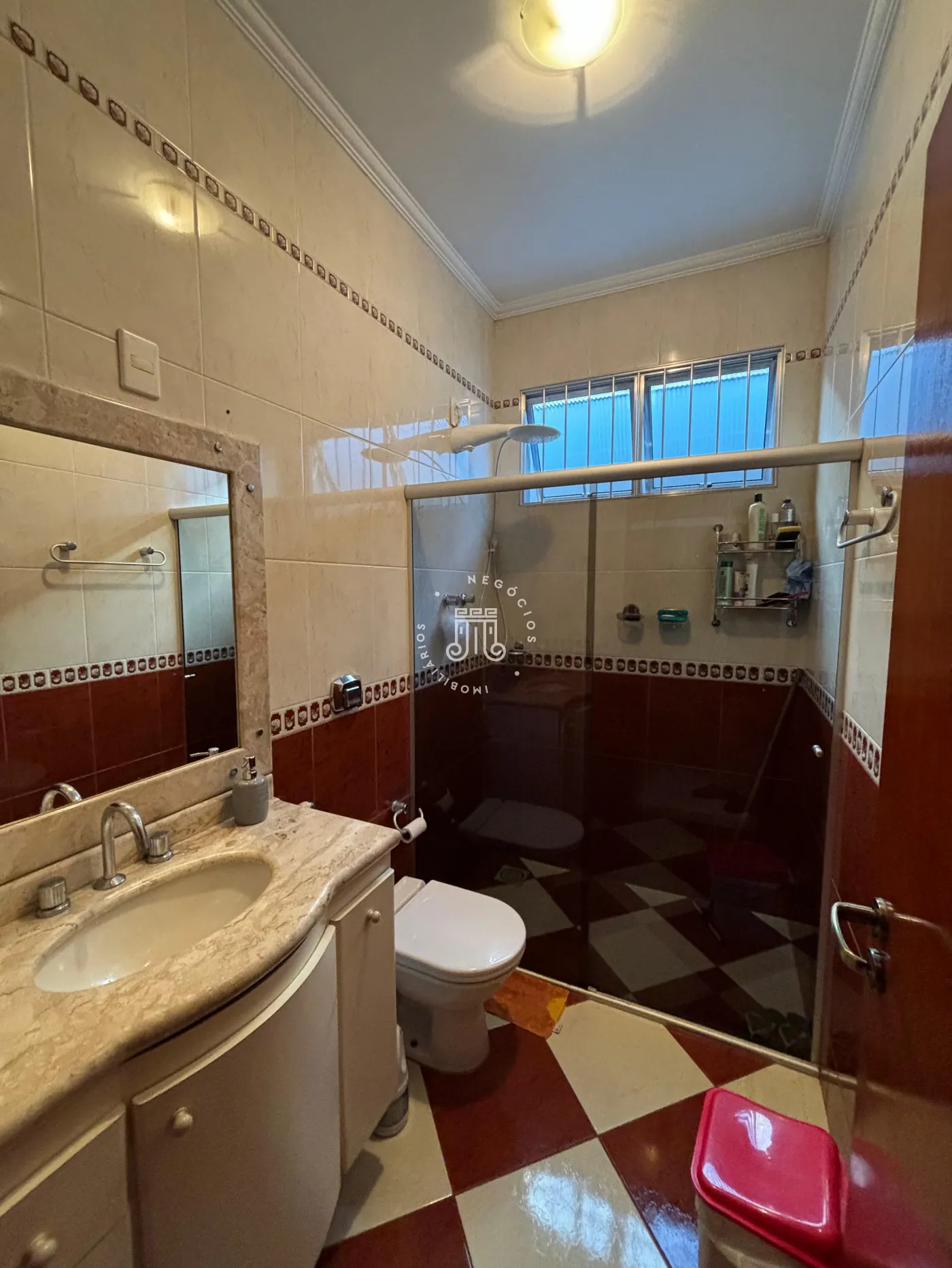 Casa com: 03 dormitórios, sendo 01 suíte com closet, 03 banheiros sociais, 01 sala de jantar, 01 cozinha, 01 sala (que pode ser utilizada como escritório), área de churrasqueira com banheiro, edícula e garagem para três carros ou mais.