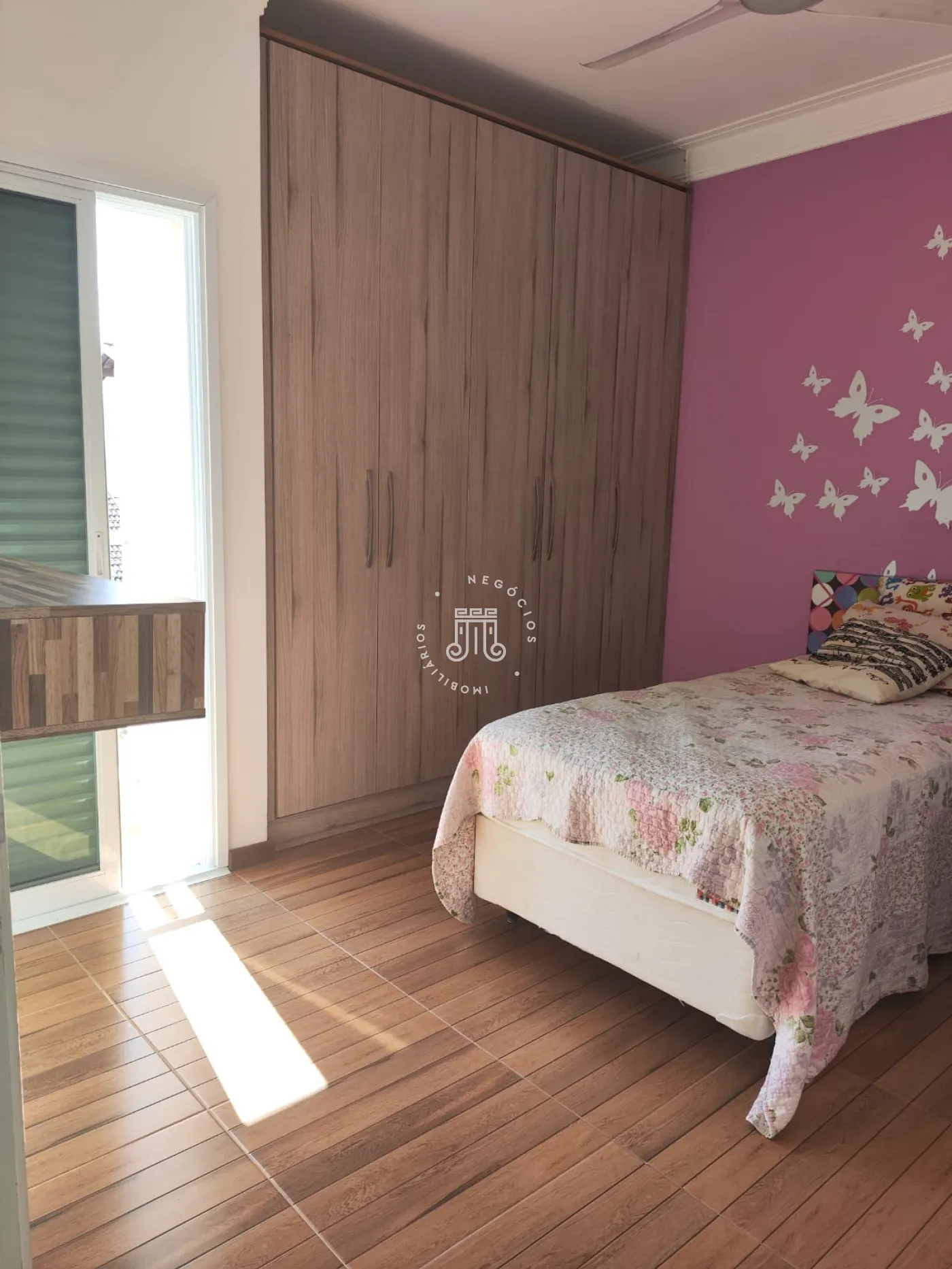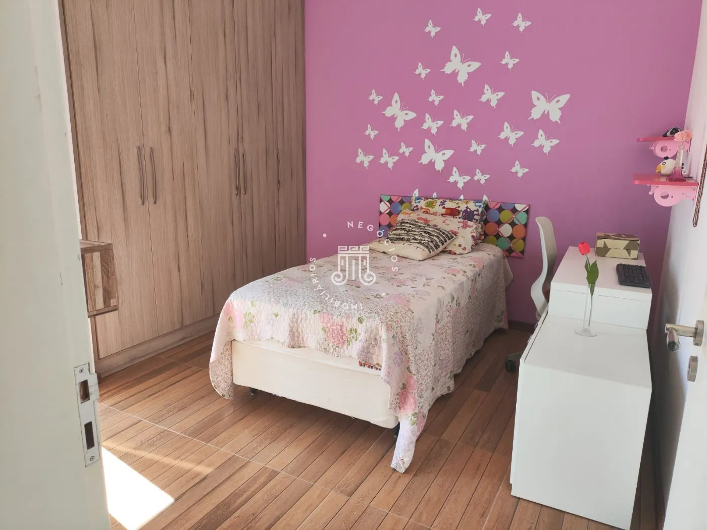 O imóvel é um sobrado de esquina com 245m² de área construída. Possui três dormitórios, sendo um deles uma suíte com closet.