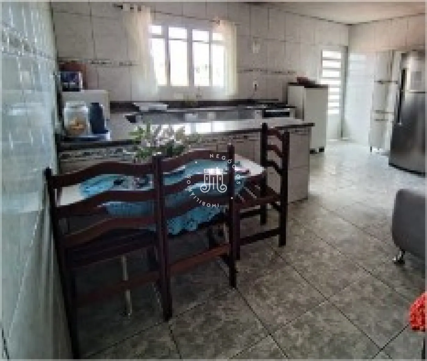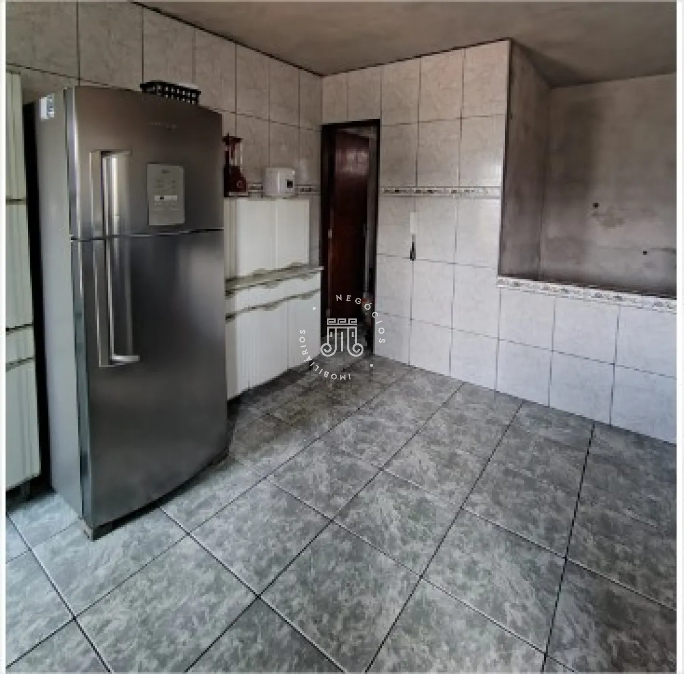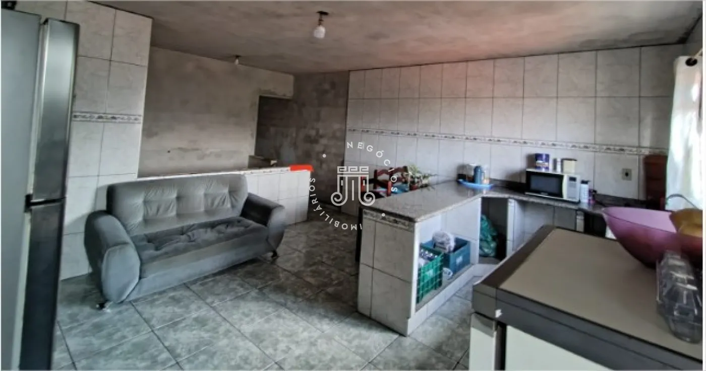 Possui garagem para dois carros, sala ampla, cozinha espaçosa, dispensa, três quartos, sendo uma suíte, e três banheiros no total.