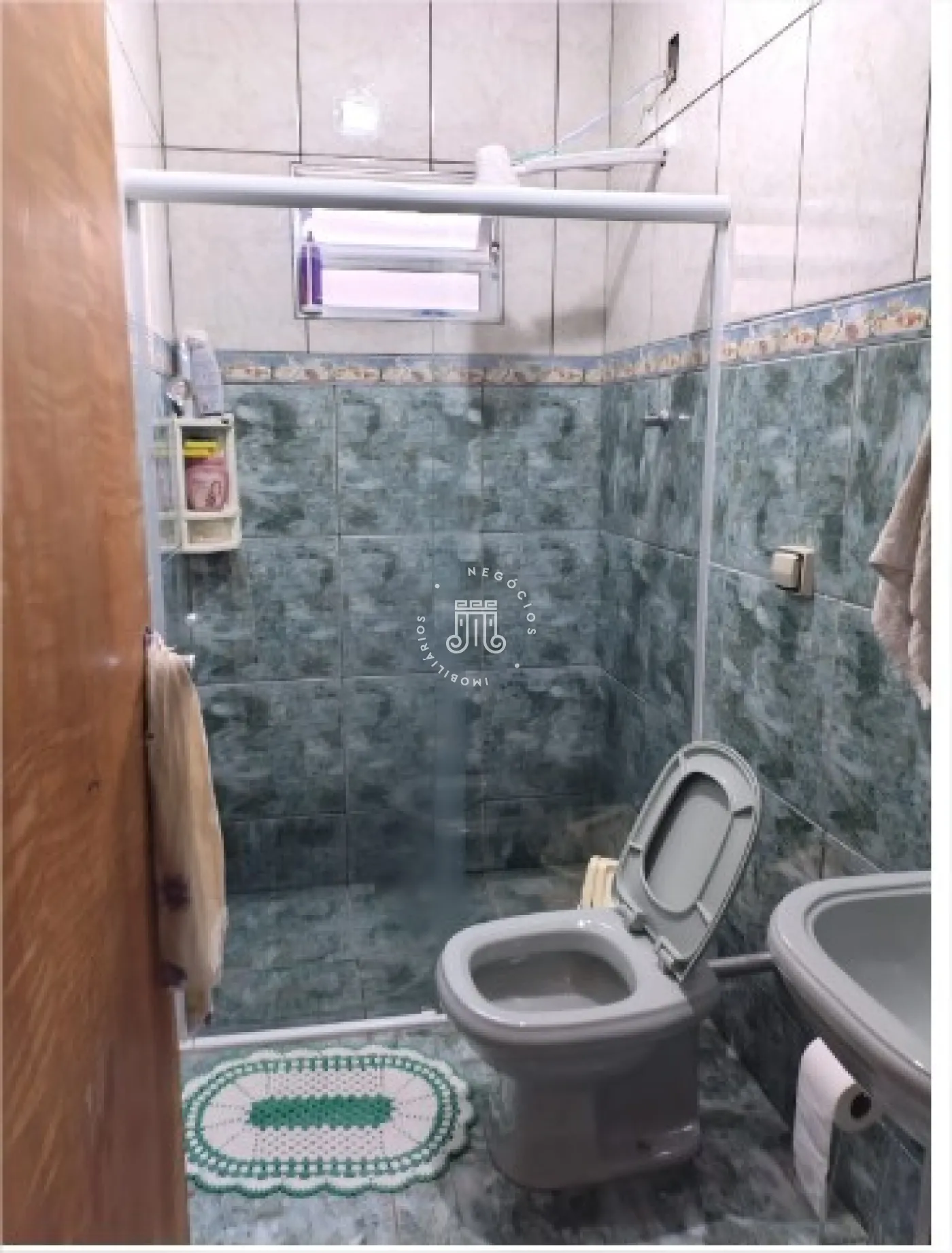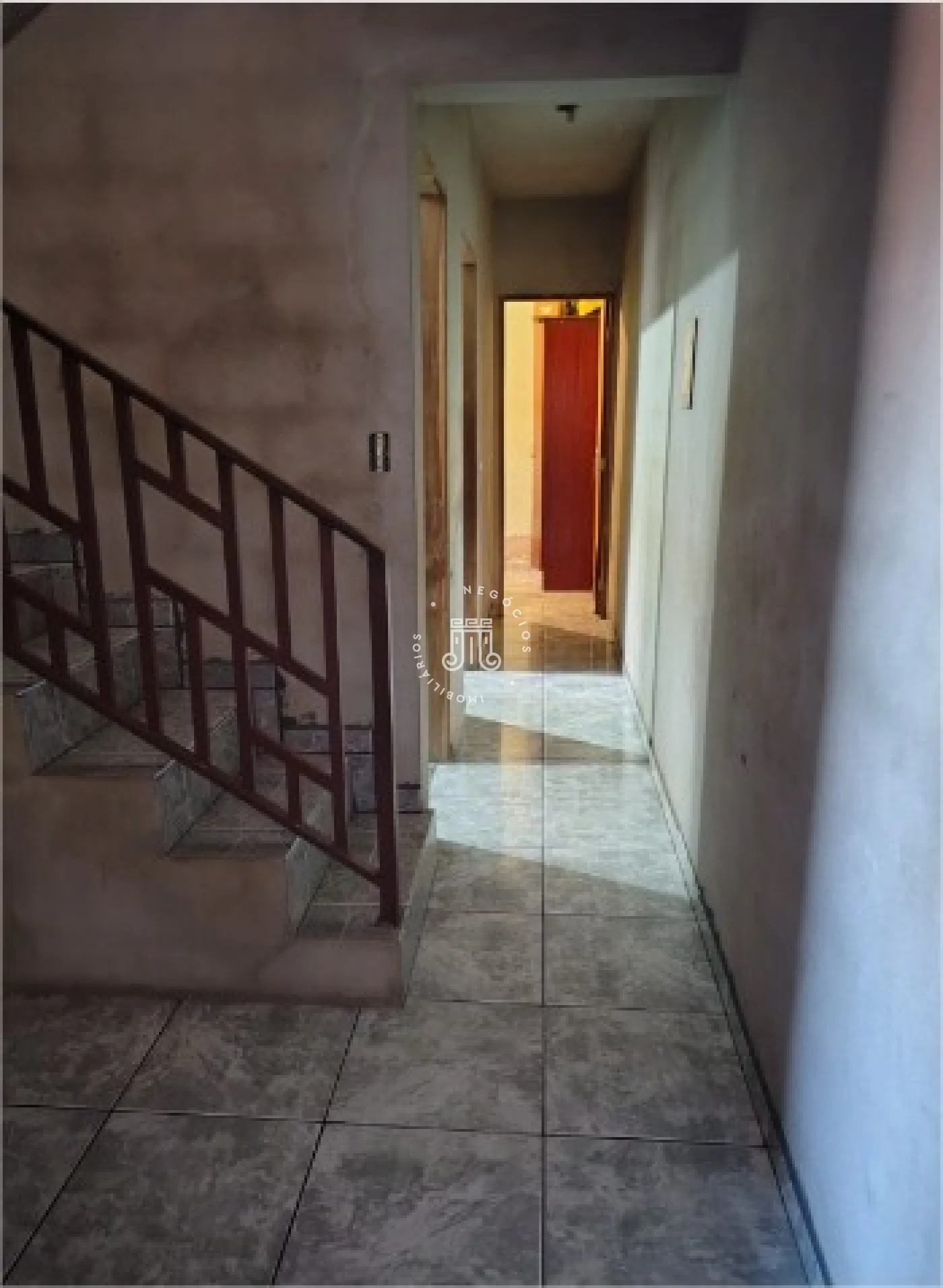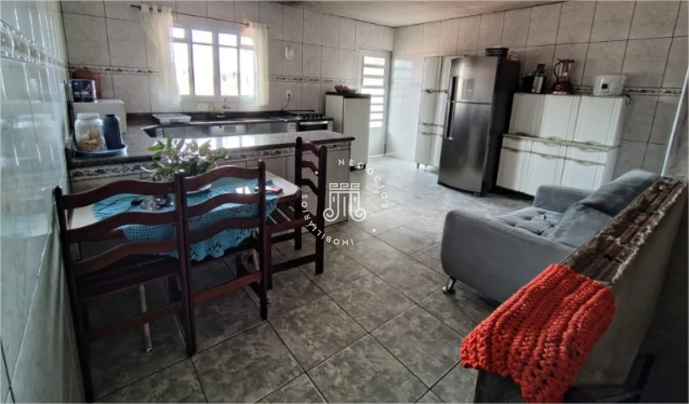 Possui garagem para dois carros, sala ampla, cozinha espaçosa, dispensa, três quartos, sendo uma suíte, e três banheiros no total.