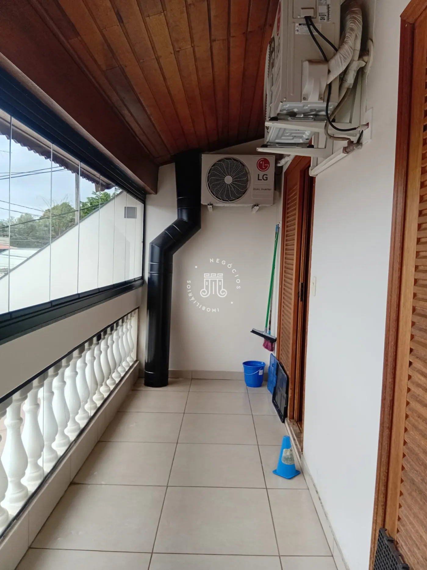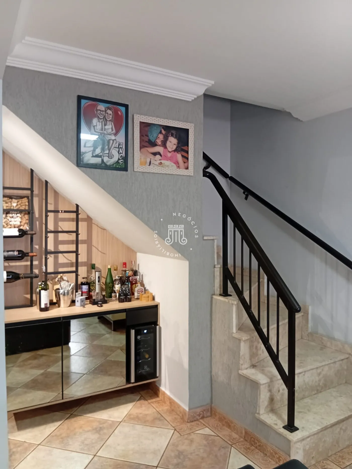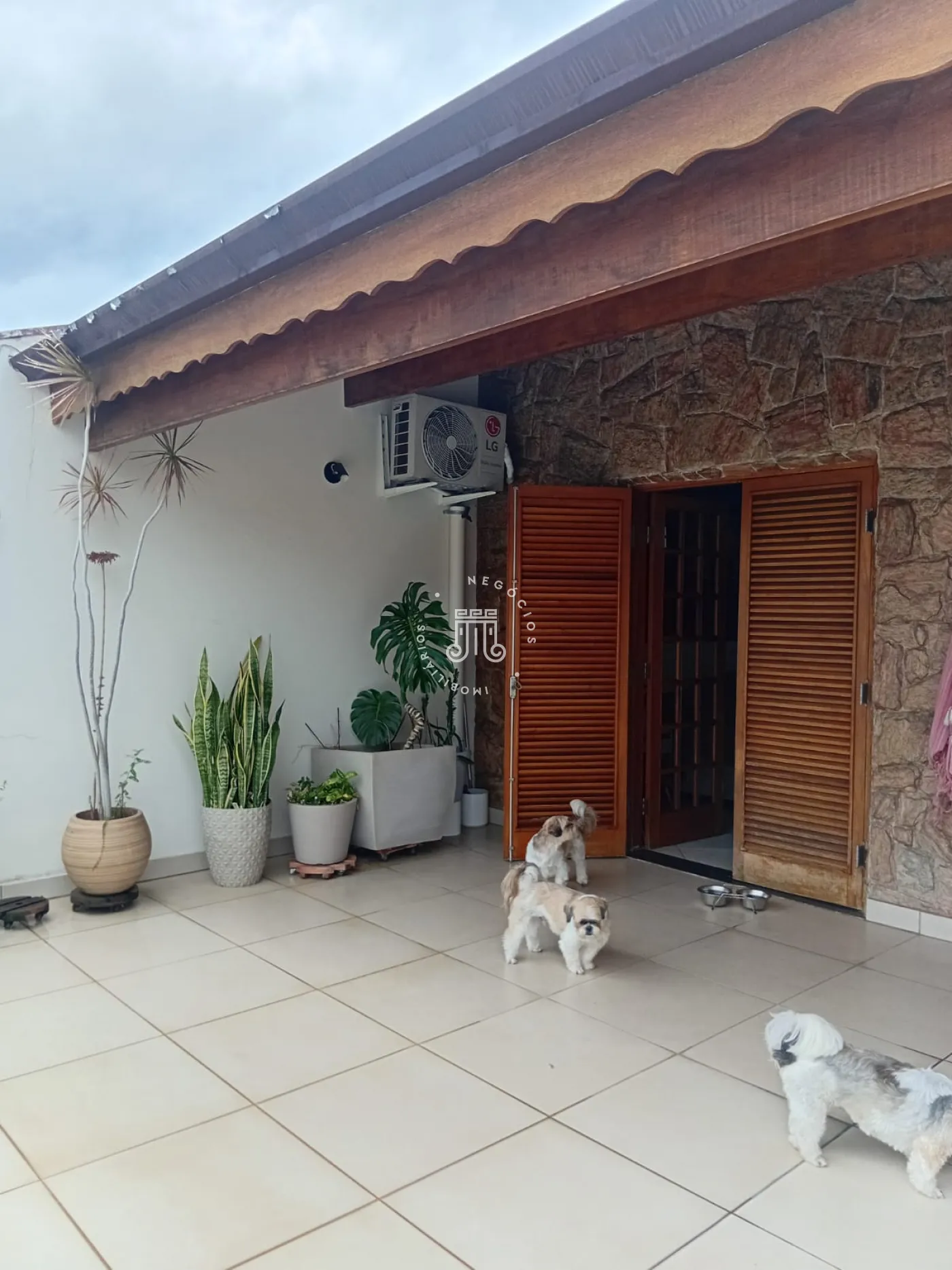 Casa composta por três dormitórios, sendo uma suíte com closet e varanda. Dois dormitórios possuem sacada, todos equipados com ar-condicionado. Conta com sala ampla integrada aos ambientes de convivência, cozinha, sala de jantar, lavanderia e jardim de inverno. A área externa dispõe de espaço com churrasqueira e duas vagas de garagem.