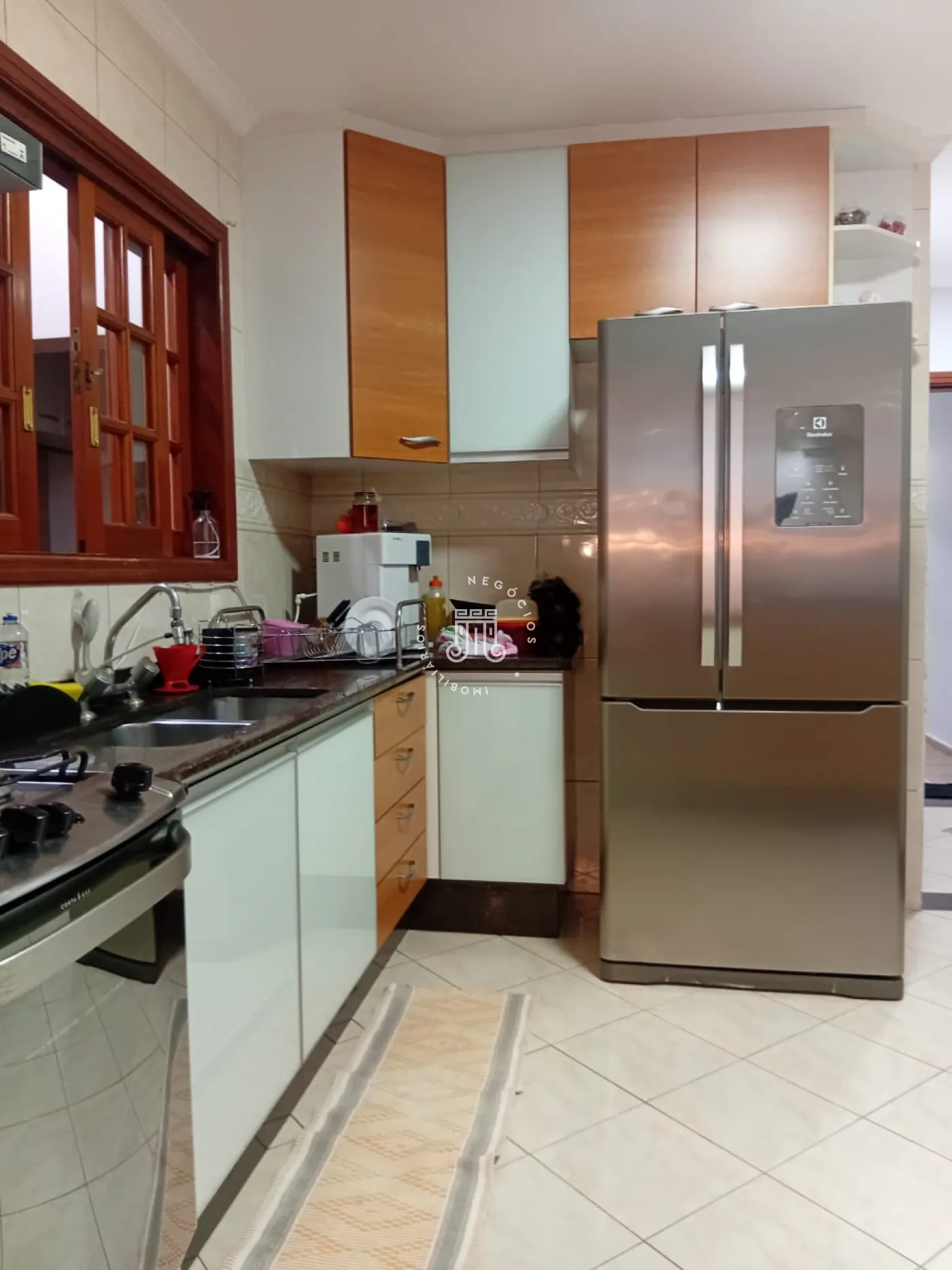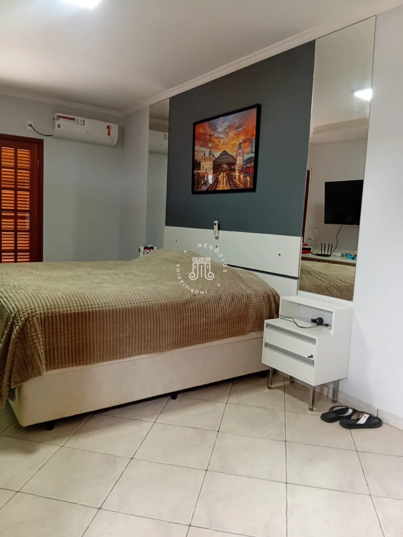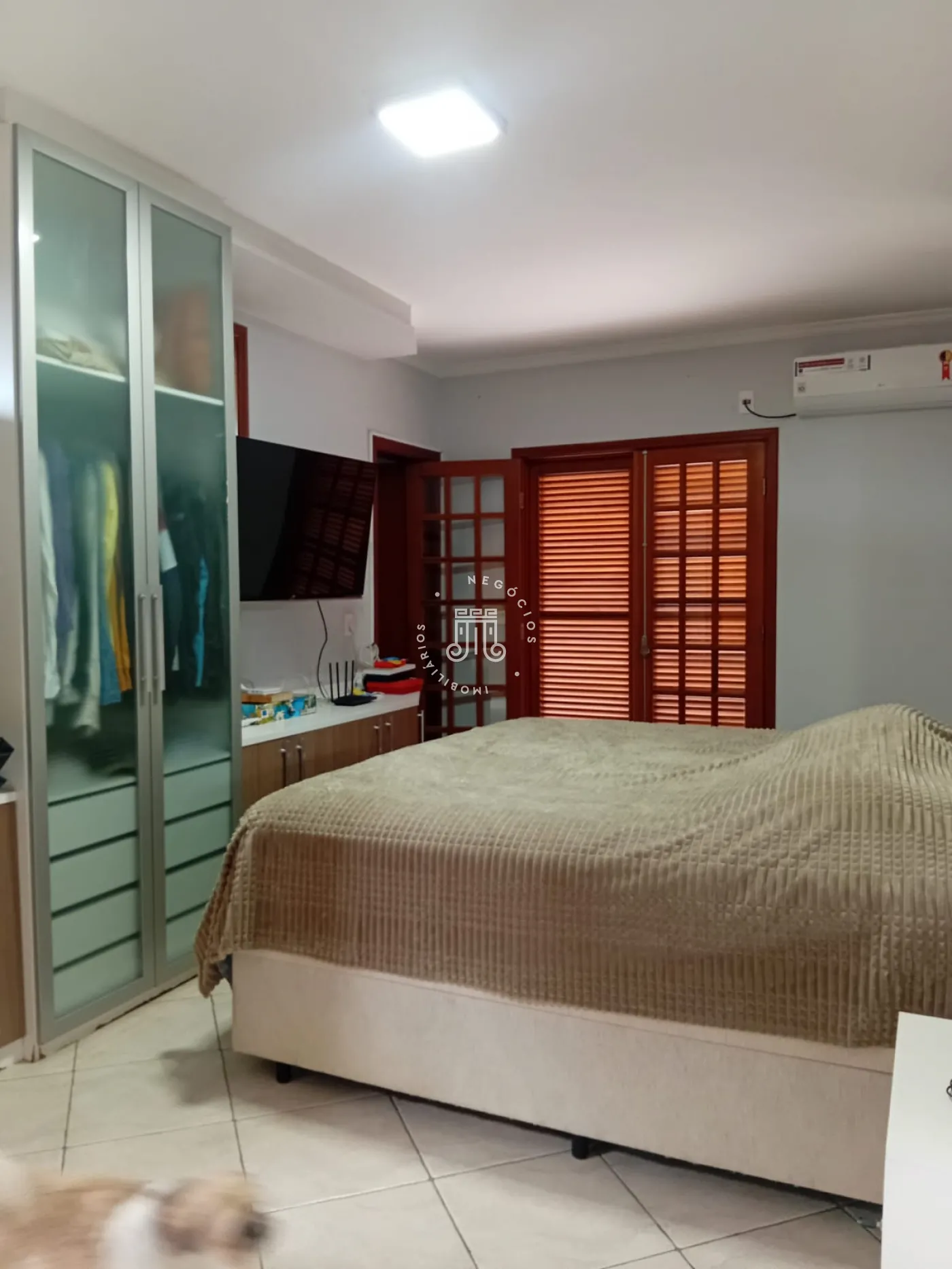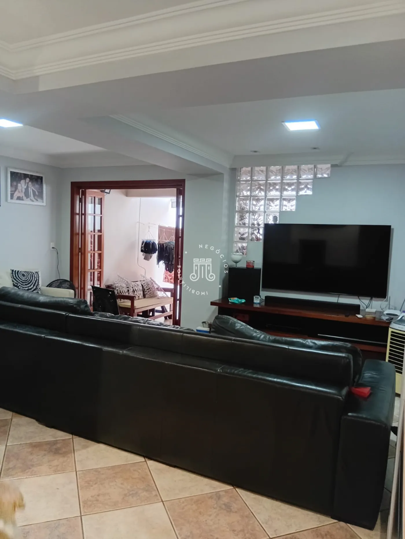Casa composta por três dormitórios, sendo uma suíte com closet e varanda. Dois dormitórios possuem sacada, todos equipados com ar-condicionado. Conta com sala ampla integrada aos ambientes de convivência, cozinha, sala de jantar, lavanderia e jardim de inverno. A área externa dispõe de espaço com churrasqueira e duas vagas de garagem.