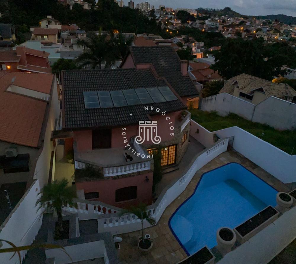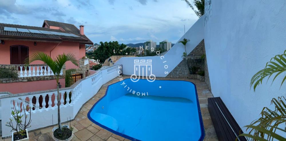 Composto por 4 dormitórios sendo 2 suítes e 1 suíte máster com closet e banheira de hidromassagem. Sala de TV, sala de jantar, sala de estar com lareira. Cozinha com dispensa, 3 banheiros sociais, dependências de empregada, churrasqueira, piscina e 7 vagas de garagem sendo 3 cobertas com portão eletrônico. Sistema de segurança.