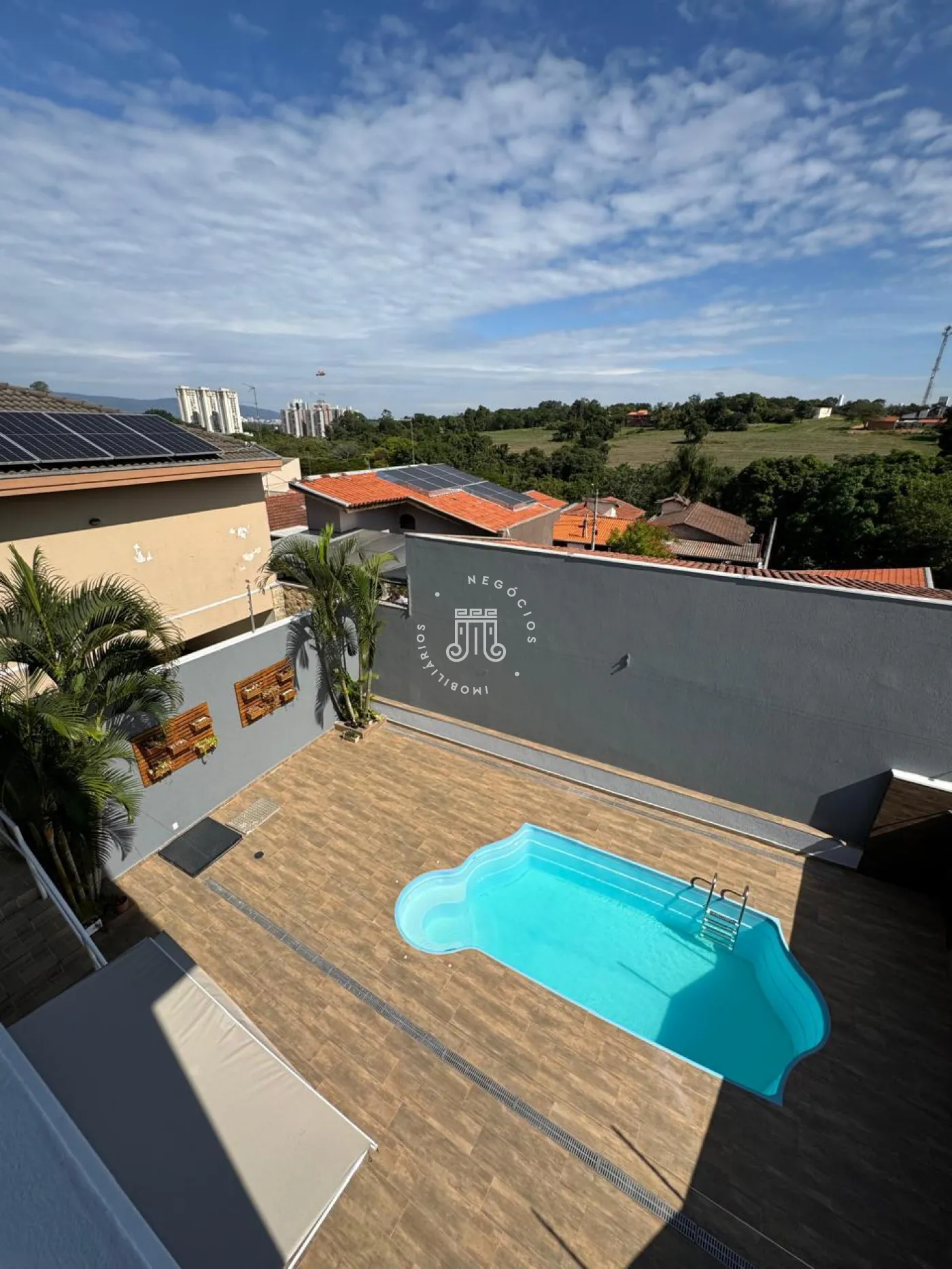 Possui 3 dormitórios, planejados, sendo 1 suíte com closet e varanda, sala de estar, sala de jantar, cozinha planejada com despensa, lavanderia, 4 banheiros, área gourmet com churrasqueira, piscina, frigobar e TV, 5 vagas de garagem com portão eletrônico. Ambientes amplos, arejados e com iluminação natural.