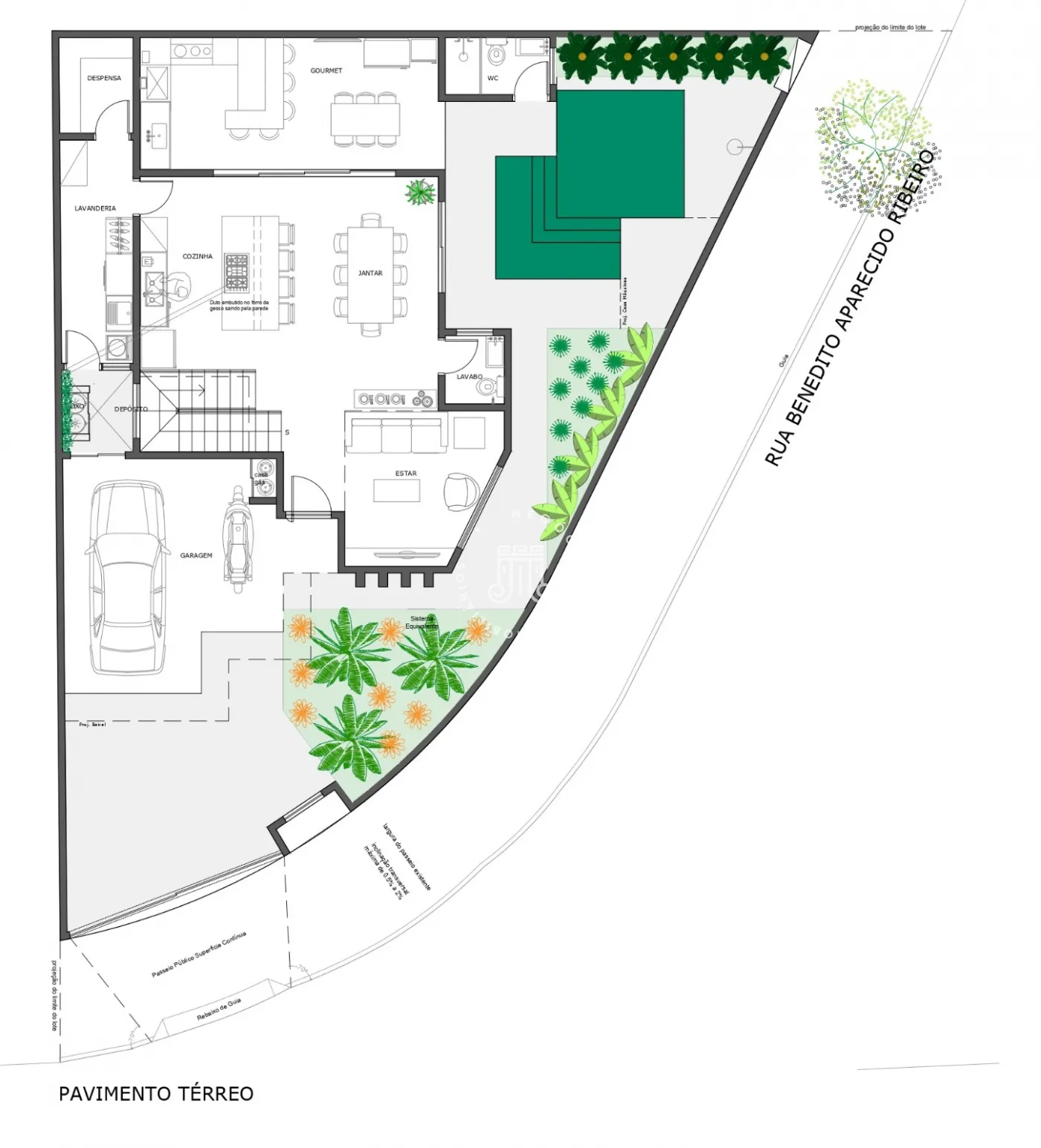 Na parte externa um amplo quintal, espaço gourmet coberto com churrasqueira e piscina.