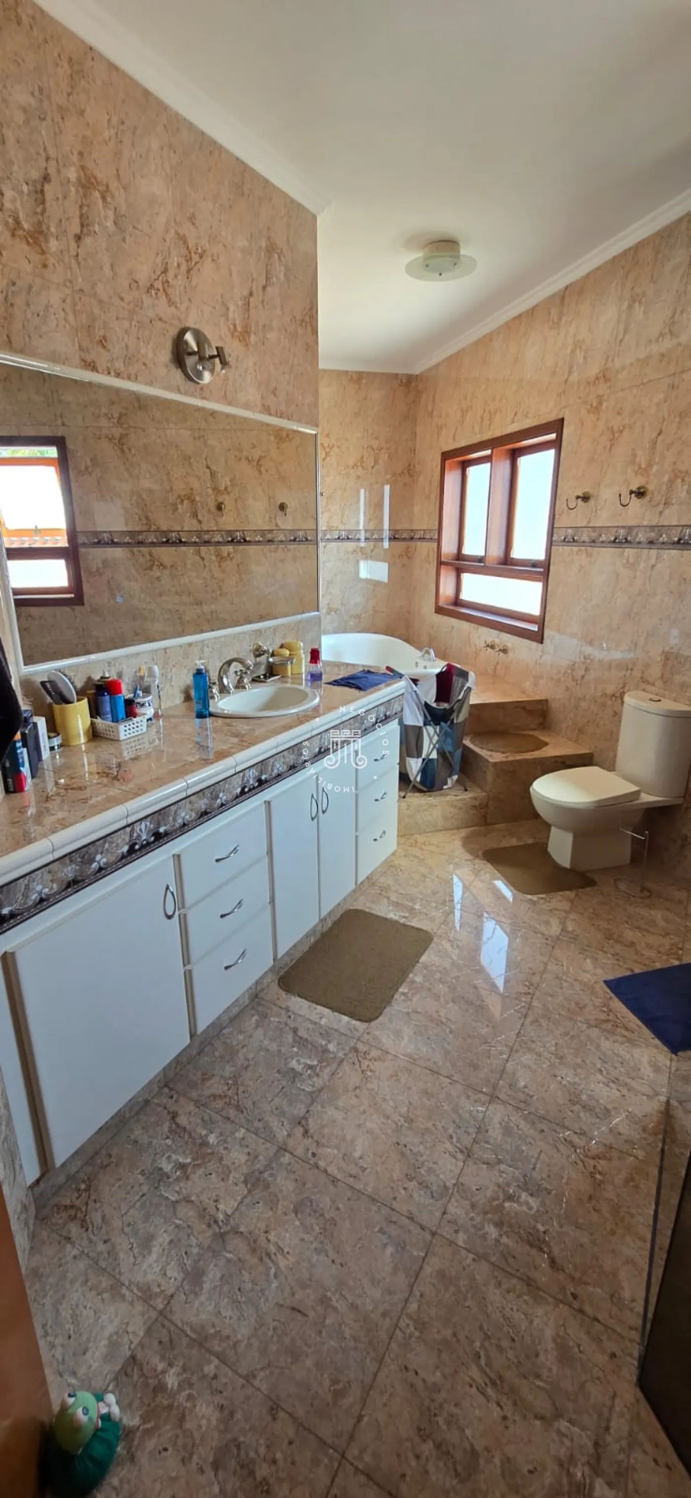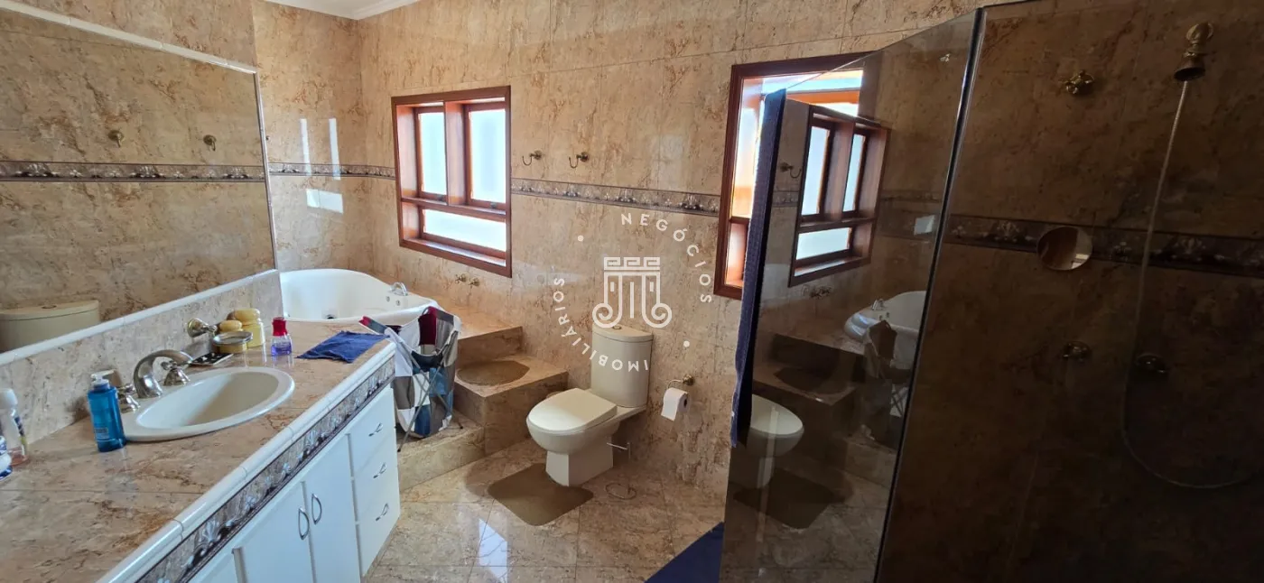 Casa com 3 quartos, sendo duas suítes, com armários embutidos e suíte master com closet e banheiro com banheira. Todos os quartos tem sacada.