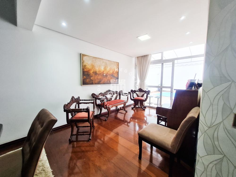 Composto por 4 suítes sendo 2 suítes no piso inferior e 2 suítes no piso superior, sala para três ambientes, cozinha planejada, área de serviços com armários, banheiro social, lavabo, quintal amplo com piscina, churrasqueira e forno, 4 vagas de garagem.
