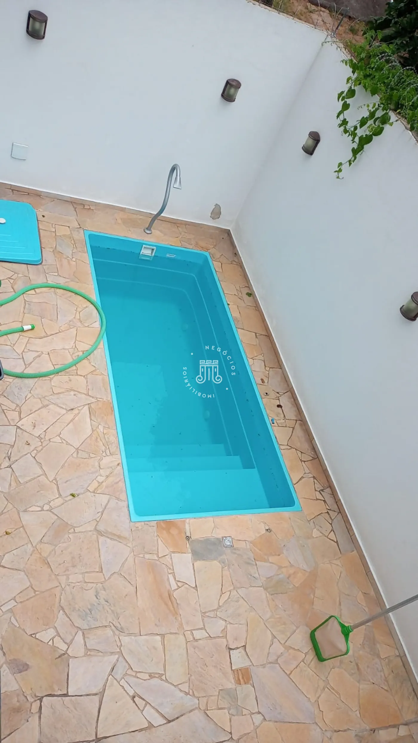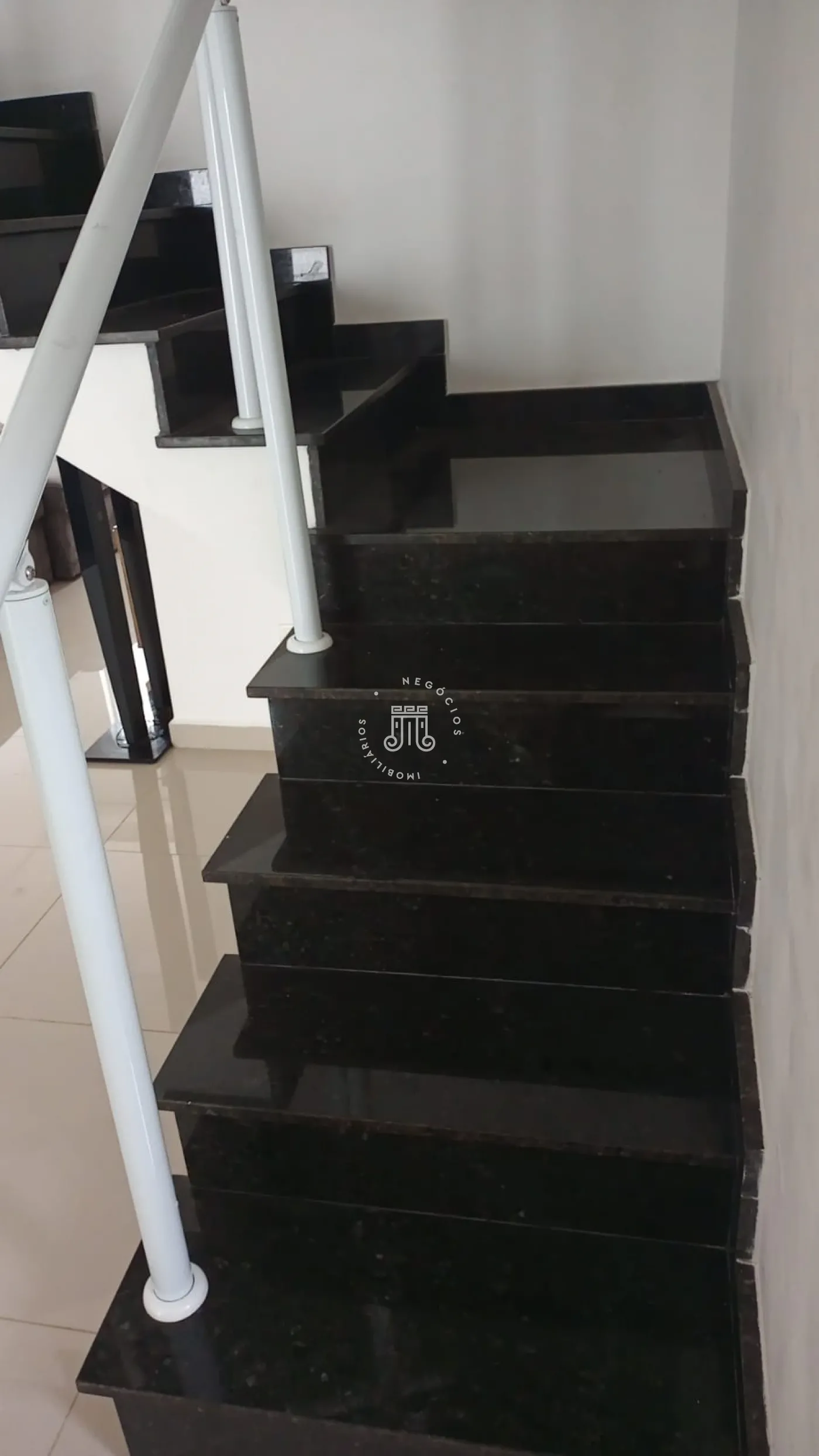 Escada toda em mármore, levando ao ambiente quintal, com piso frio e porcelanato na área interna do imóvel, portão eletrônico para maior segurança.