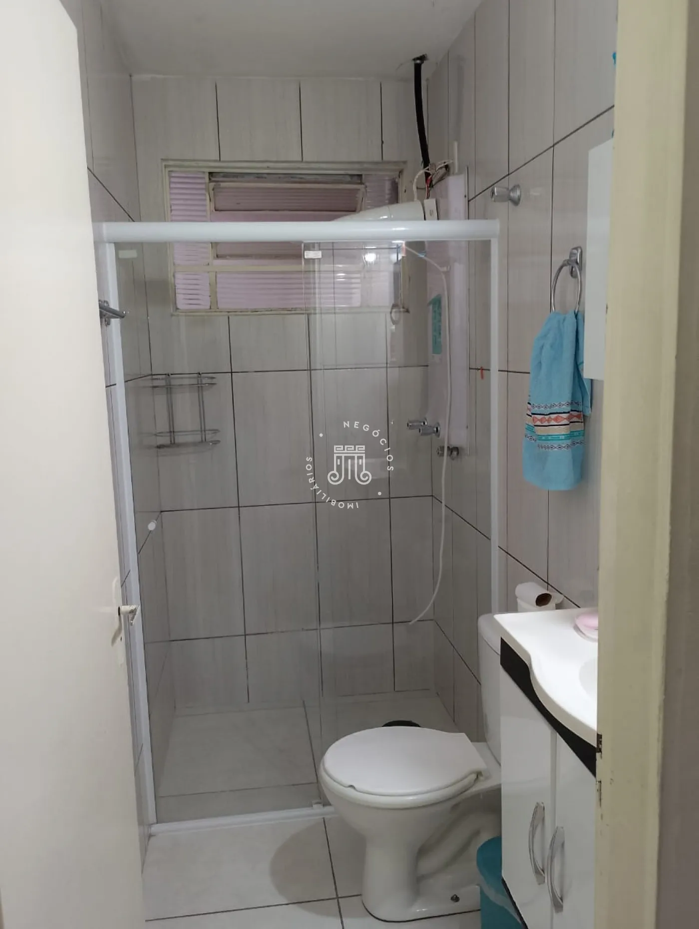 Sobrado com 2 dormitórios, sala, cozinha planejada, banheiro social com box de vidro, lavanderia e banheiro de serviço.