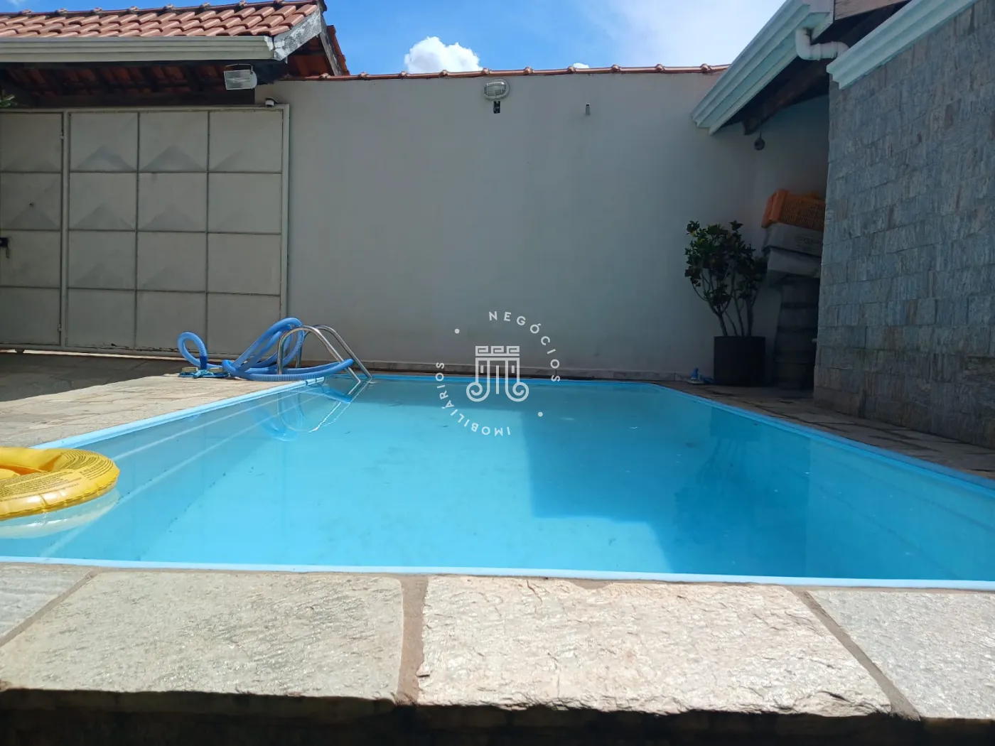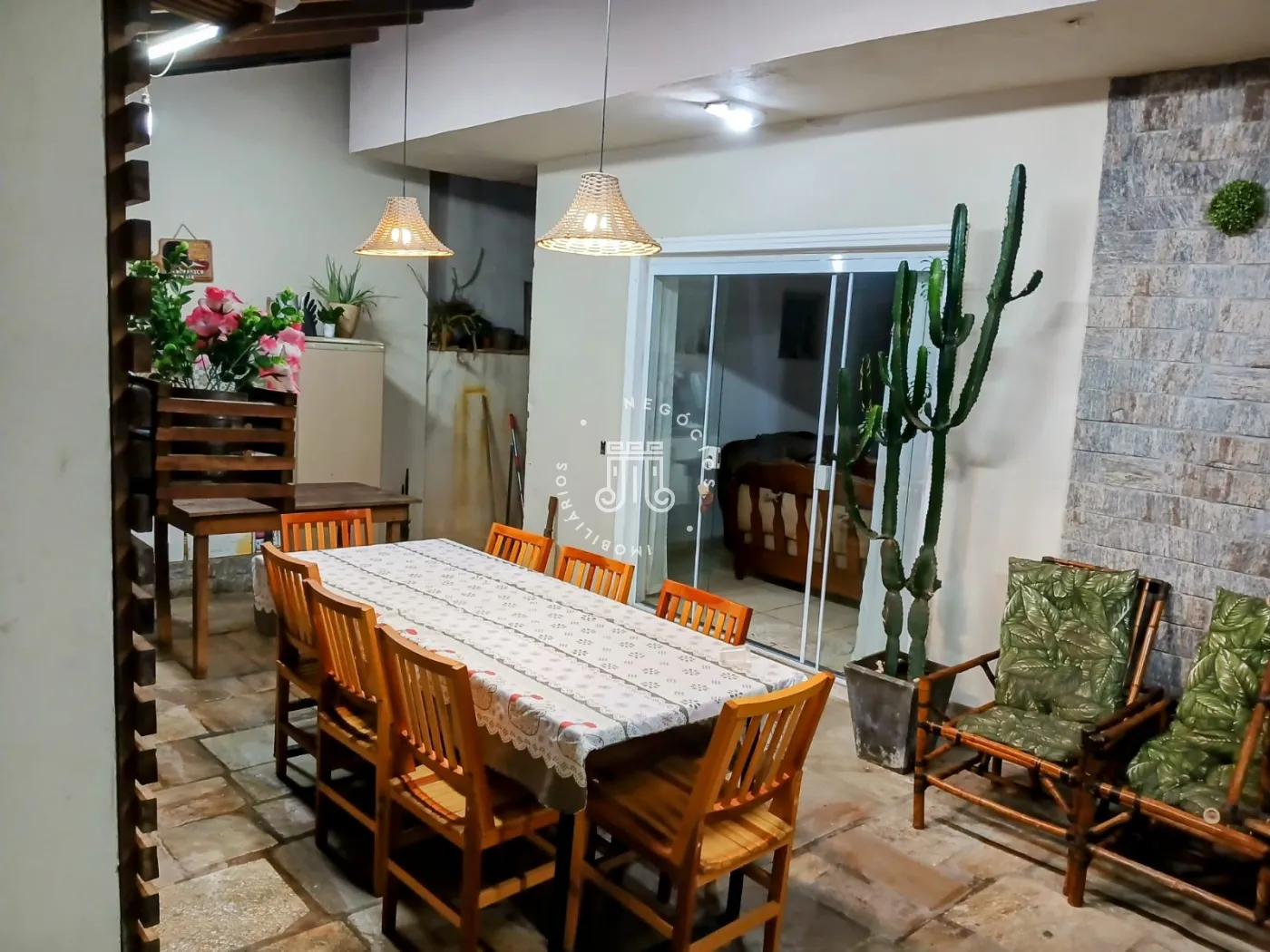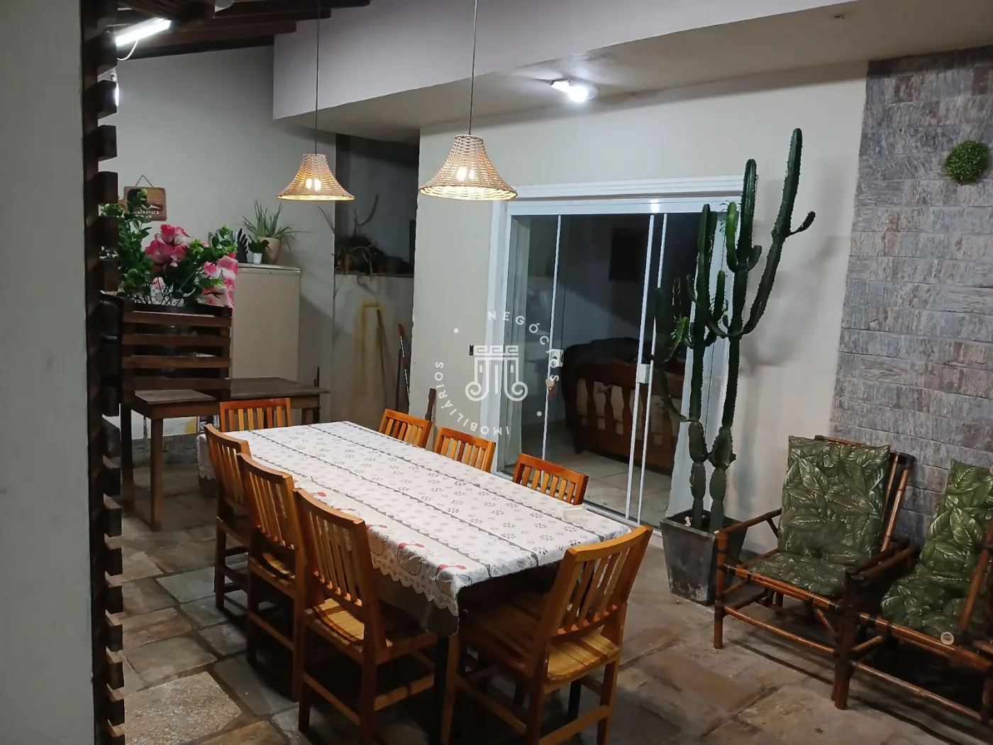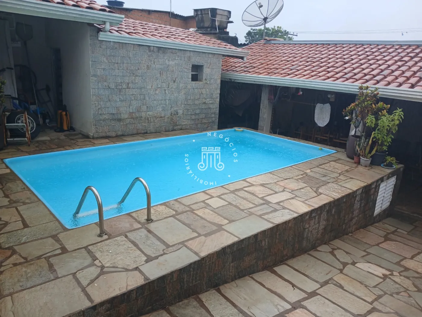 O imóvel possui, 250m2 de área total, sendo 70m2 de área construída, distribuídos em 04 dormitórios, sala de jantar, sala de TV, cozinha com armários, banheiros com armários e box blindex. Ampla área gourmet com churrasqueira, coberta com luminárias pendentes, piscina e garagem. O imóvel tem excelente acabamento com piso frio. Terreno com mini horta e algumas mudas de frutas.