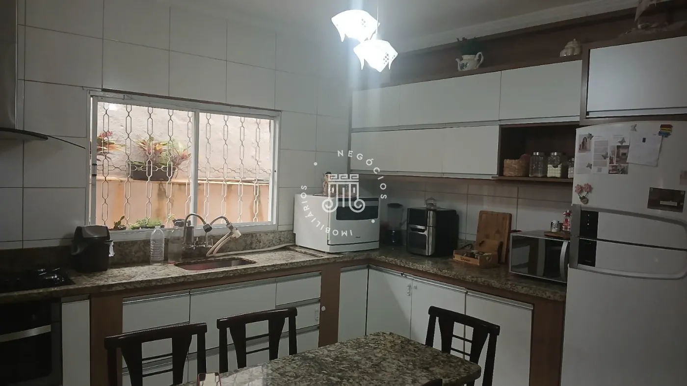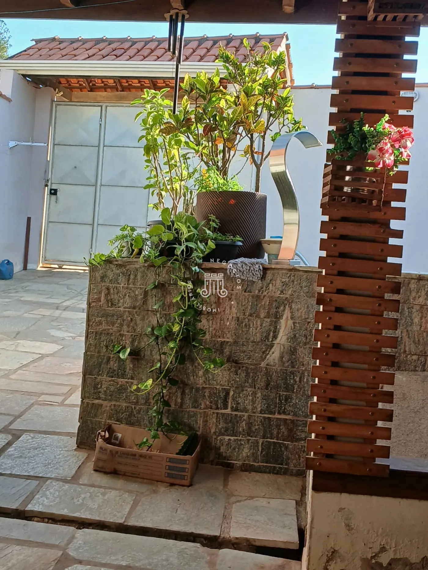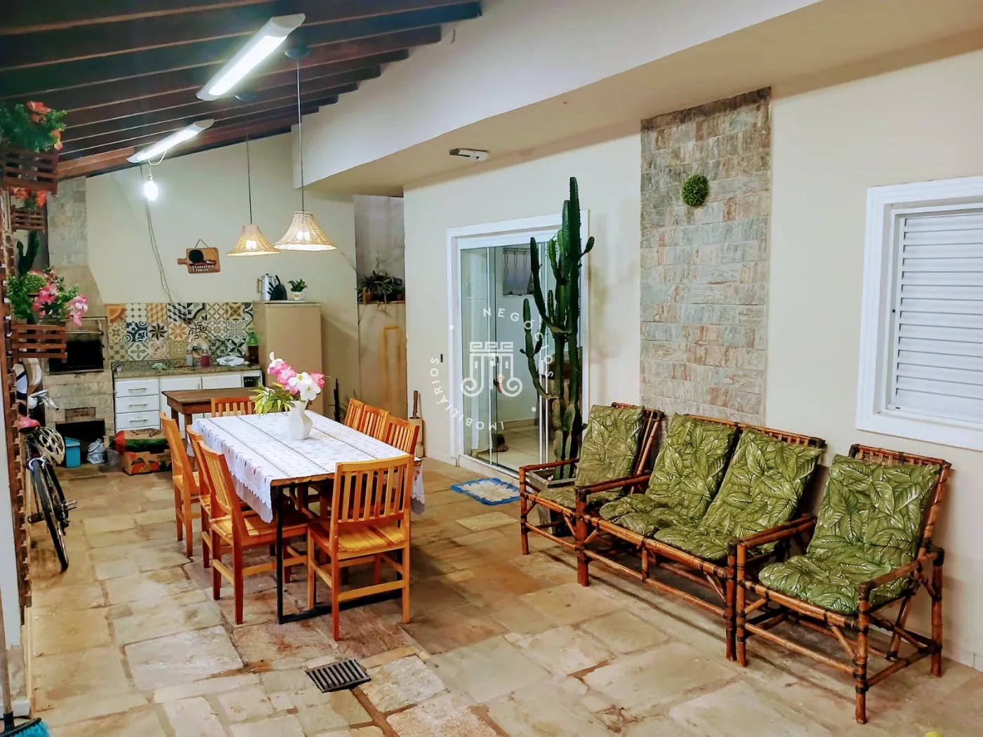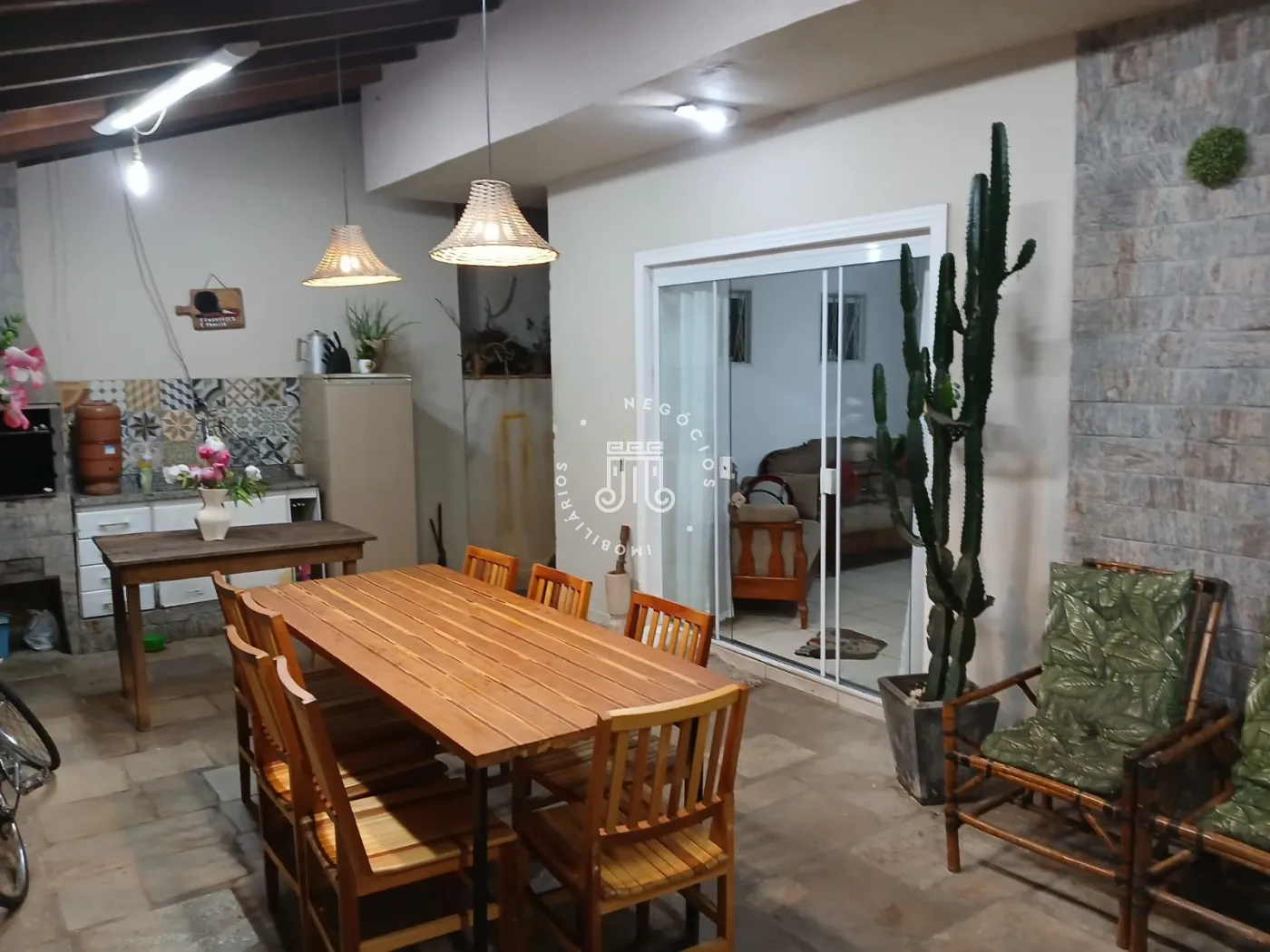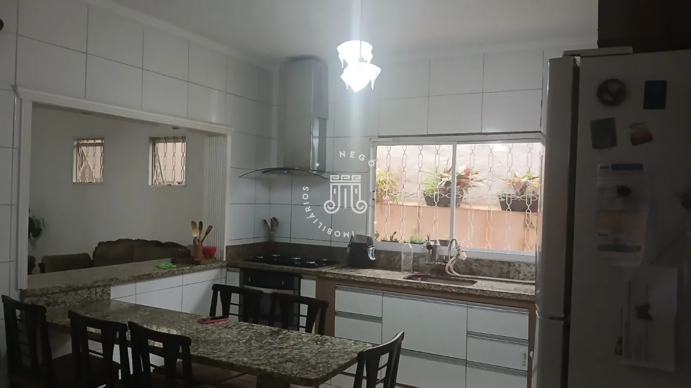 O imóvel possui, 250m2 de área total, sendo 70m2 de área construída, distribuídos em 04 dormitórios, sala de jantar, sala de TV, cozinha com armários, banheiros com armários e box blindex. Ampla área gourmet com churrasqueira, coberta com luminárias pendentes, piscina e garagem. O imóvel tem excelente acabamento com piso frio. Terreno com mini horta e algumas mudas de frutas.