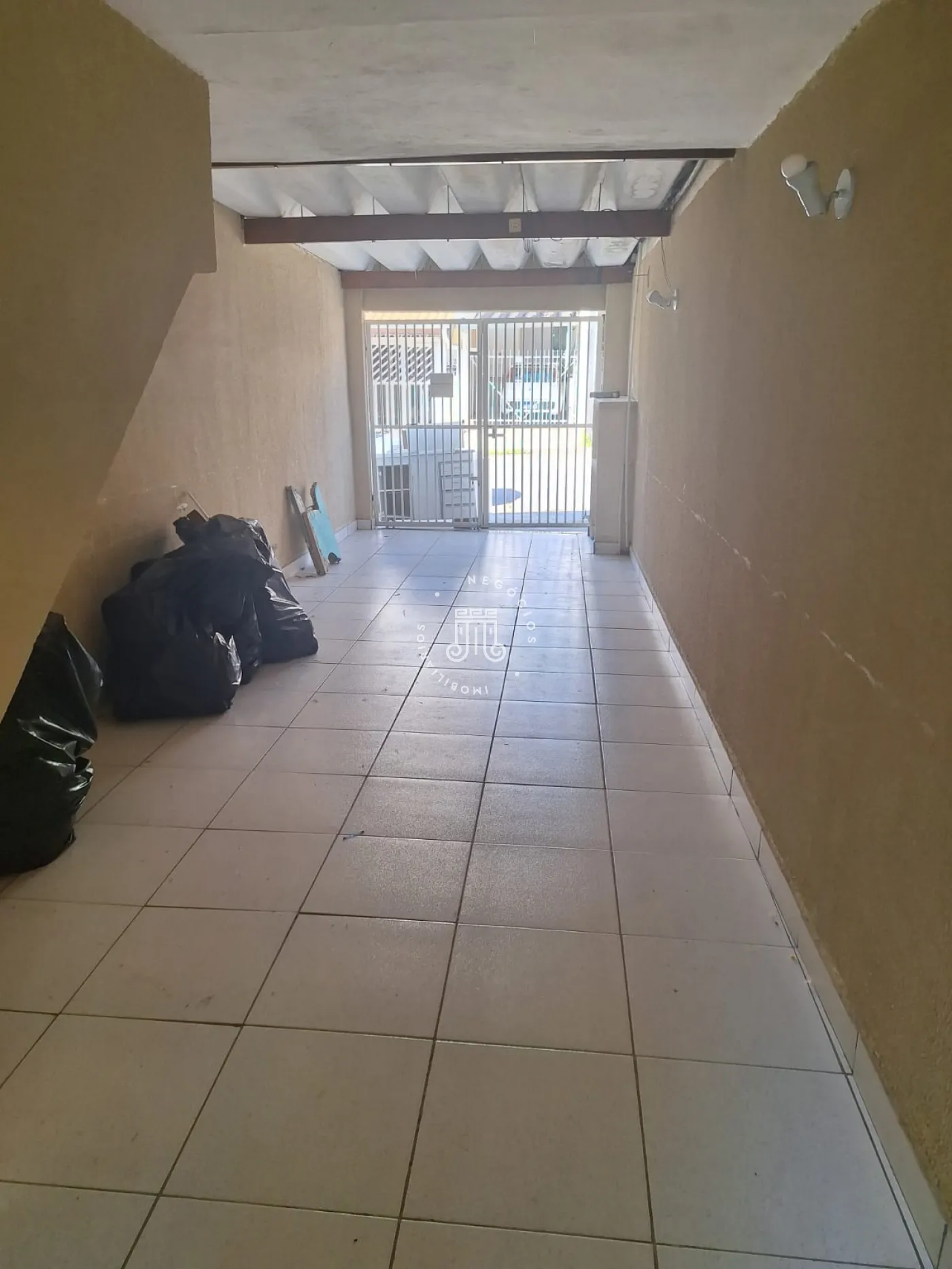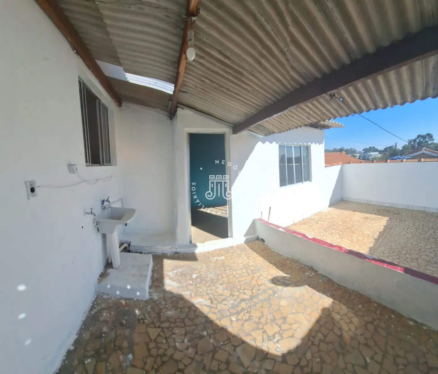 Casa geminada composta por 2 quartos, sala, cozinha, banheiro social, lavanderia, quintal mais uma despensa (quarto) e garagem para 2 carros coberta.