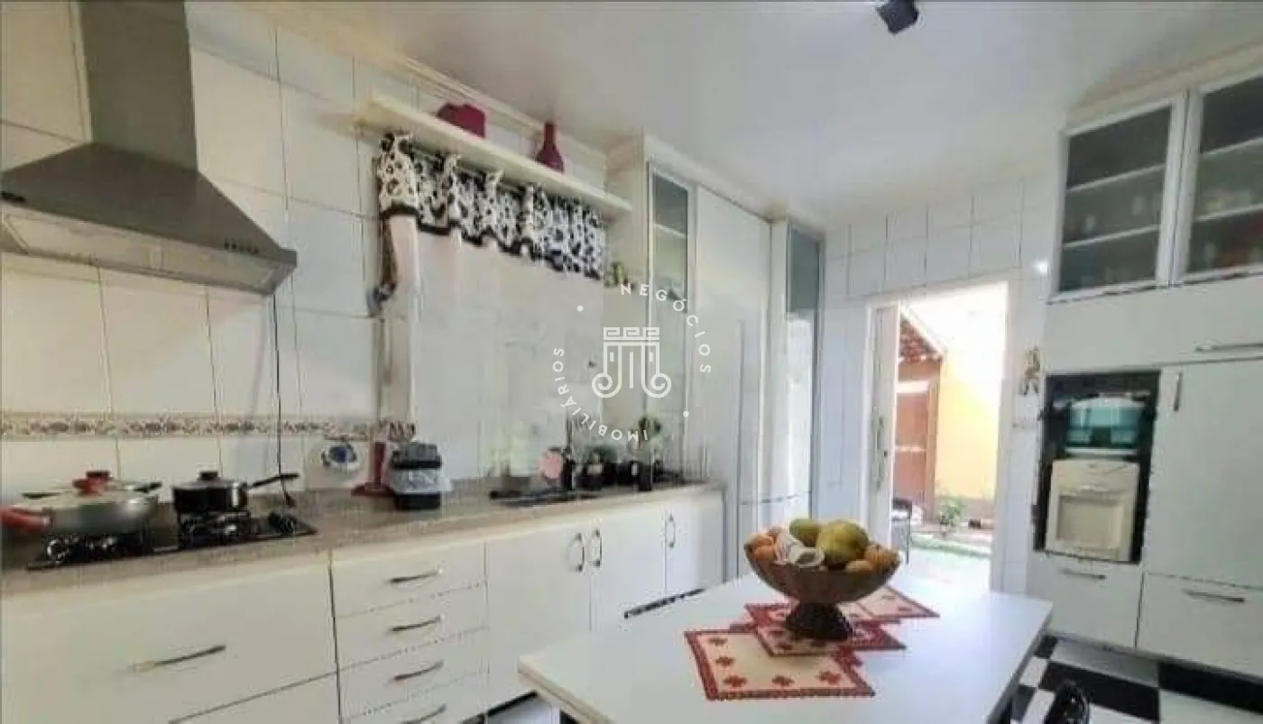 O imóvel possui: 03 dormitórios sendo 1 com suíte e closet, sala ampla com dois ambientes, cozinha completa com moveis planejados, despensa, área gourmet com churrasqueira e forno de pizza, piscina aquecida e com 3 vagas sendo 2 cobertas.
