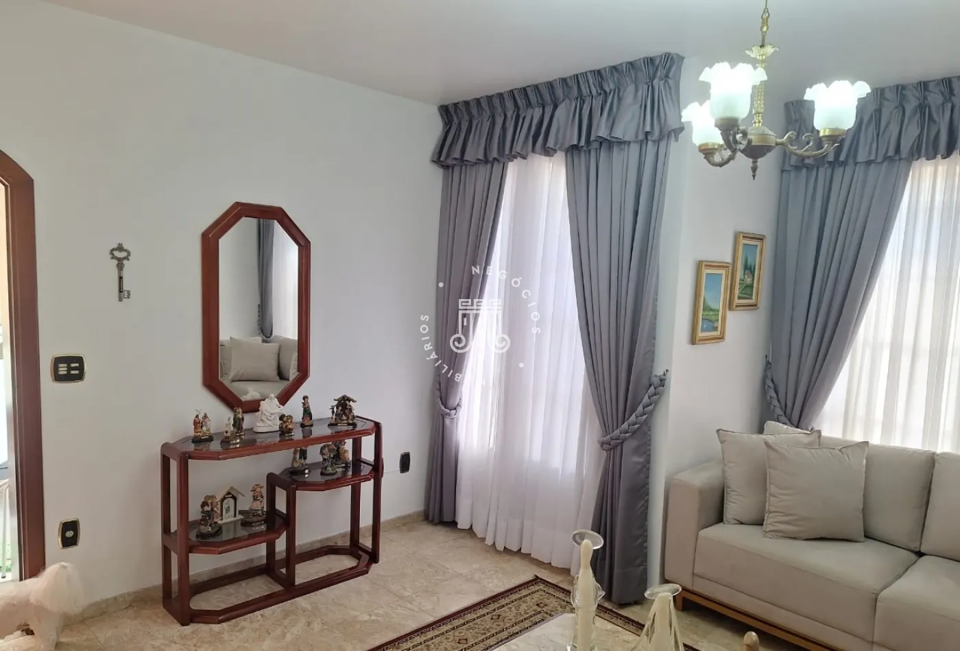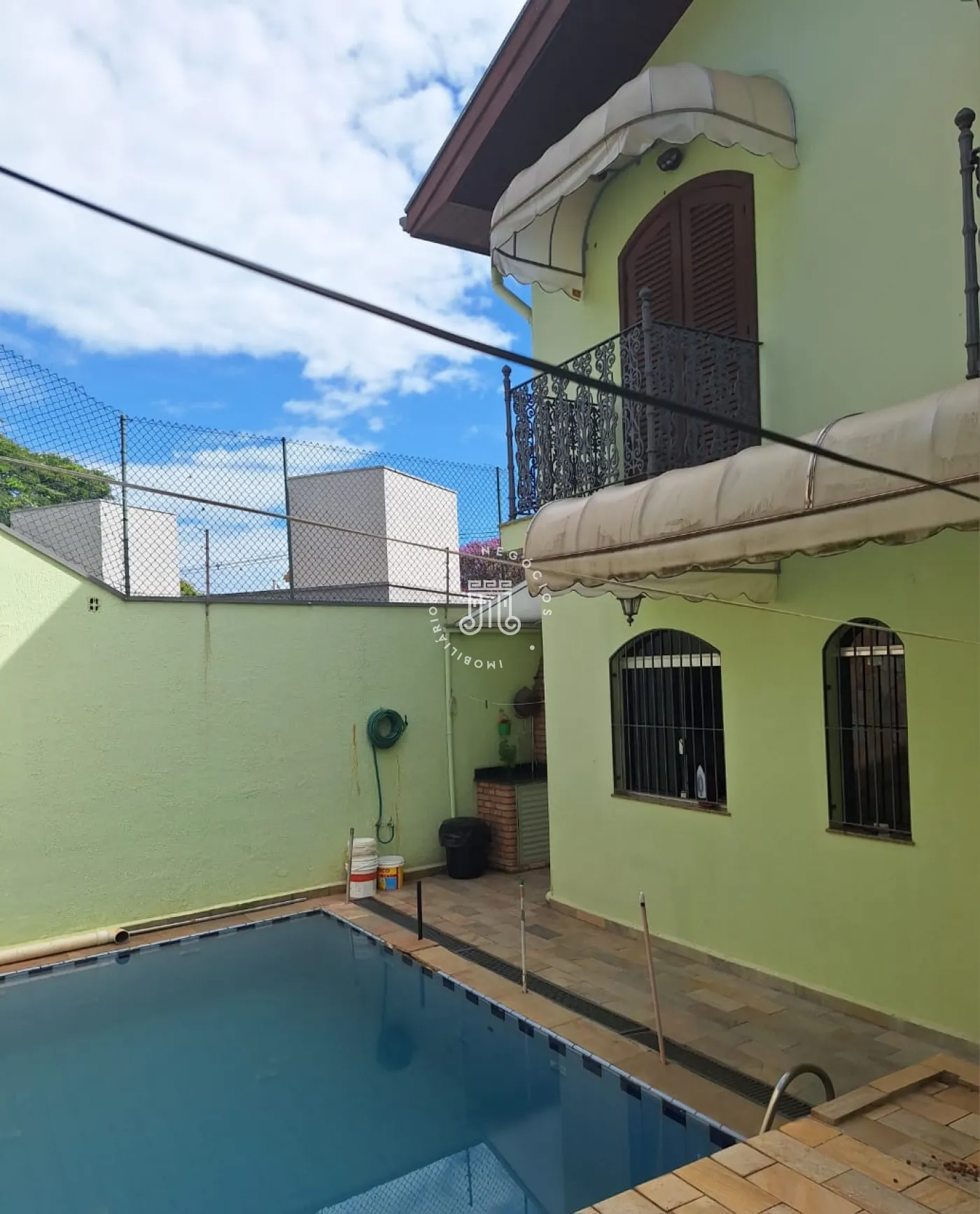Com 3 salas, lavabo, cozinha, lavanderia, quintal com piscina aquecida e churrasqueira, 3 vagas de garagem, sendo uma coberta;