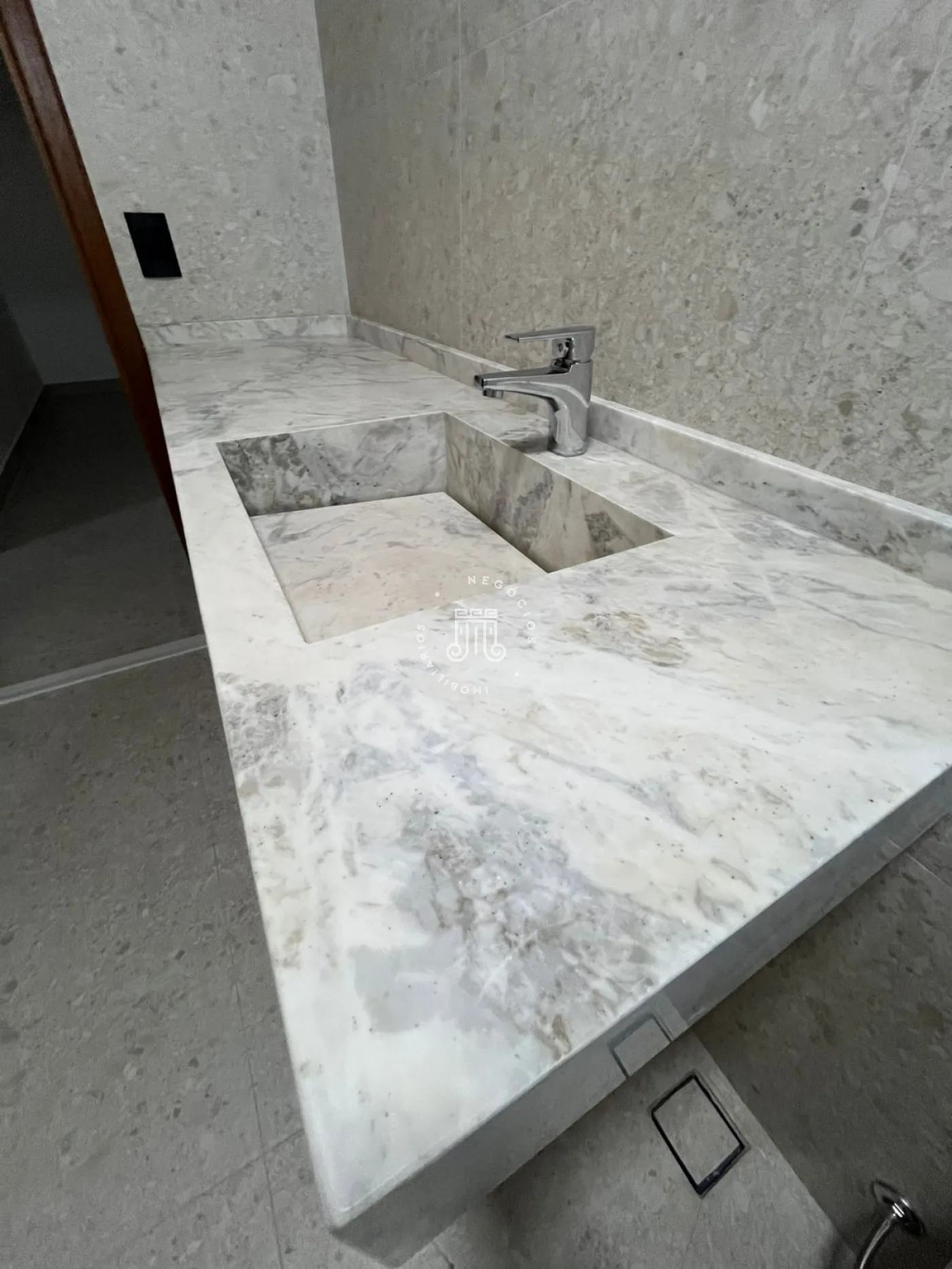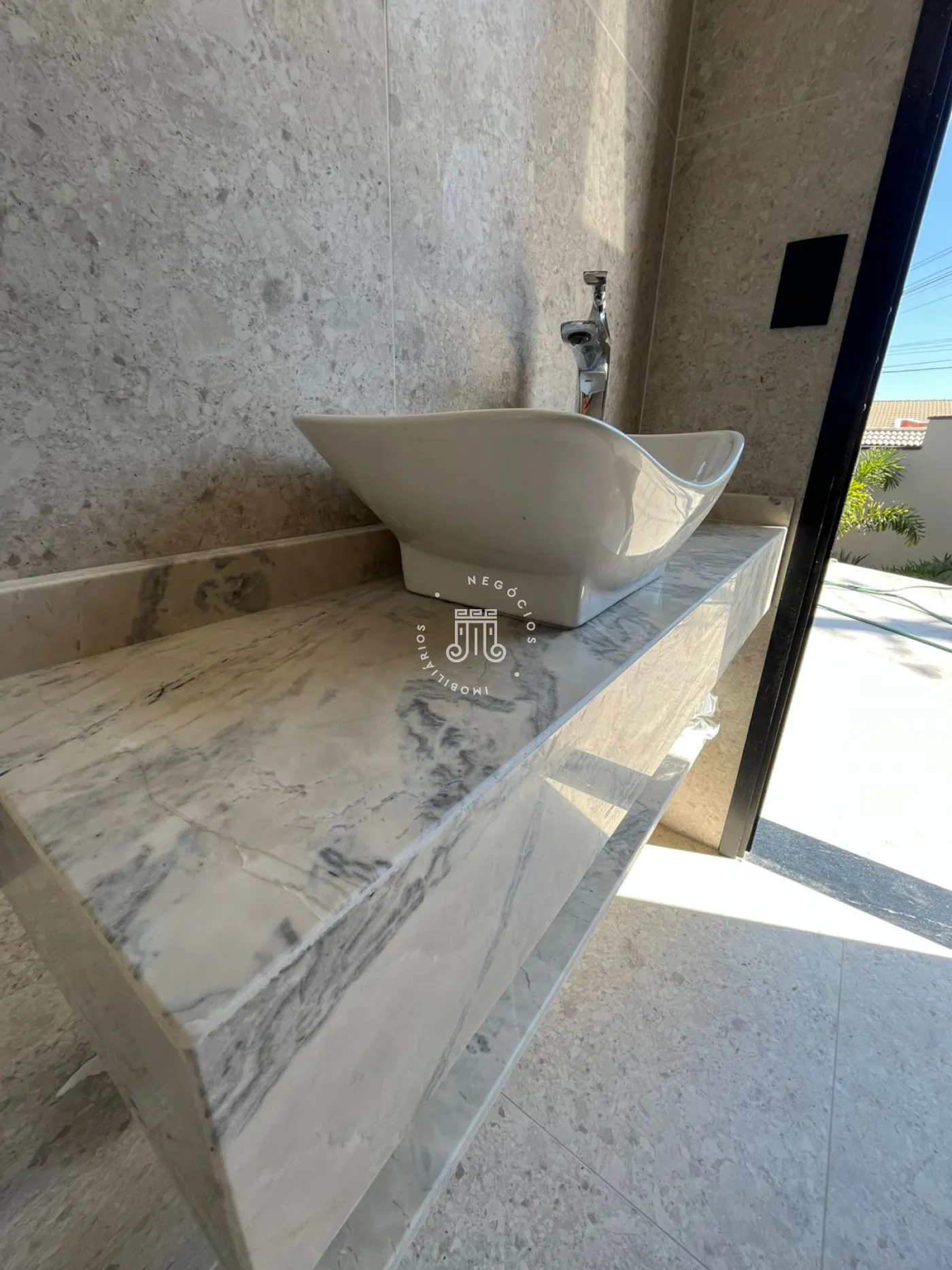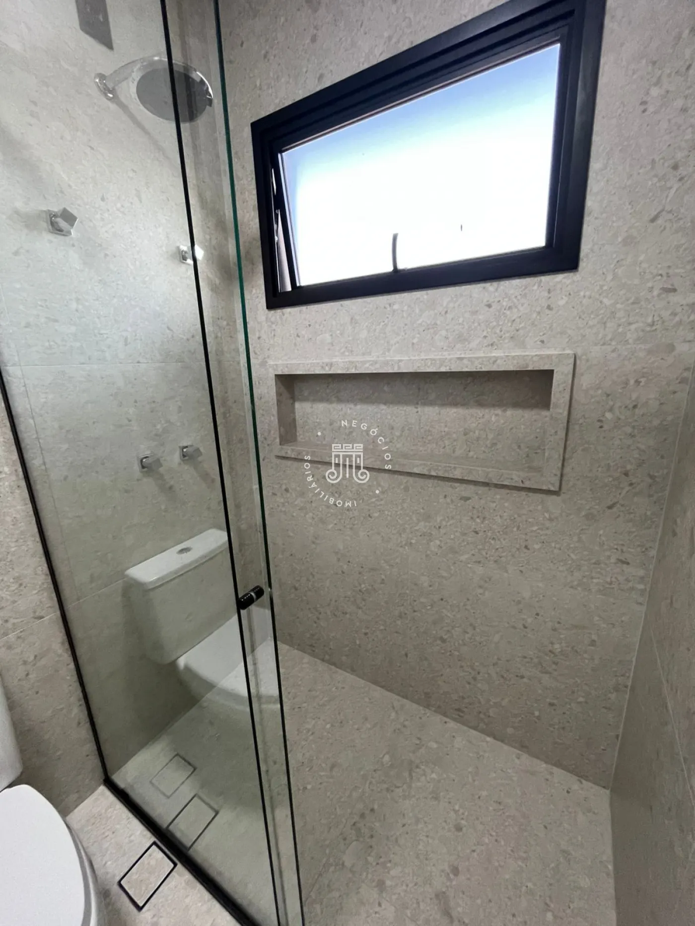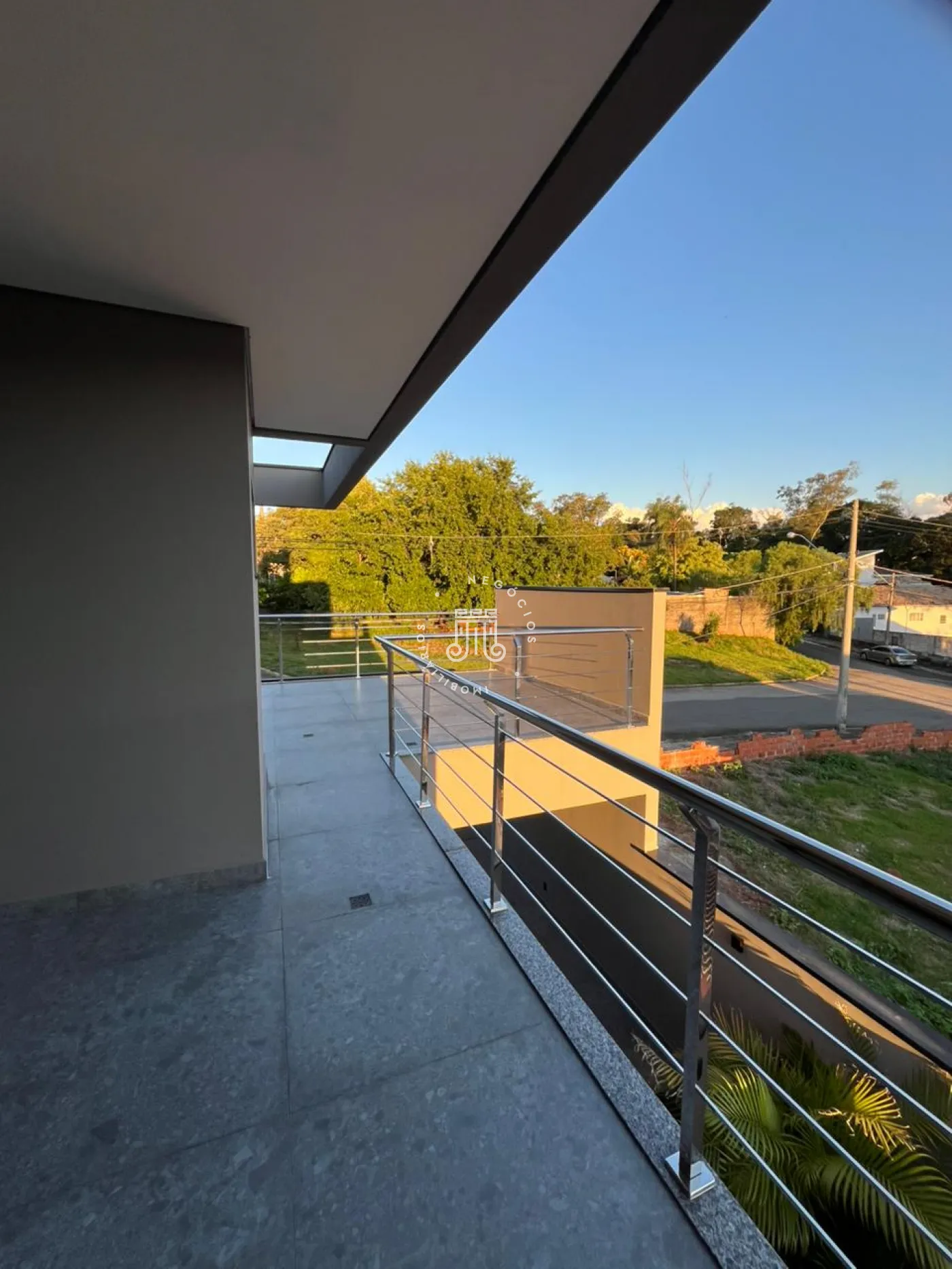 Sobrado com 3 dormitórios no andar superior, sendo 1 suíte com closet, além de 2 quartos e 1 banheiro, todos com varandas amplas e vista. Banheiros com box blindex e acabamento em mármore e porcelanato. No térreo, espaço integrado de sala de estar e jantar, cozinha, área de serviço, lavabo e varanda gourmet com piscina. Garagem coberta para 2 carros com portão eletrônico.