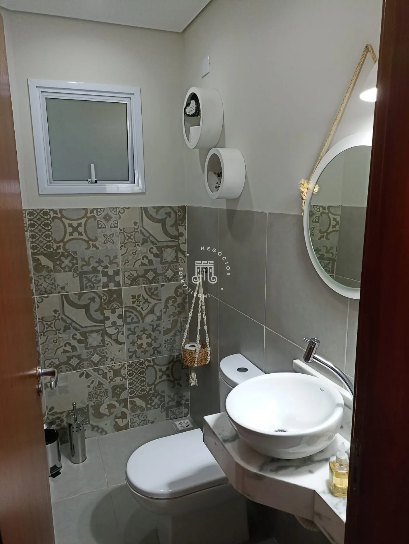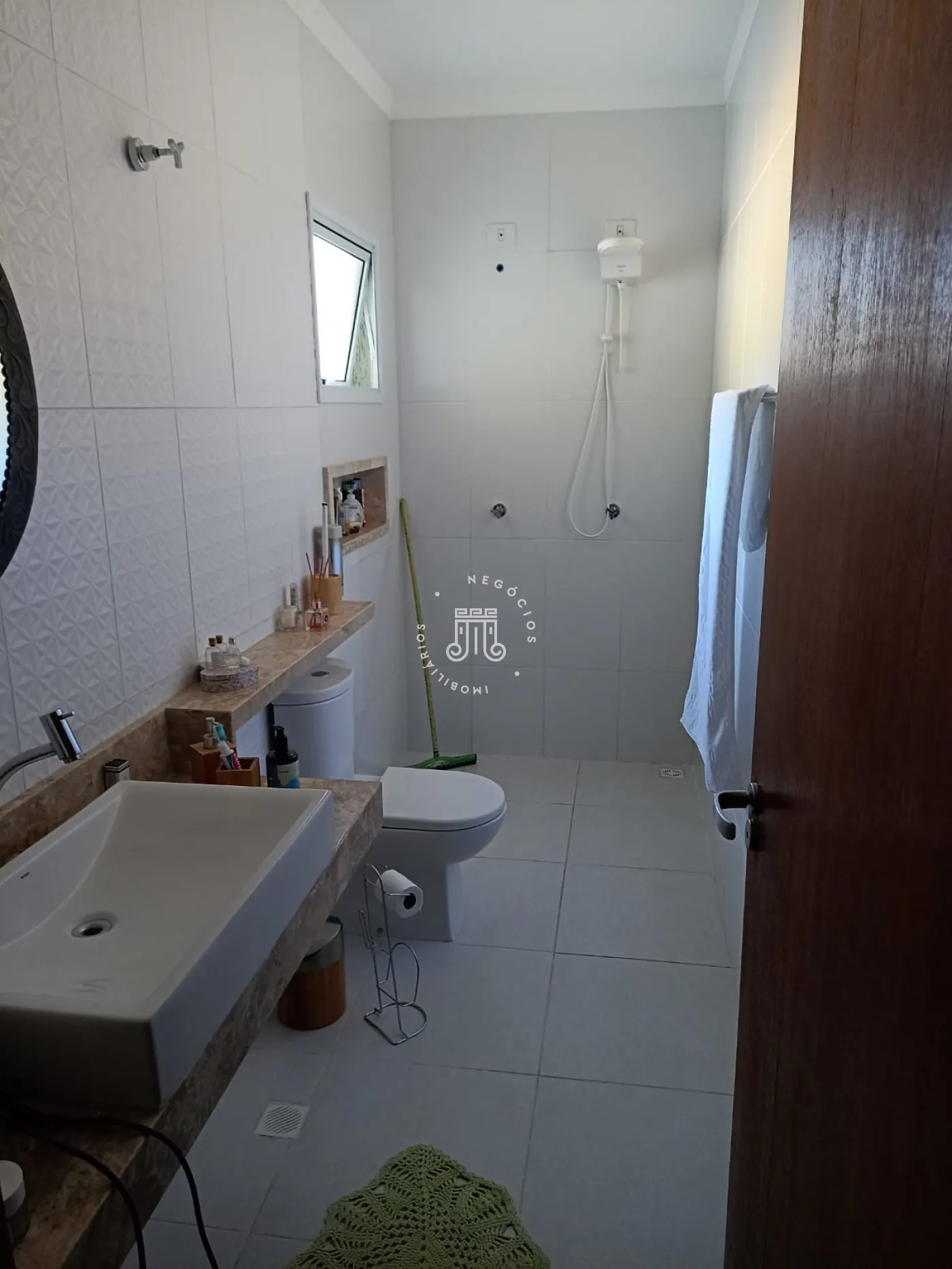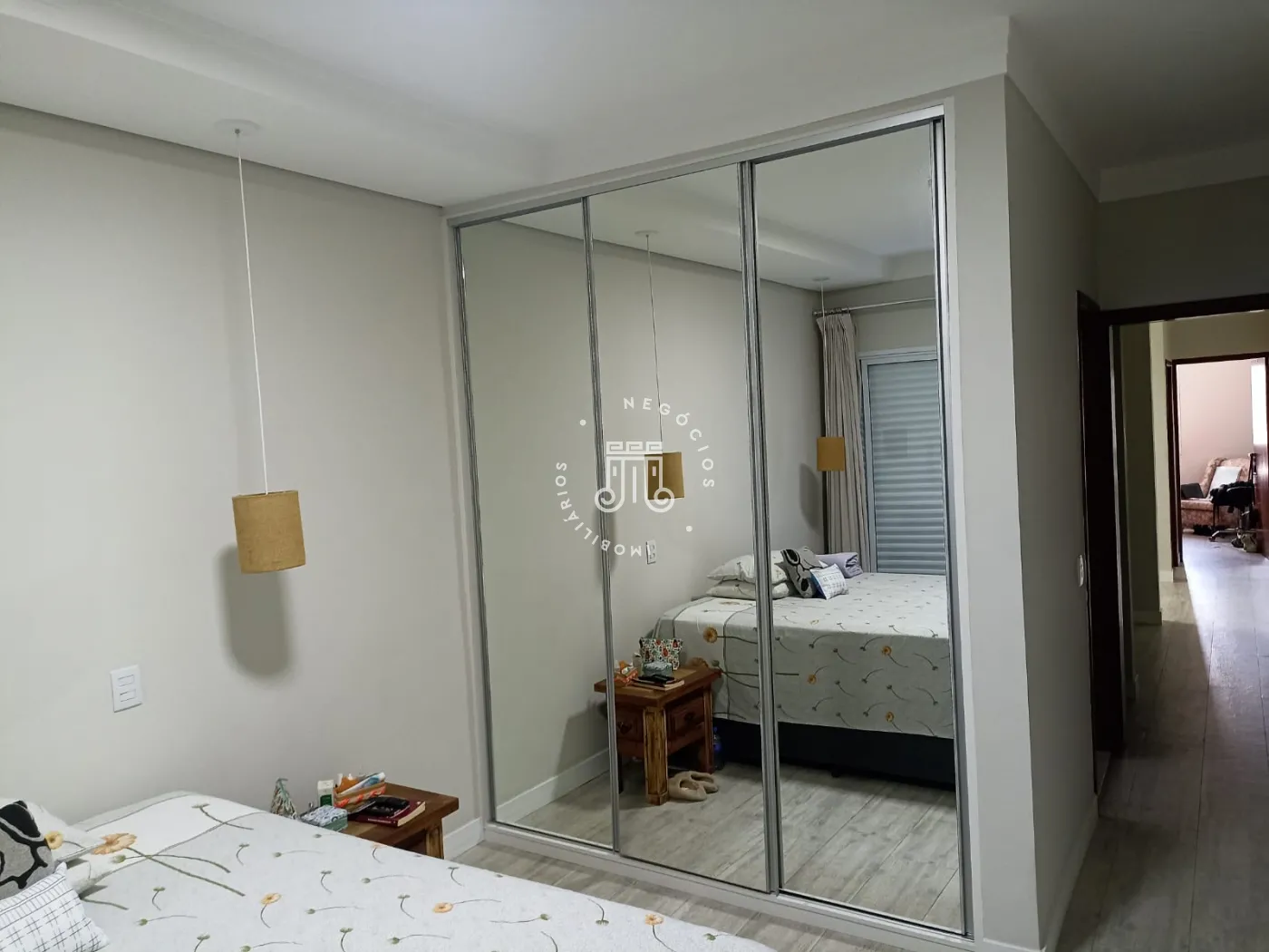 O imóvel possui 125 m² e está distribuído da seguinte forma: São 03 quartos, sendo 01 suíte, com armários planejados, banheiros com espelhos e ducha, sala para 02 ambientes, sendo sala de TV e sala de jantar, cozinha com armários planejados, acabamento em piso cerâmica e laminado, área externa com churrasqueira e 02 vagas de garagem coberta com portão-eletrônico.