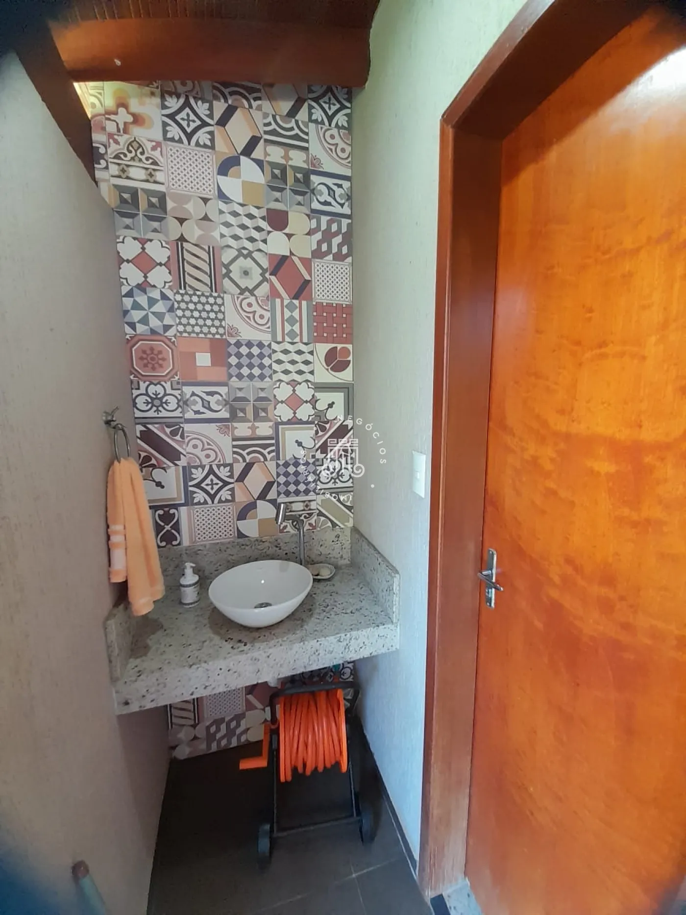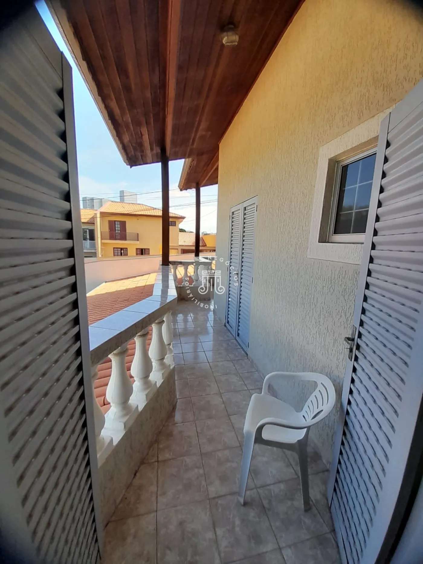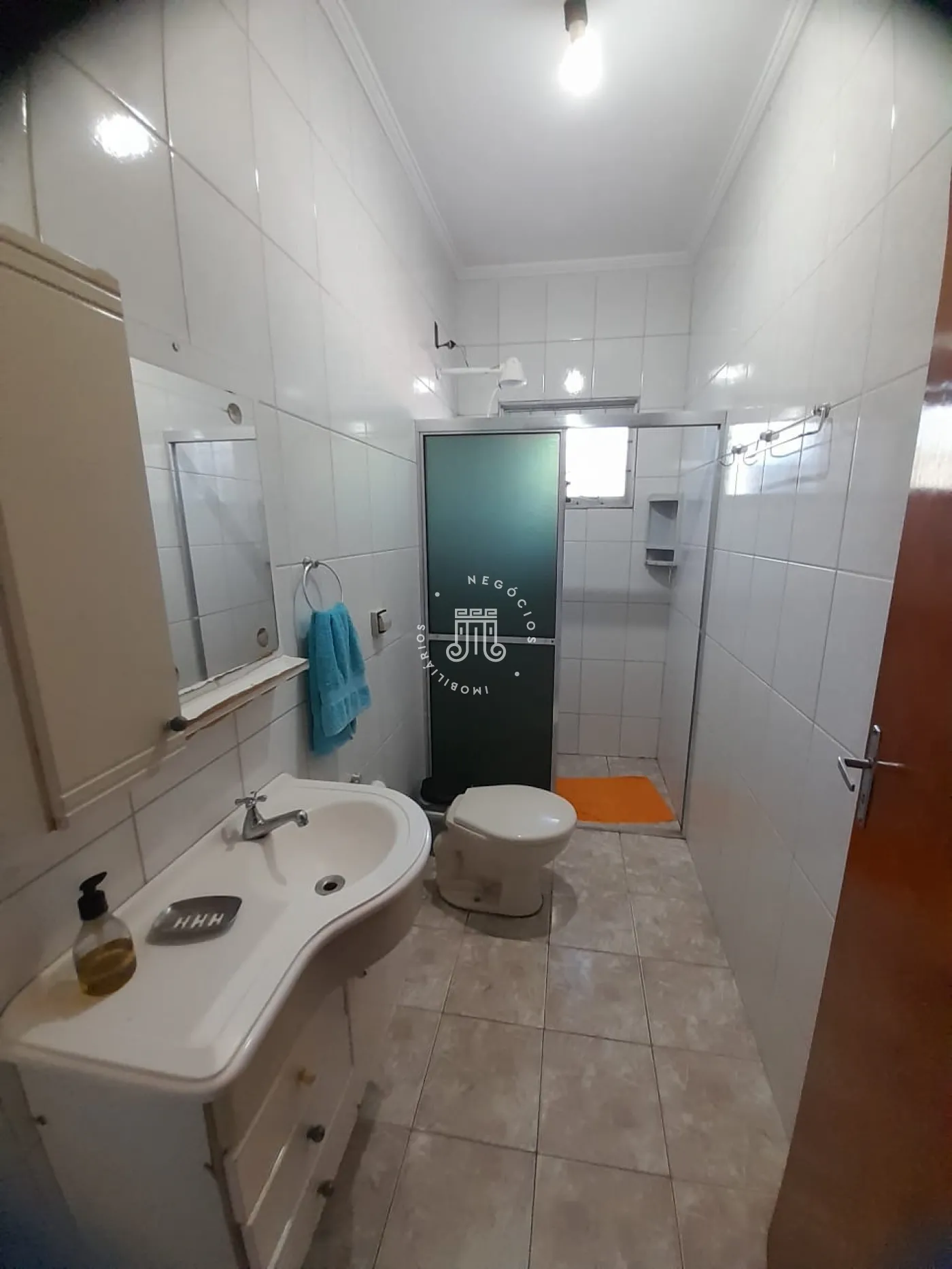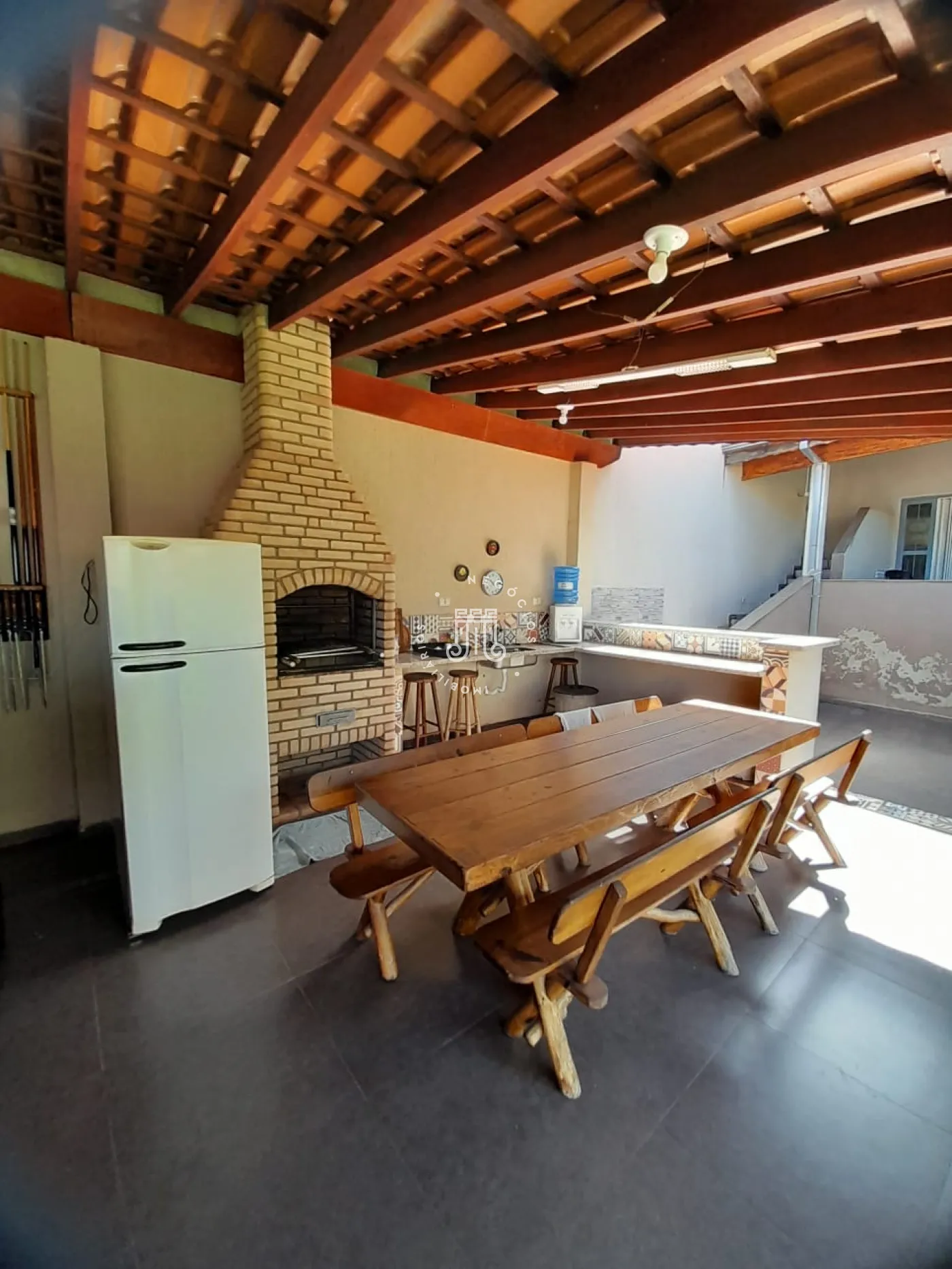 Com 214m² de área construída, possui 3 dormitórios, todos com sacada, sala com 2 ambientes: jantar e estar, cozinha com armários, 2 banheiros, lavanderia, área gourmet com churrasqueira e banheiro, quarto de despejo, terreno grande e gramado, onde podem estacionar 12 carros, canil