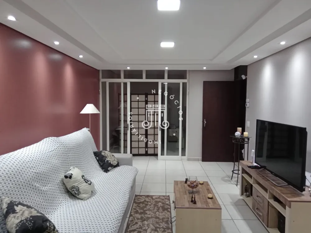 Composta por 3 dormitórios com armários sendo 1 suíte, sala de estar/TV, escritório, sala de jantar com gesso, cozinha com armários, despensa, banheiro social, lavabo, área de serviço com armários, banheiro de serviços, área com churrasqueira e fogão à lenha, quintal lateral, 5 vagas de garagem sendo 2 cobertas, aquecimento solar na parte superior do imóvel, banheiro e suíte.