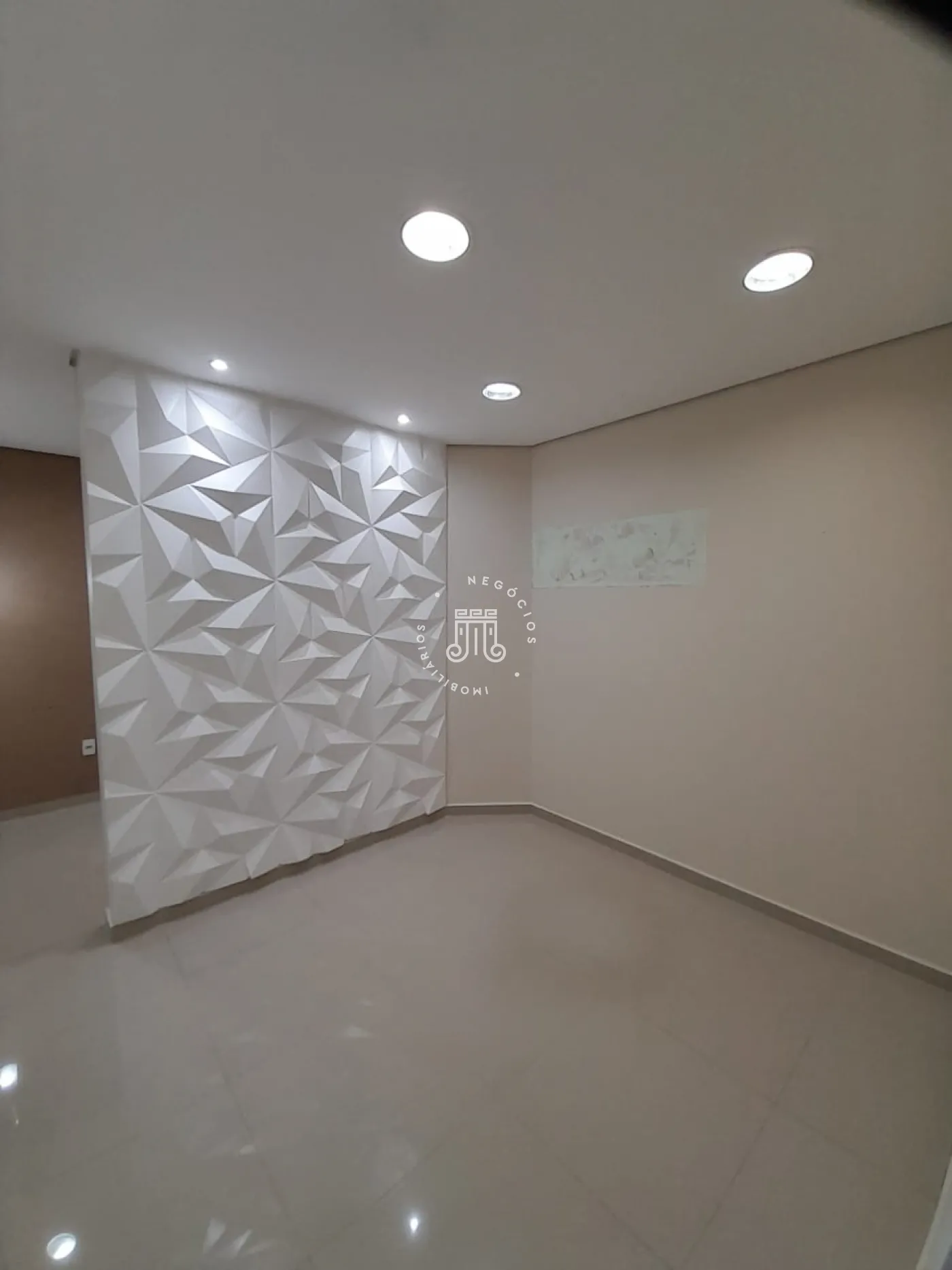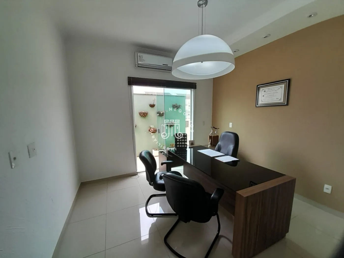 Térreo- Sala ampla para 2 ambientes, 1 suíte, 2 salas ou dormitórios, cozinha, 2 banheiros (fem/masc), 1 banheiro social, quintal e 6 vagas de garagem, sendo 3 cobertas e frontais, com portão eletrônico.