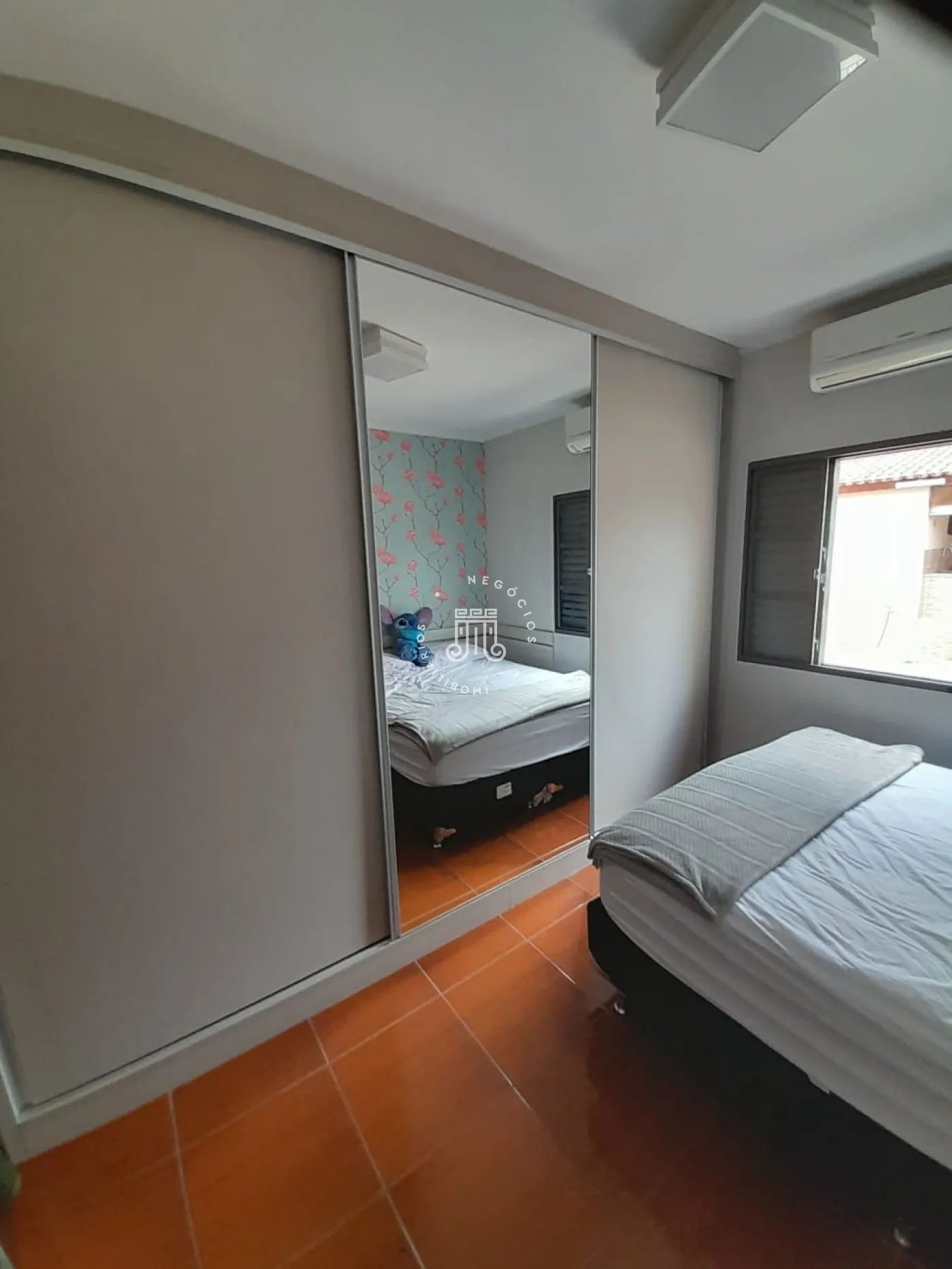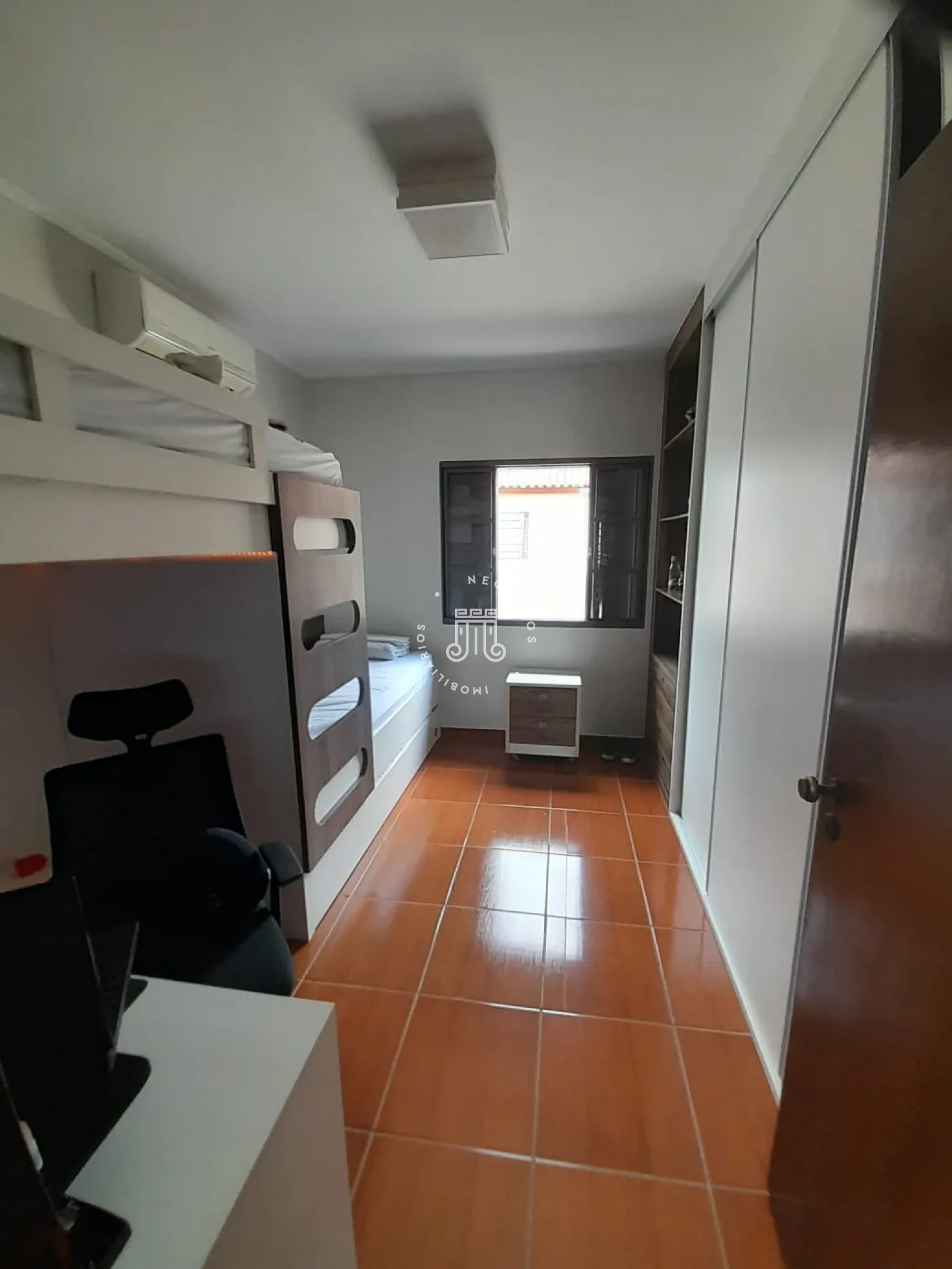 Lindo e espaçoso sobrado com 241m² de área útil, distribuído em 3 dormitórios, sendo 1 suíte com closet e banheira, 2 com armários planejados, todos com ar condicionado, ampla sala de estar, sala de jantar, sala de TV (andar superior), cozinha planejada, 2 banheiros completos, área de serviço, quintal, espaço gourmet com churrasqueira, quarto de despejo com banheiro, aquecimento solar, 3 vagas cobertas, portão eletrônico.
