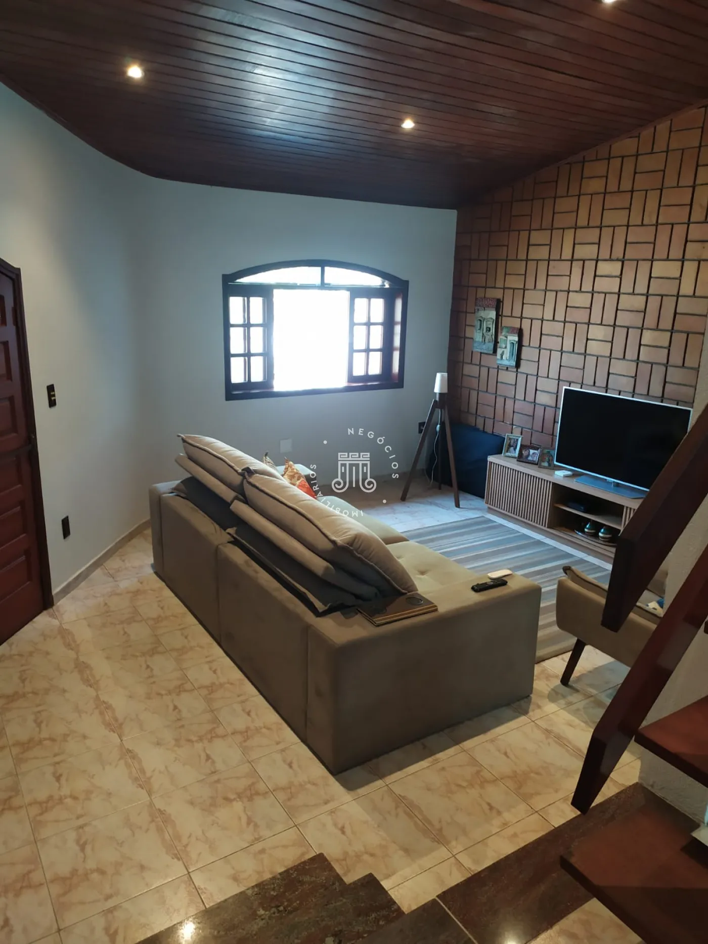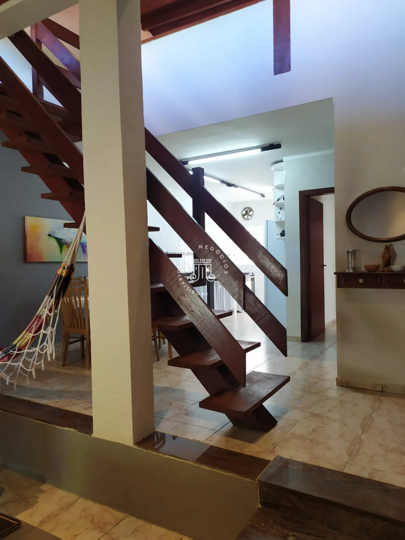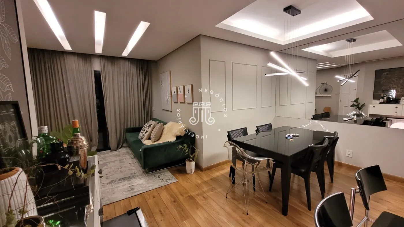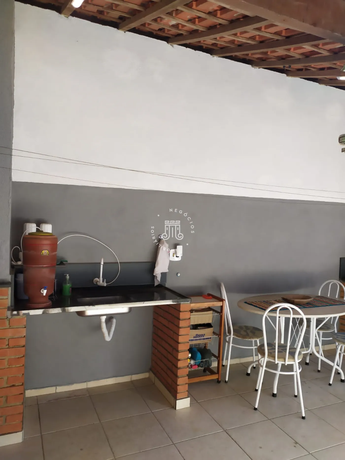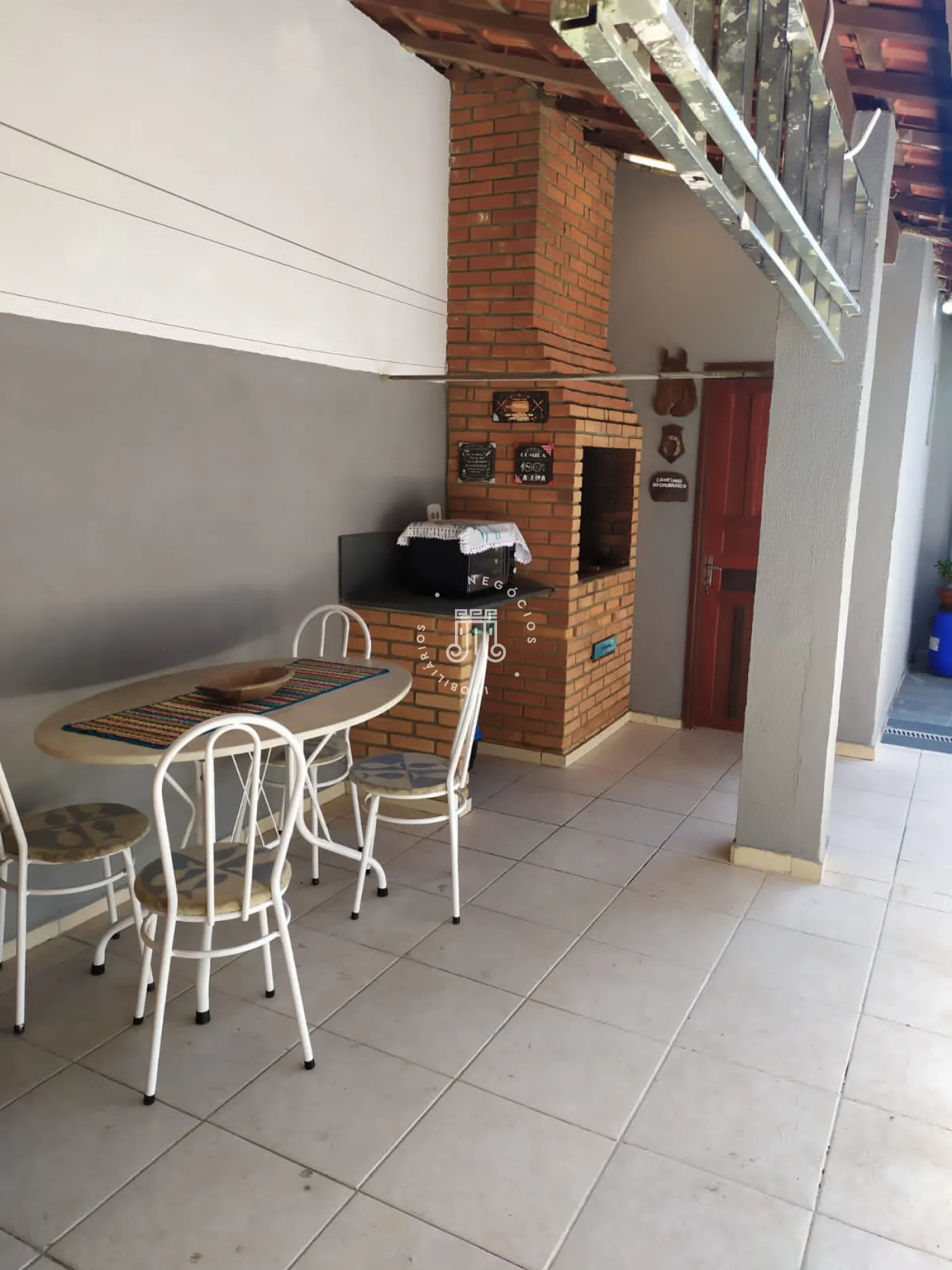 O imóvel possui na parte inferior: 02 dormitórios sendo 01 suíte, banheiro, sala de estar, sala de jantar, copa e cozinha. Na parte superior do imóvel possui também 01 dormitório sendo ele suíte e sala. Área gourmet com churrasqueira. Lavanderia, edícula e garagem com 04 vagas.