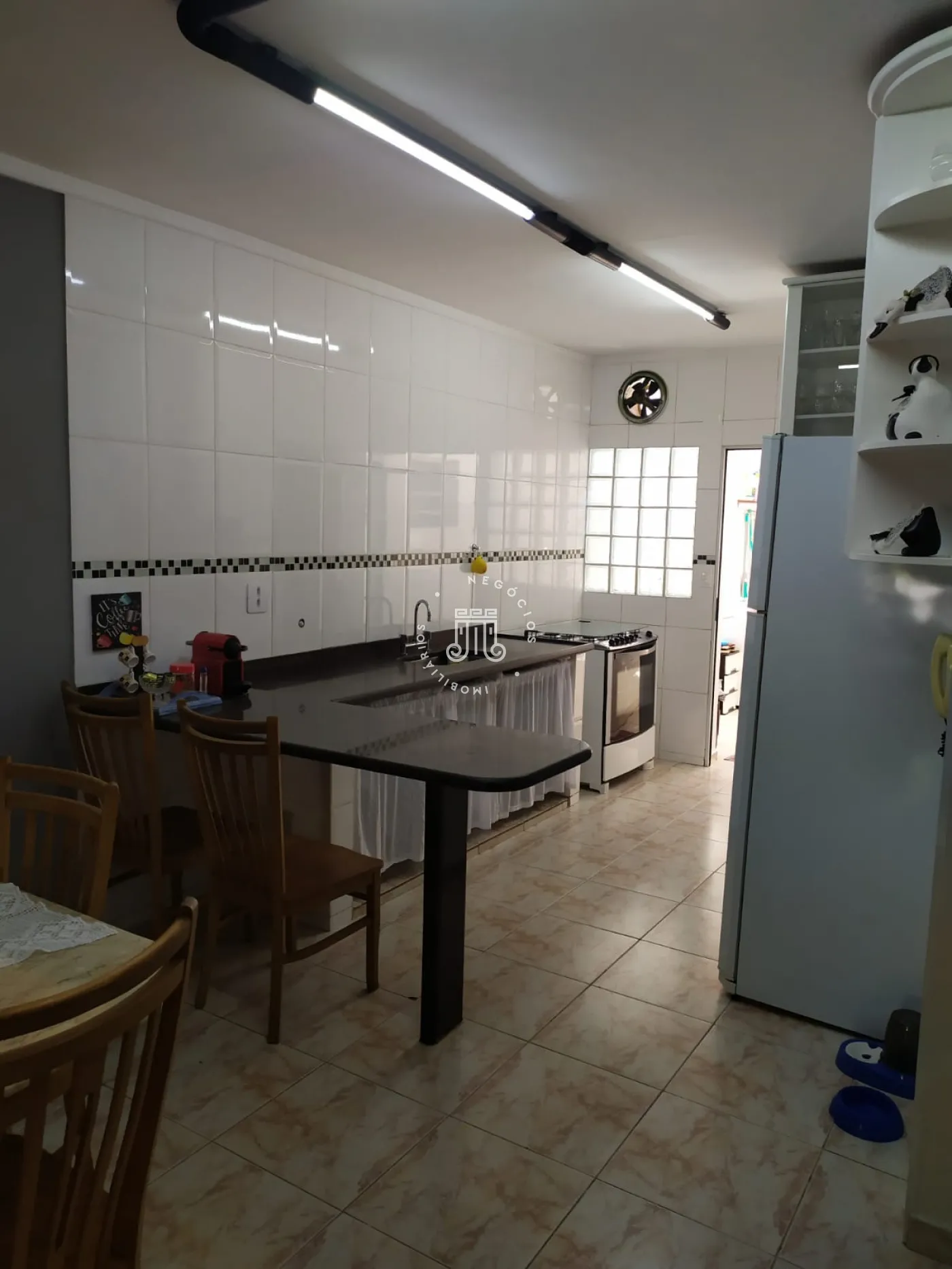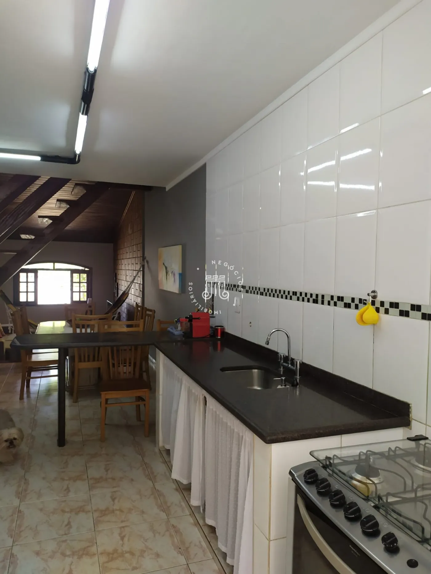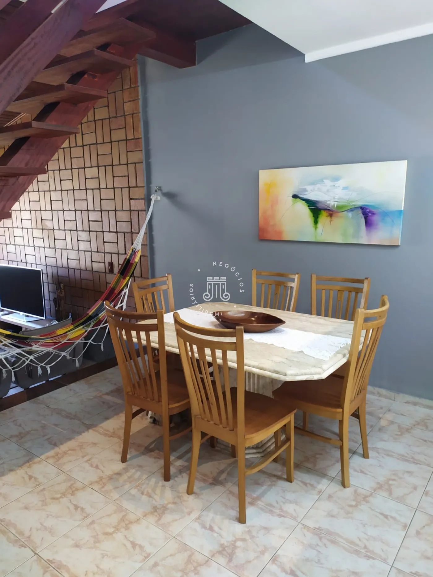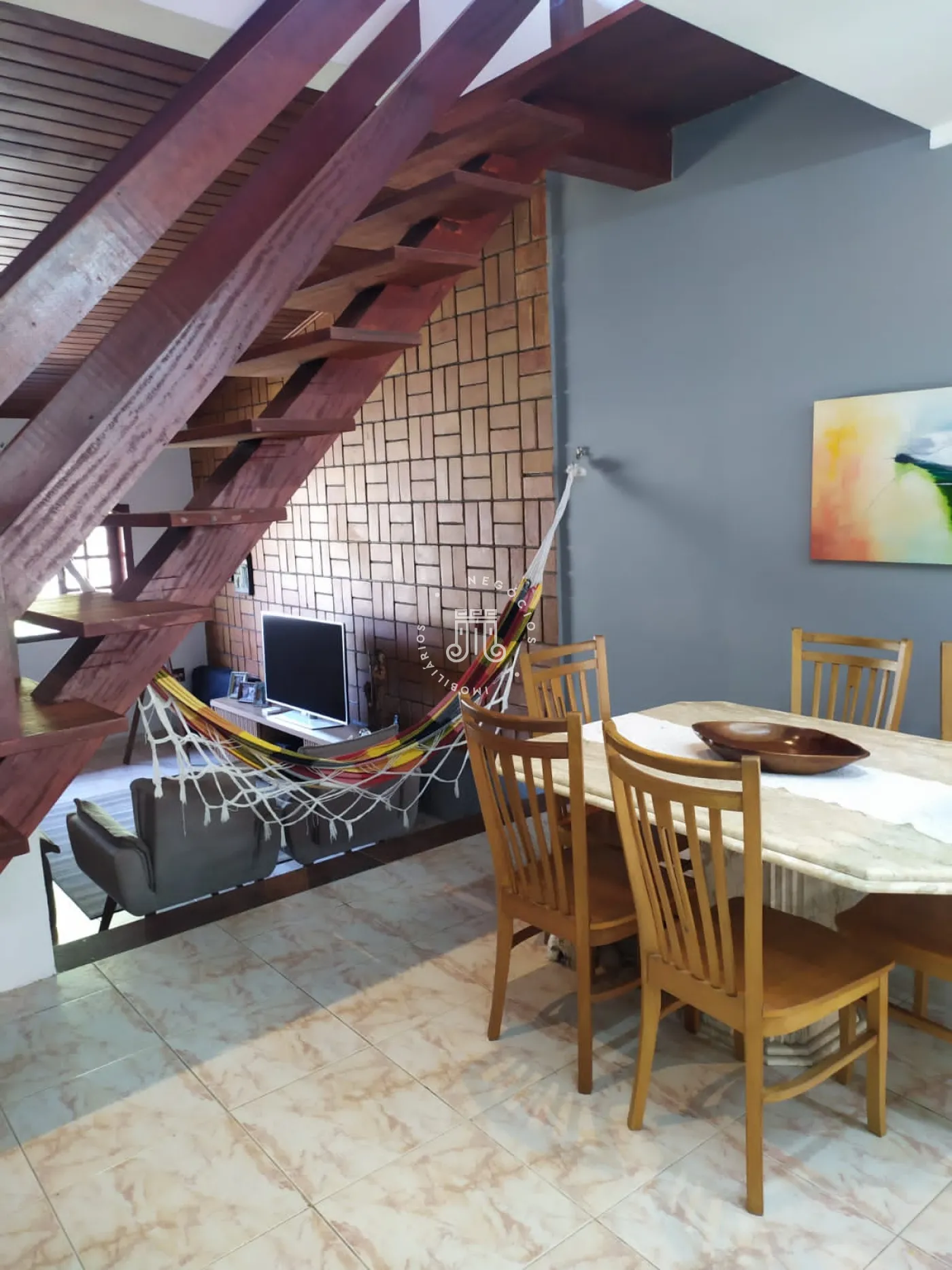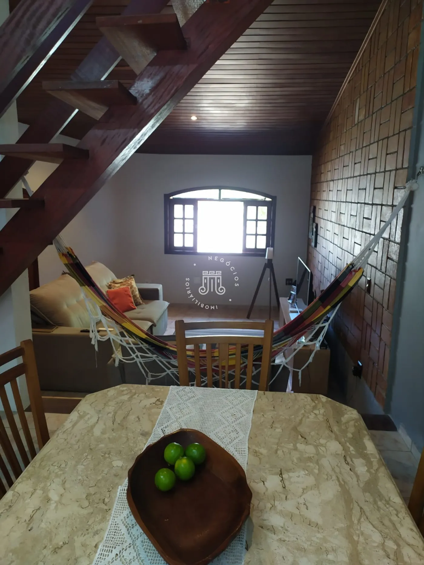 O imóvel possui na parte inferior: 02 dormitórios sendo 01 suíte, banheiro, sala de estar, sala de jantar, copa e cozinha. Na parte superior do imóvel possui também 01 dormitório sendo ele suíte e sala. Área gourmet com churrasqueira. Lavanderia, edícula e garagem com 04 vagas.