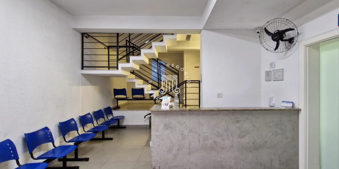Na parte superior são 4 salas espaçosas, sendo uma com banheiro e mais 2 banheiros sociais.