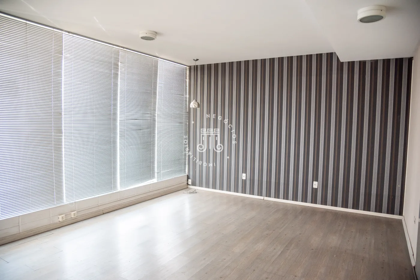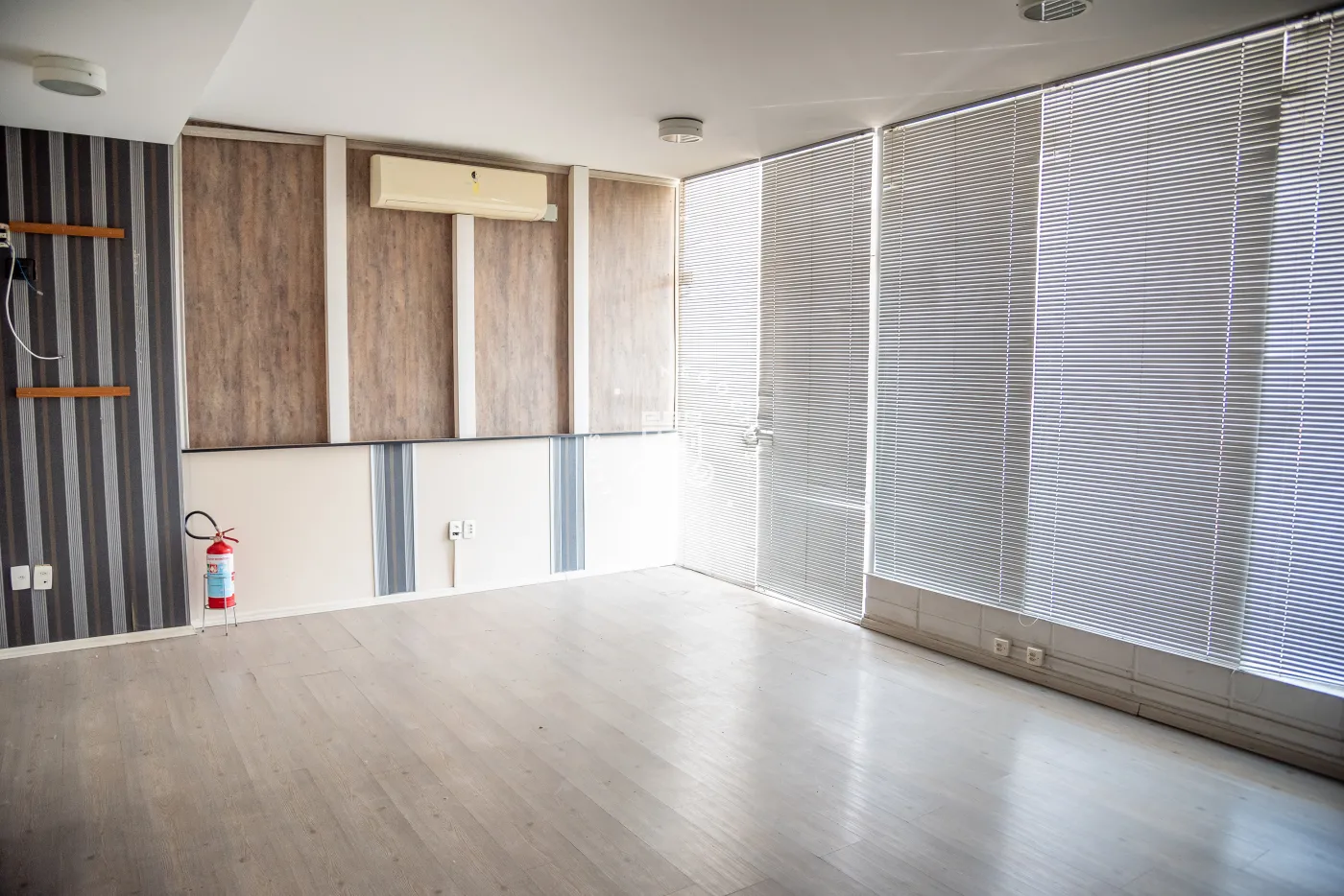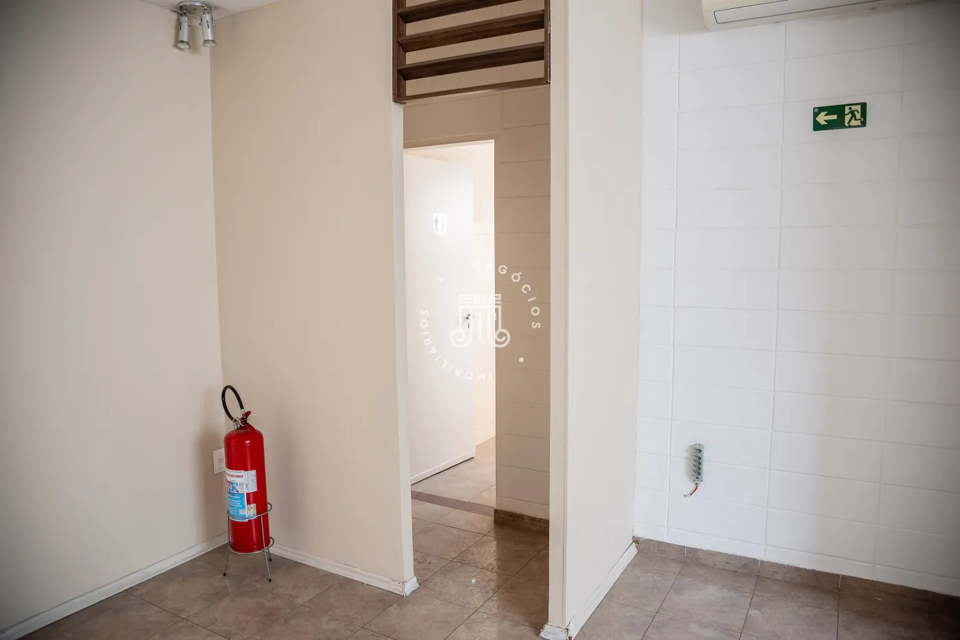 2º andar (120,45 m²): 1 sala grande, que pode ser usada para ser diretoria, com pé direito de 2,70m², 2 salas, sendo 1 mobiliada com armários, banheiro masculino (mictório e bacia), banheiro feminino (2 bacias).