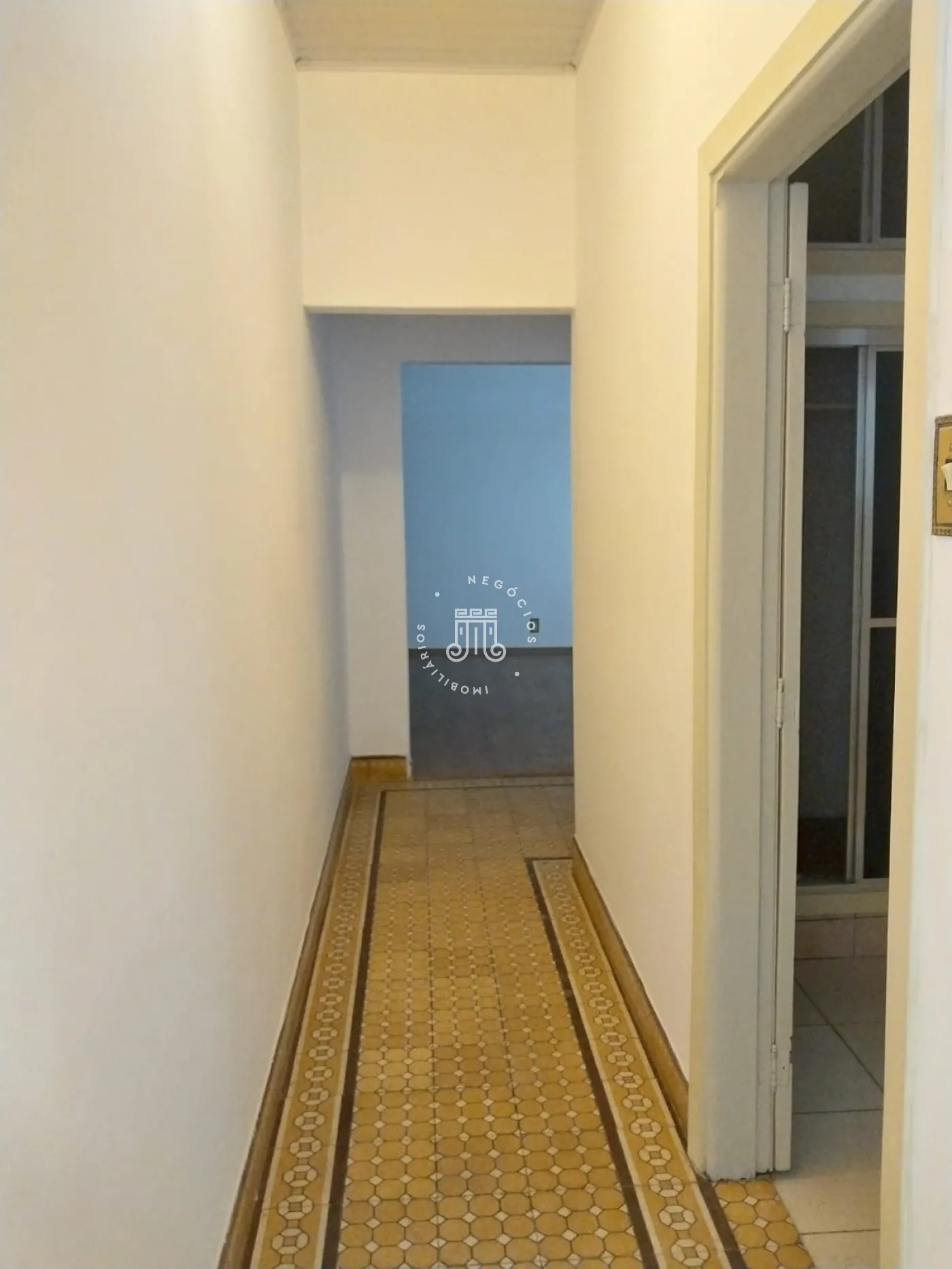Na parte superior, com 191 m² de área útil, o imóvel é composto por sete salas, sendo três com piso frio e quatro com piso de taco de madeira, duas delas equipadas com armários embutidos. Há também dois banheiros e uma recepção.