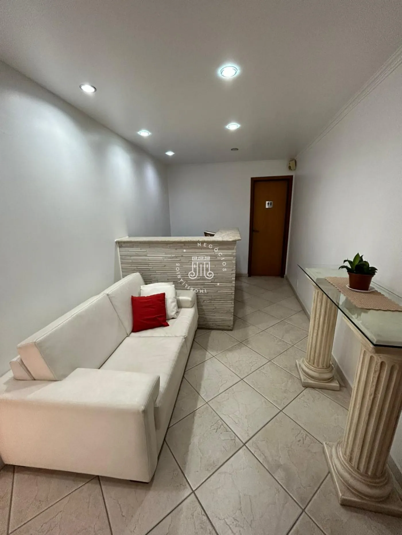Sala com 64 m², copa e banheiro.