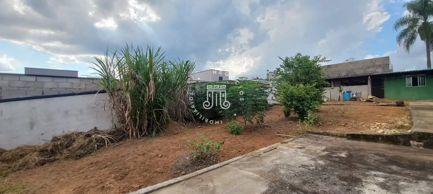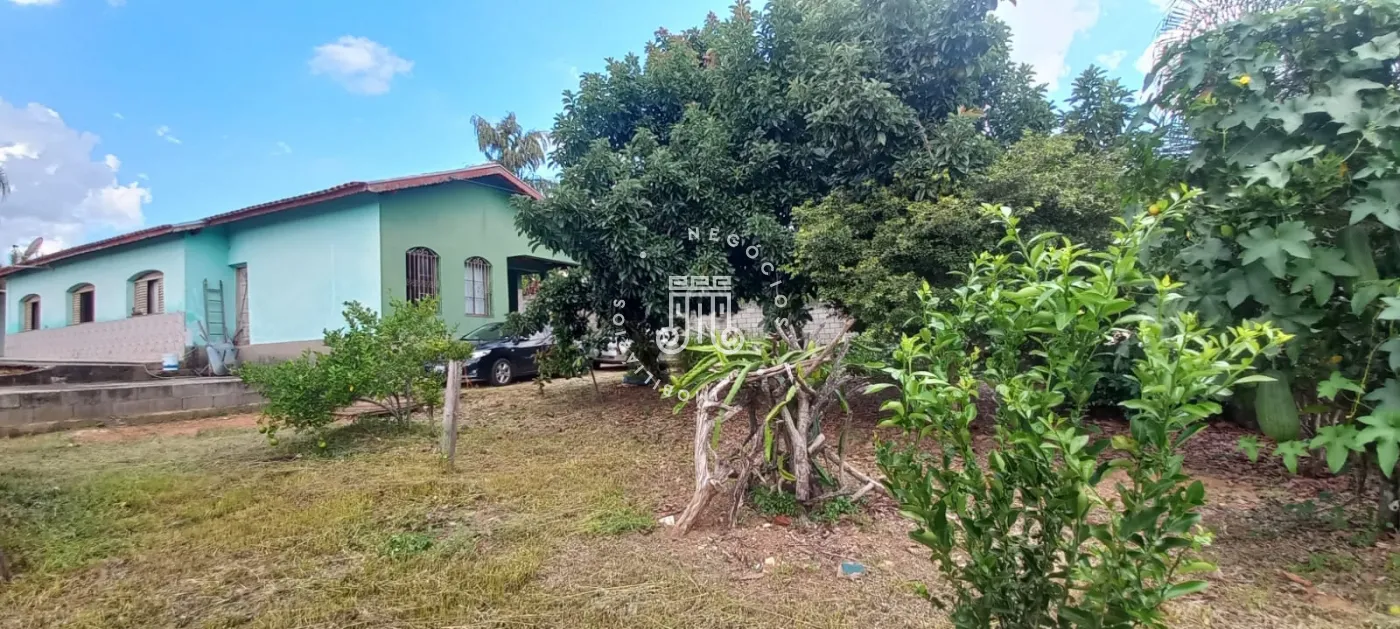 Ampla área verde com algumas árvores frutíferas e quintal.