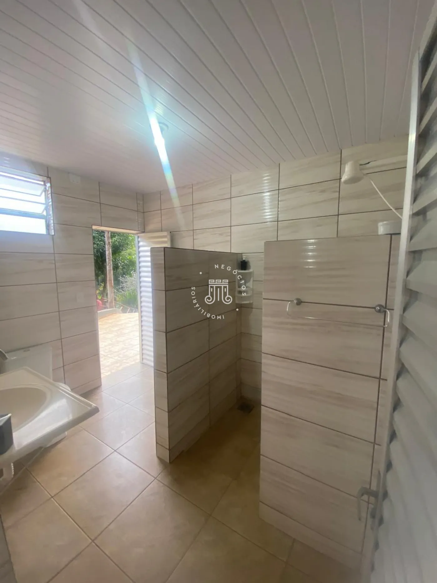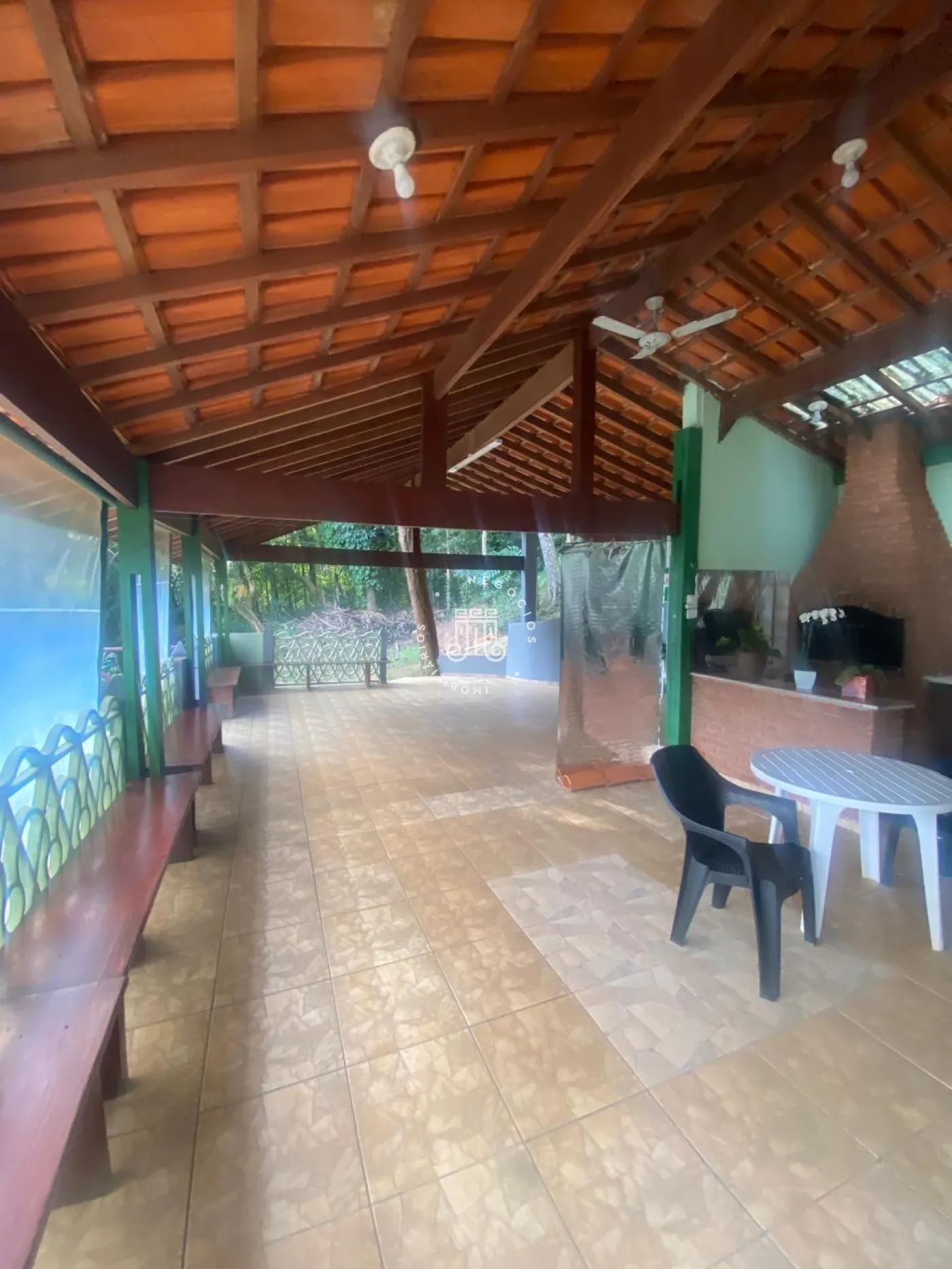 Área de lazer coberta para 60 pessoas com churrasqueira, piscina 8 x 4 mts, pomar com varias pés de frutas como manga, abacate, mamão, mexerica, limão, acerola e lichia, lago com 300 metros todo murado.