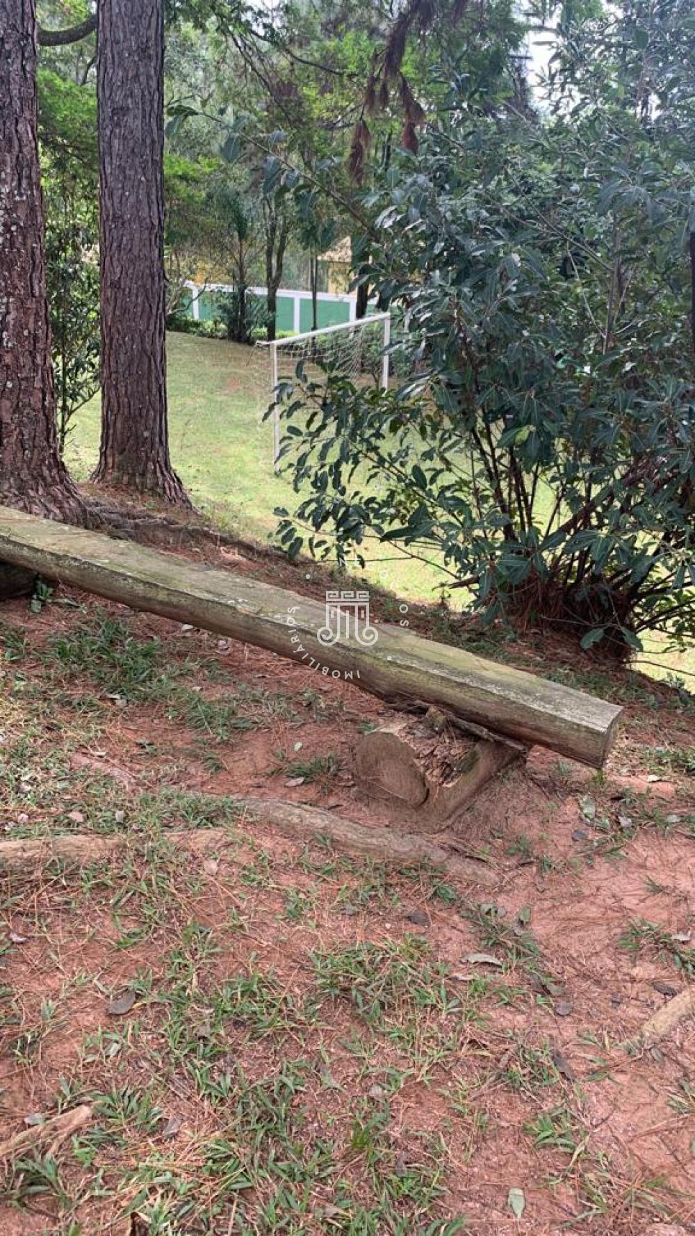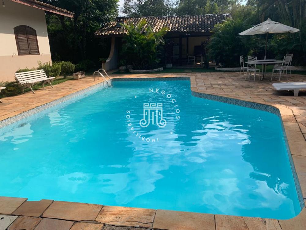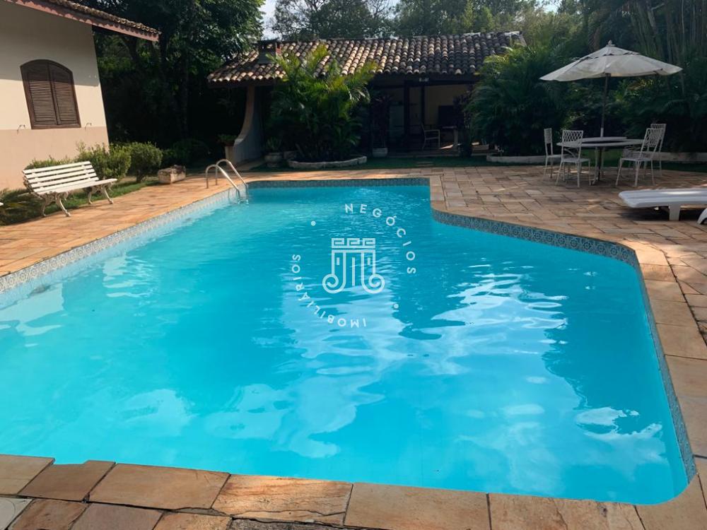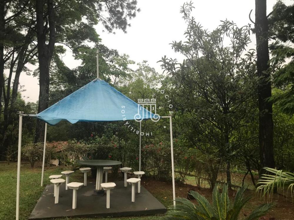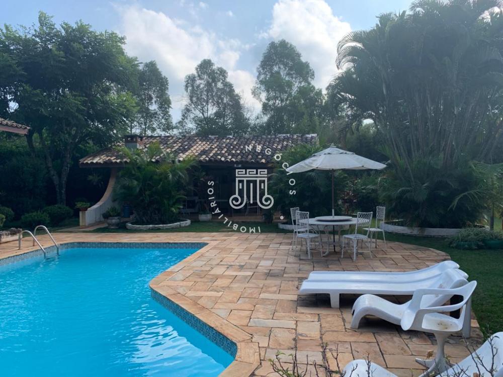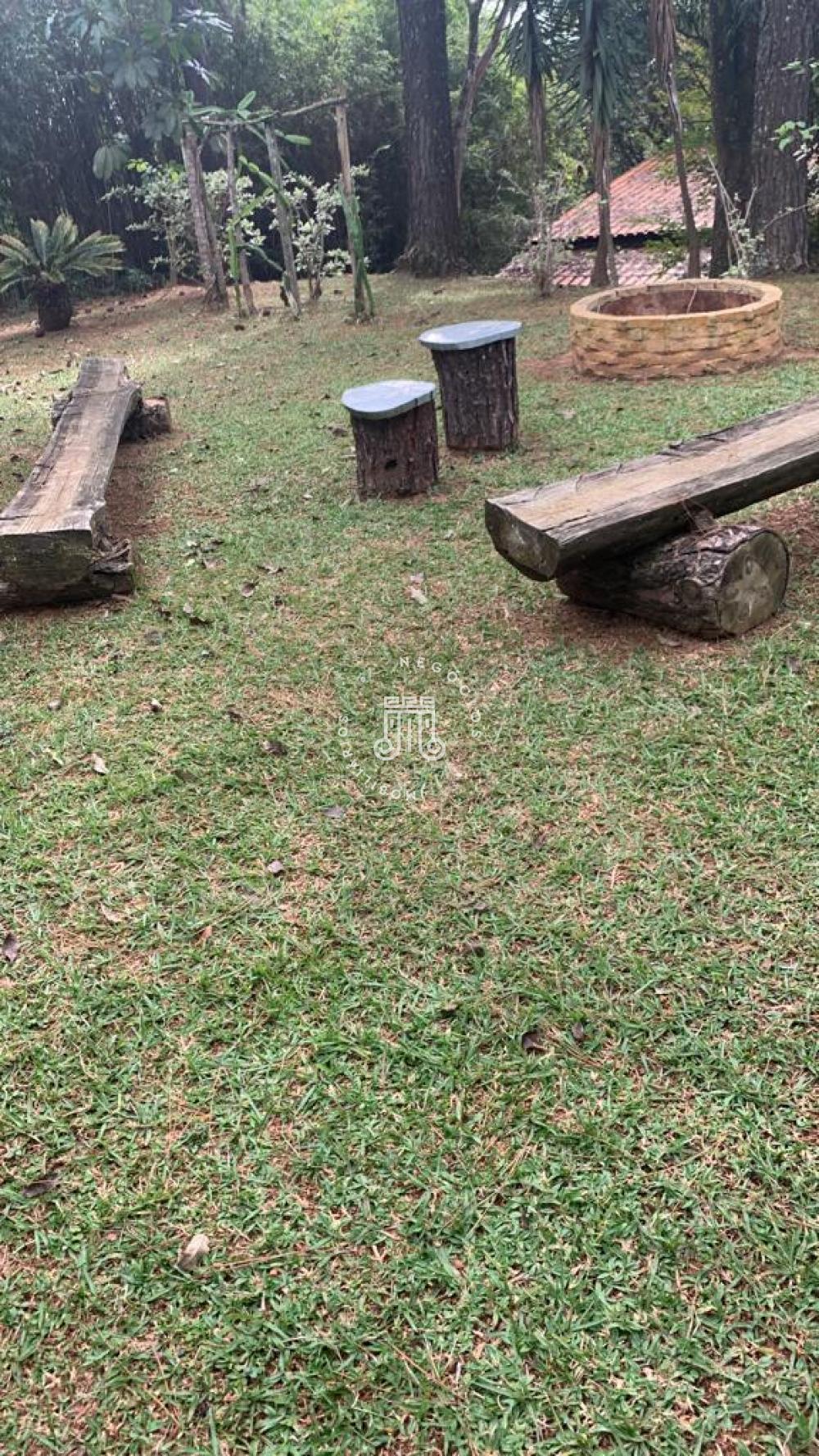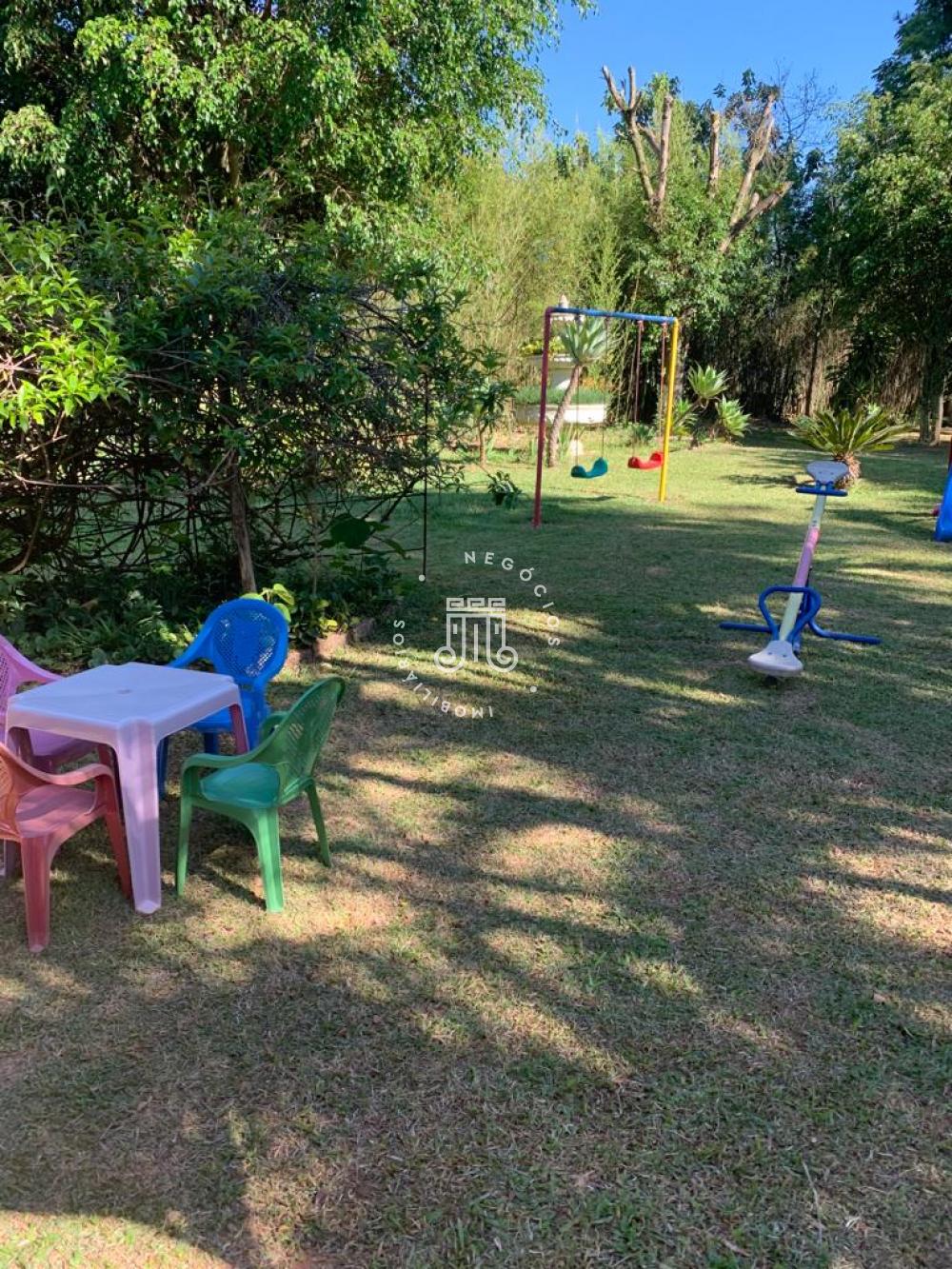 Área externa com jardins, fonte, piscina, churrasqueira, casa para caseiro com 1 dormitório, sala, cozinha e banheiro, canil para 4 cães grandes, cocheira, campo de futebol, pomar produzindo diversas árvores frutíferas (Manga, abacate, atemóia, lichia, acerola, goiaba, pitanga, mixirica ponkan, mamão, limão, amora e jatobá) e horta produzindo diversos tipos de verduras.