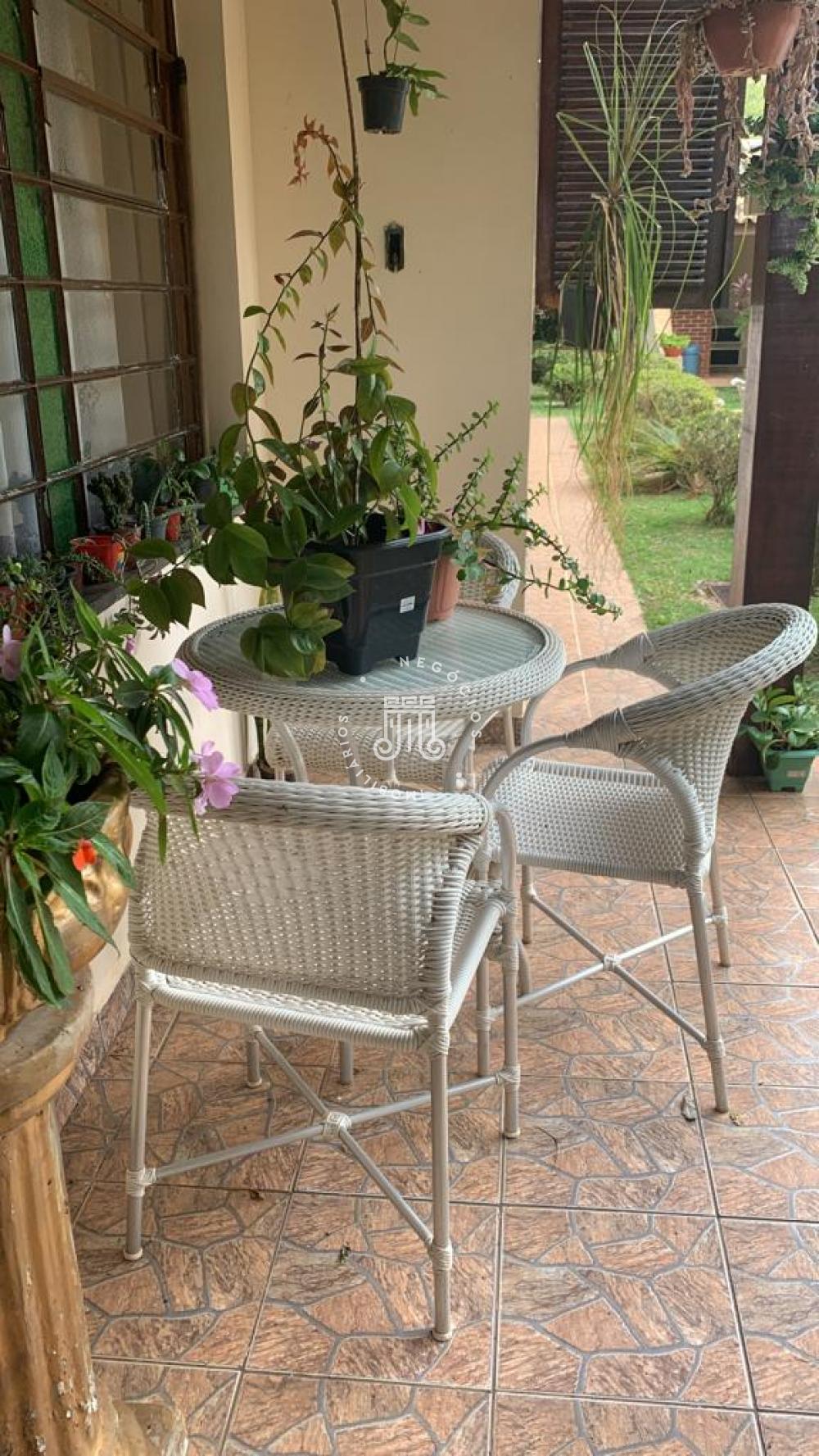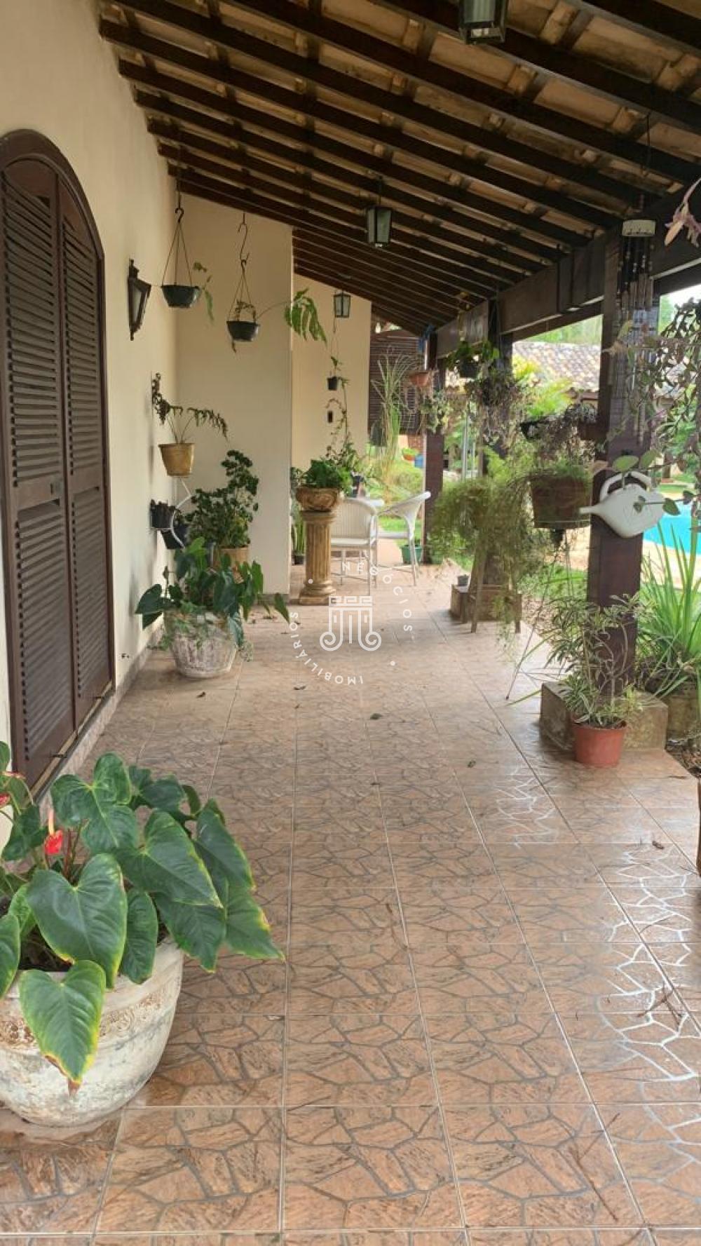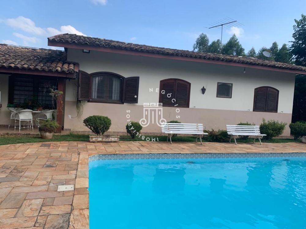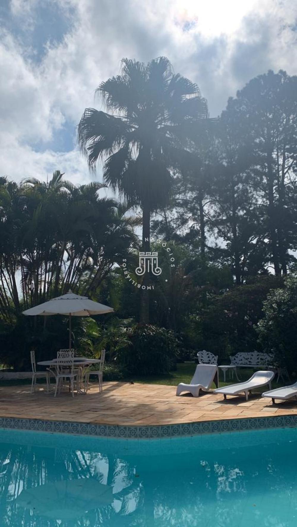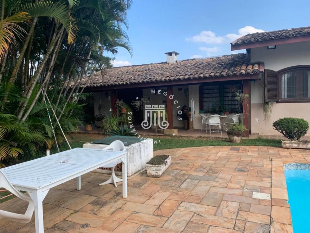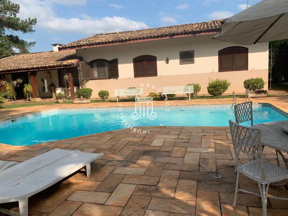 Área externa com jardins, fonte, piscina, churrasqueira, casa para caseiro com 1 dormitório, sala, cozinha e banheiro, canil para 4 cães grandes, cocheira, campo de futebol, pomar produzindo diversas árvores frutíferas (Manga, abacate, atemóia, lichia, acerola, goiaba, pitanga, mixirica ponkan, mamão, limão, amora e jatobá) e horta produzindo diversos tipos de verduras.