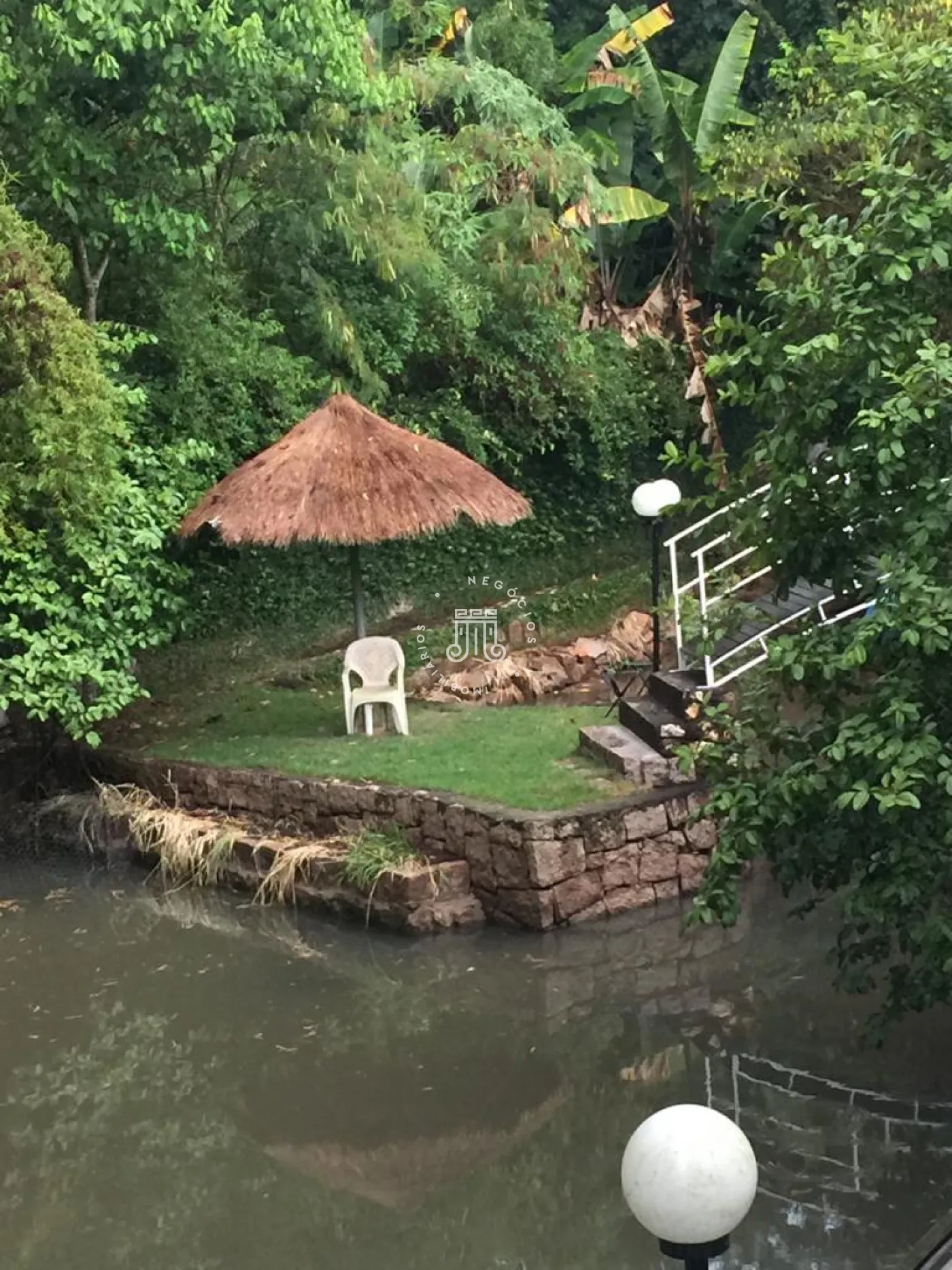 Biblioteca 110 m² com armários. Casa de caseiro. Piscina. Banheiros feminino e masculino, campo de futebol com iluminação, lago carpas, lago de tilápias, galinheiro, horta suspensa, pomar. Garagem para 6 carros coberta e estacionamento descoberto para até 22 carros.