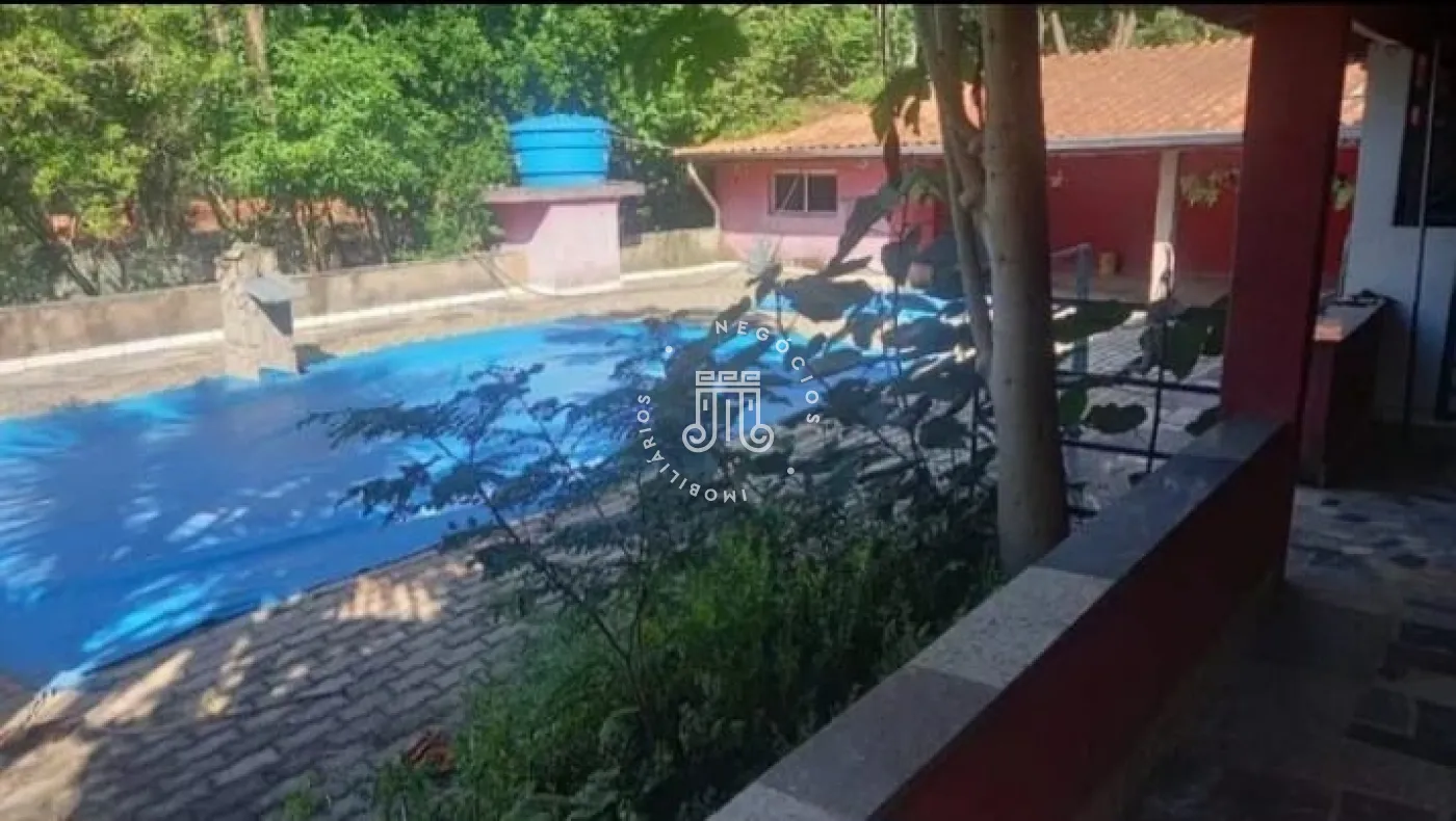 Ótima chácara com 1530m² de terreno e 471m² de área construída, chalé com 2 dormitórios, sala, cozinha, wc social, wc de serviço, barracão com 3 banheiros, piscina, salão de festas, várias vagas.