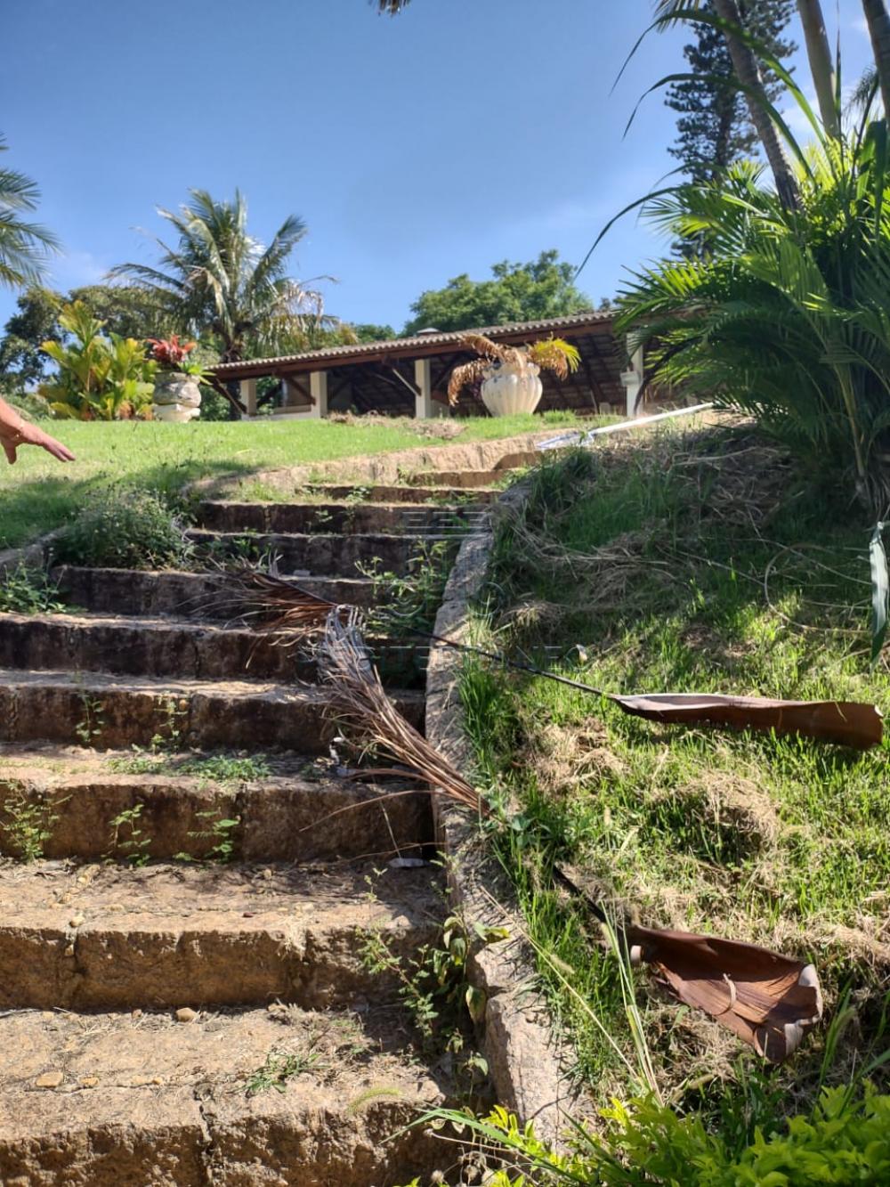 2 casas de caseiro, lavanderia própria, brinquedos, sauna, orquidário, energia elétrica e tratamento de água próprio.