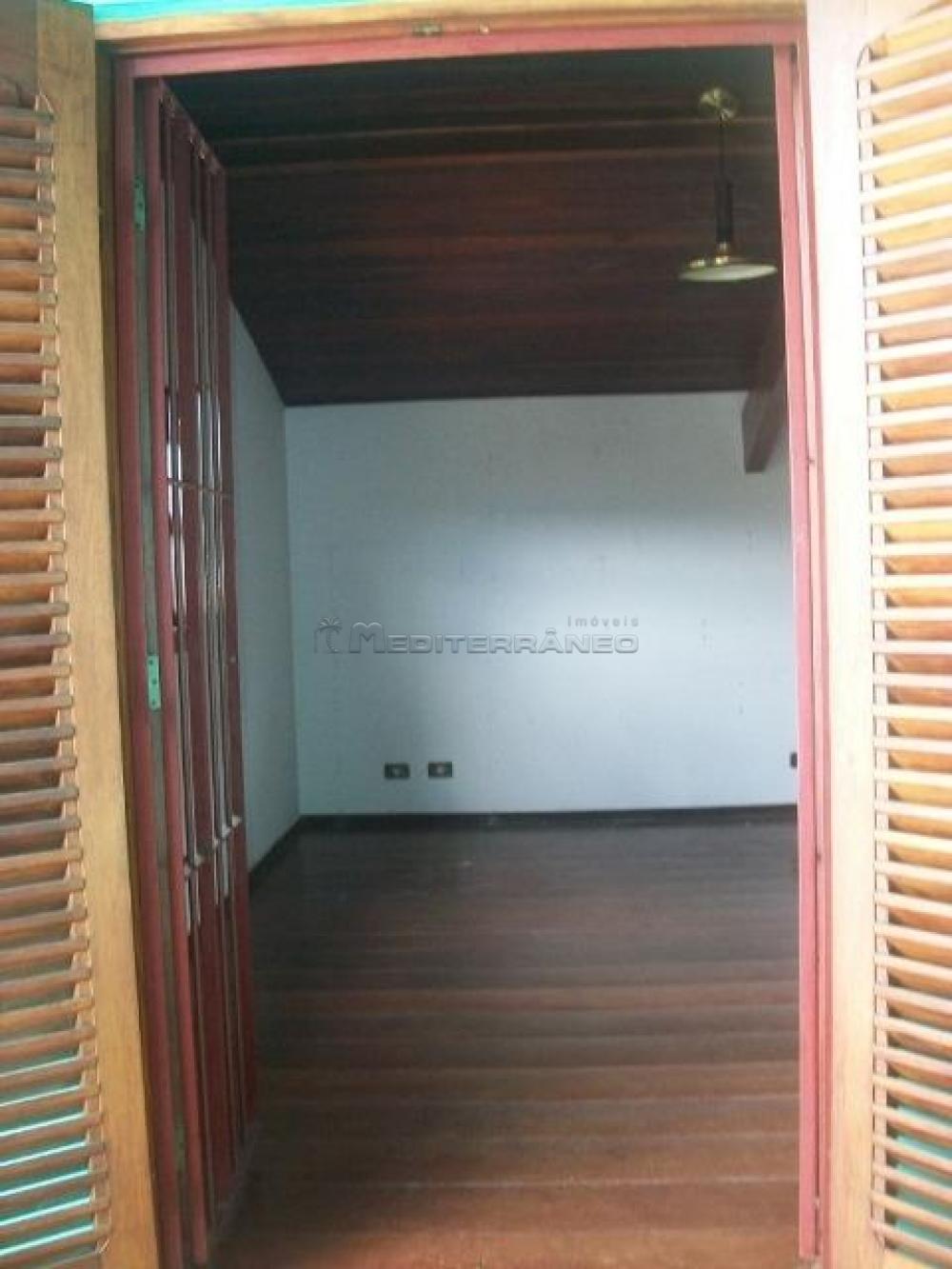 A propriedade possui cinco dormitórios com piso de tábua, sendo dois equipados com camas de solteiro e dois suítes, uma delas com box de acrílico e outra com sauna e banheira de hidromassagem. Há um closet sem armário. O imóvel conta com duas salas, distribuídas em três ambientes, com piso de tábua corrida, além de uma lareira. A copa e a cozinha possuem armários, piso frio e revestimento em azulejo. O banheiro social contém um armário embutido, enquanto o banheiro de serviço tem box de acrílico.