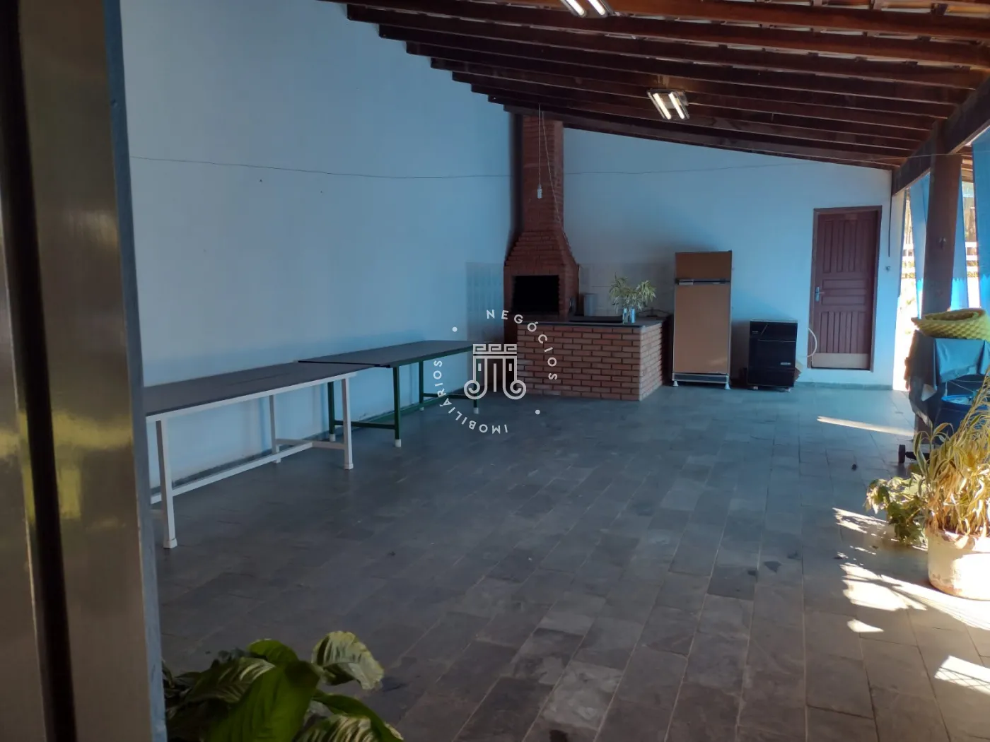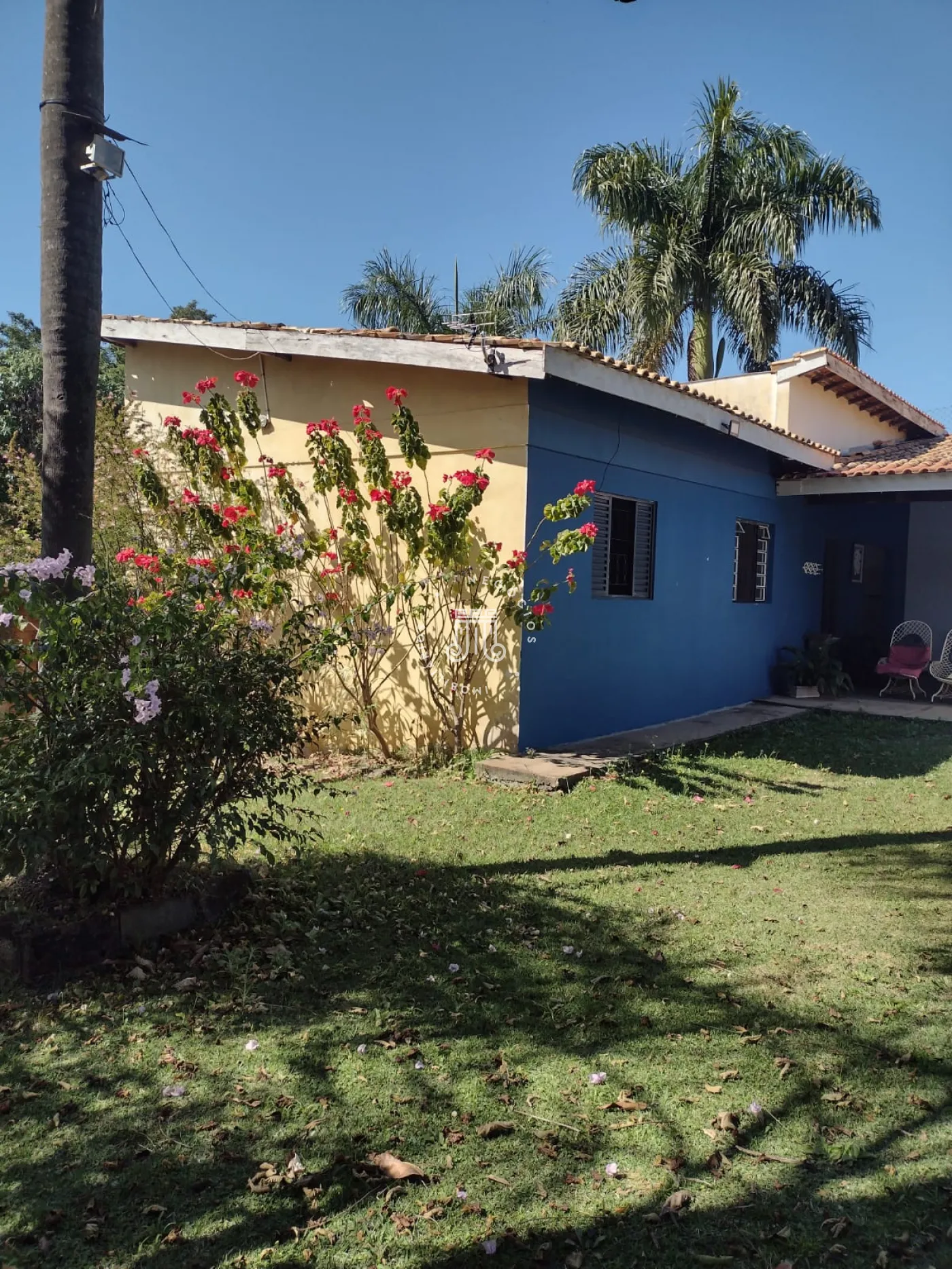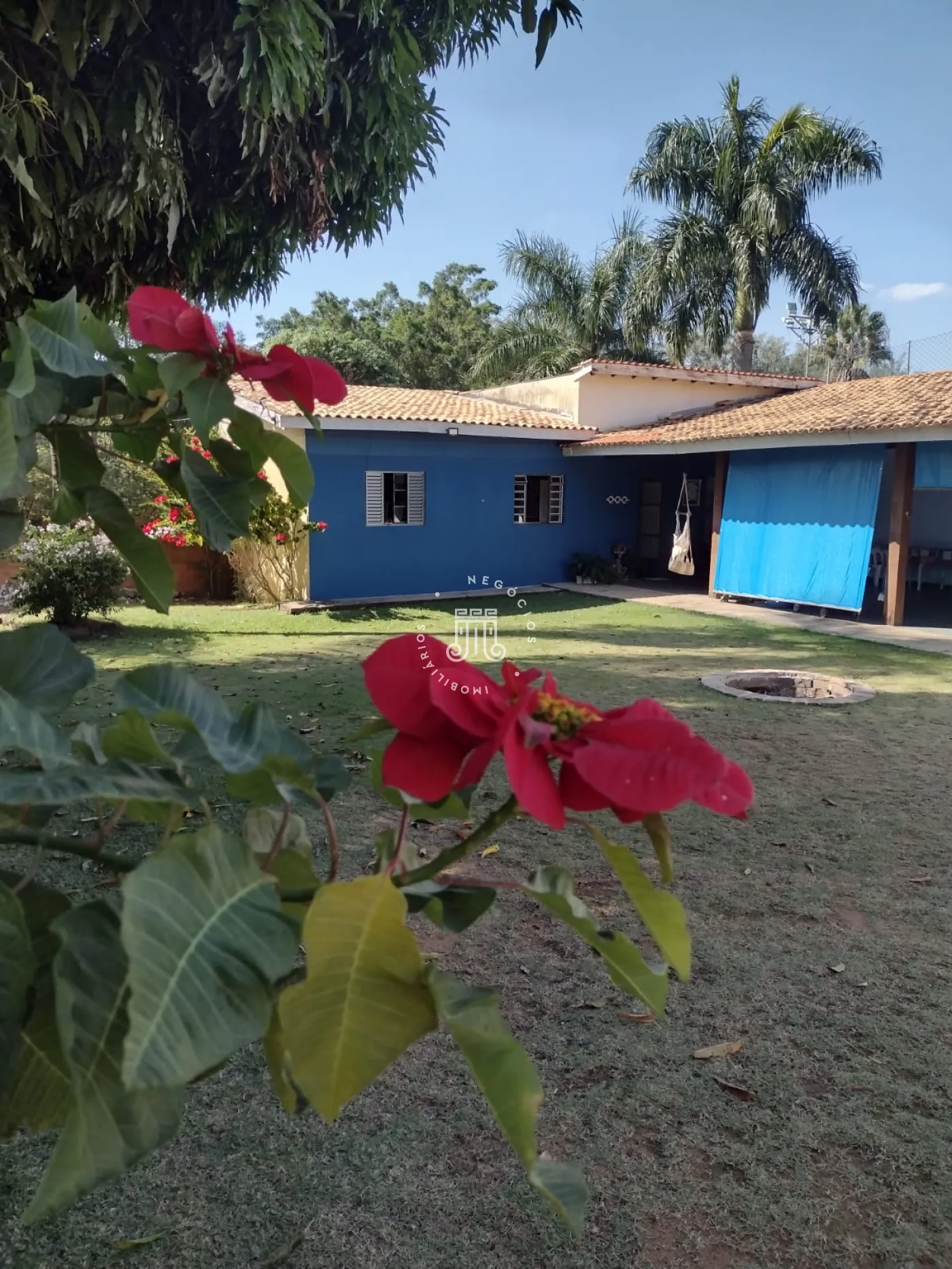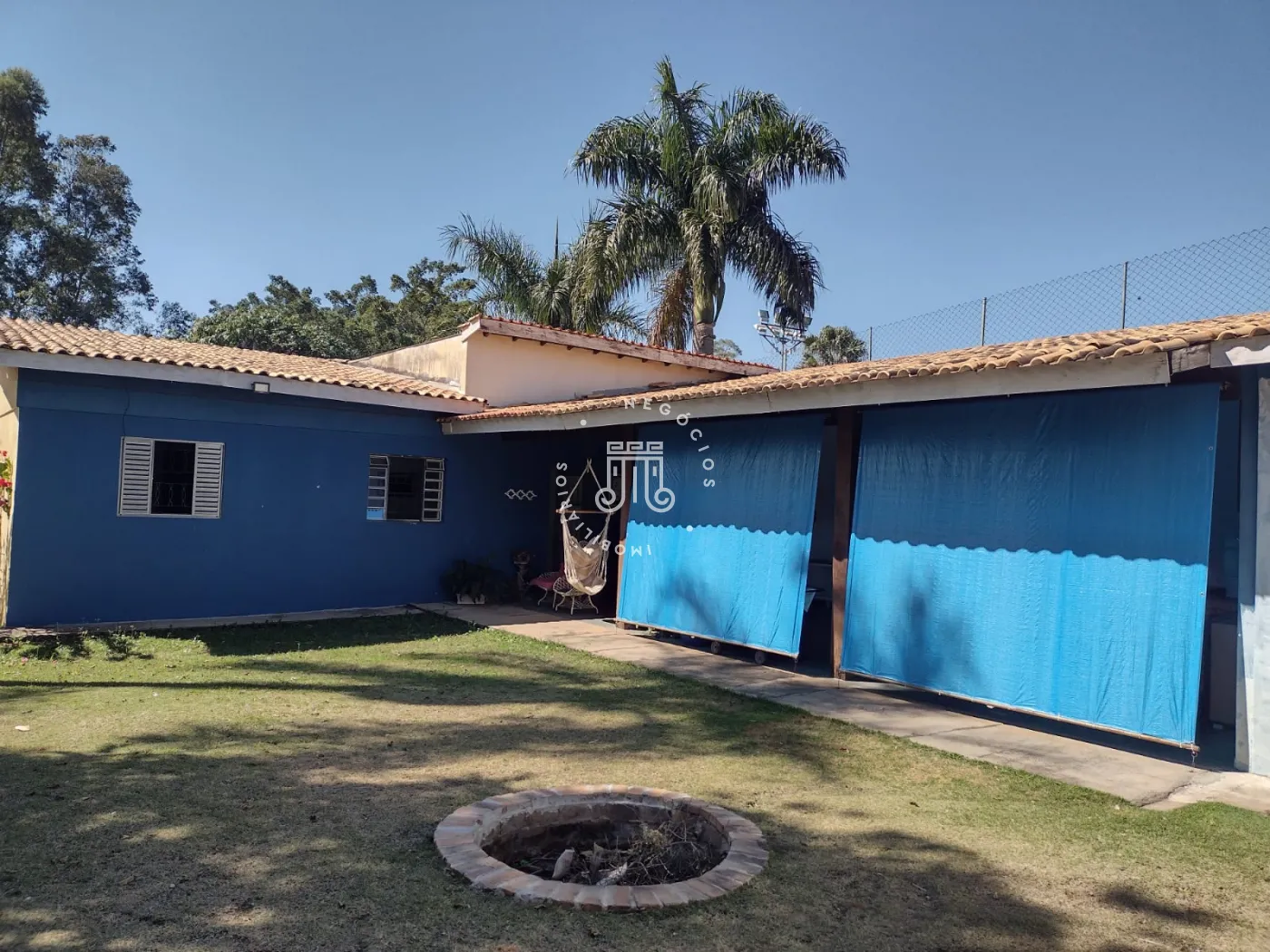 A área externa possui pomar formado com espécies como figo, jabuticaba, laranja, mexerica, limão, abacate, manga e banana. A chácara dispõe de dez vagas para estacionamento.