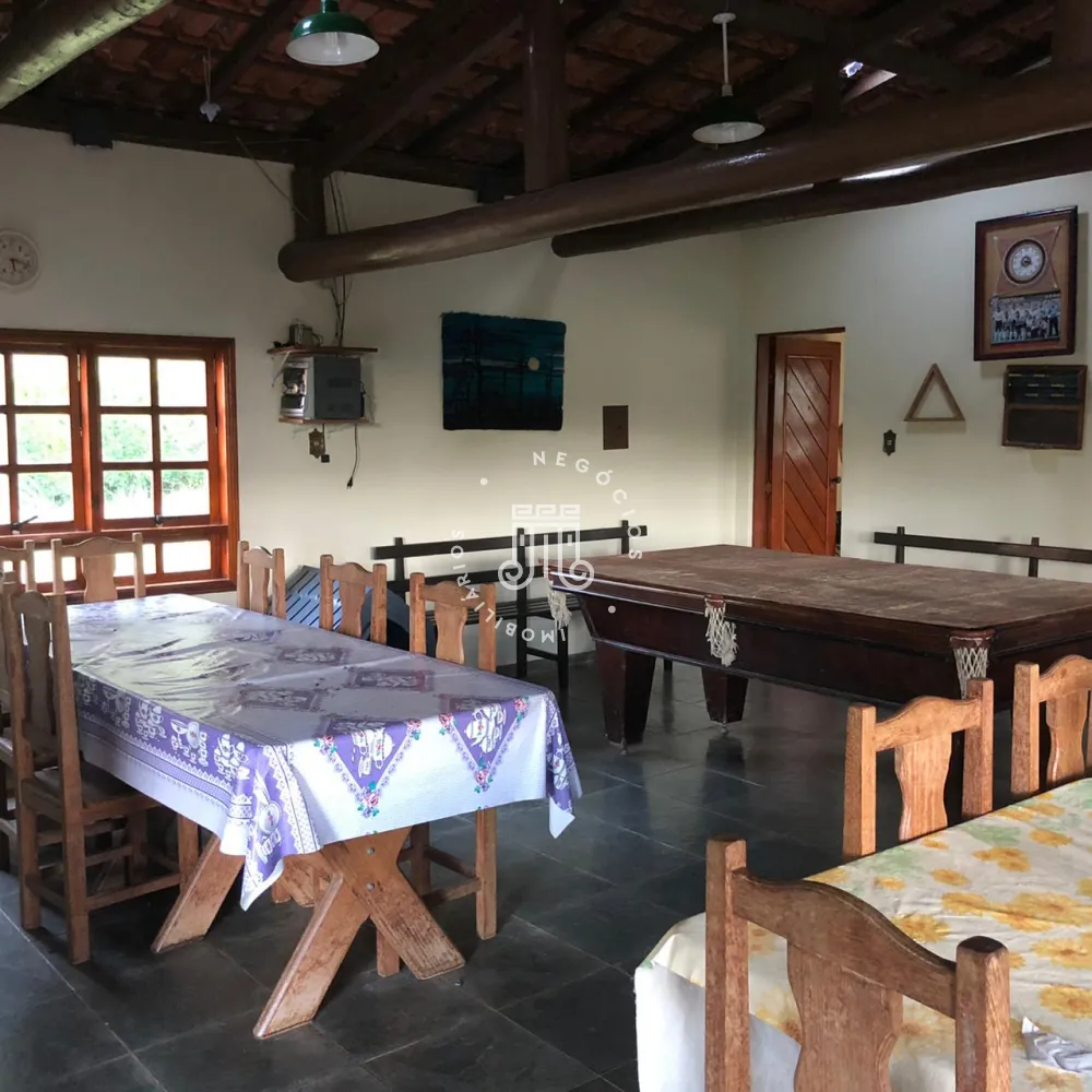 Excelente chácara com terreno de 25.000 m² e área construída de 350 m² divididos em uma casa para caseiros, casa principal, salão de jogos e piscina com sauna e vestiários.