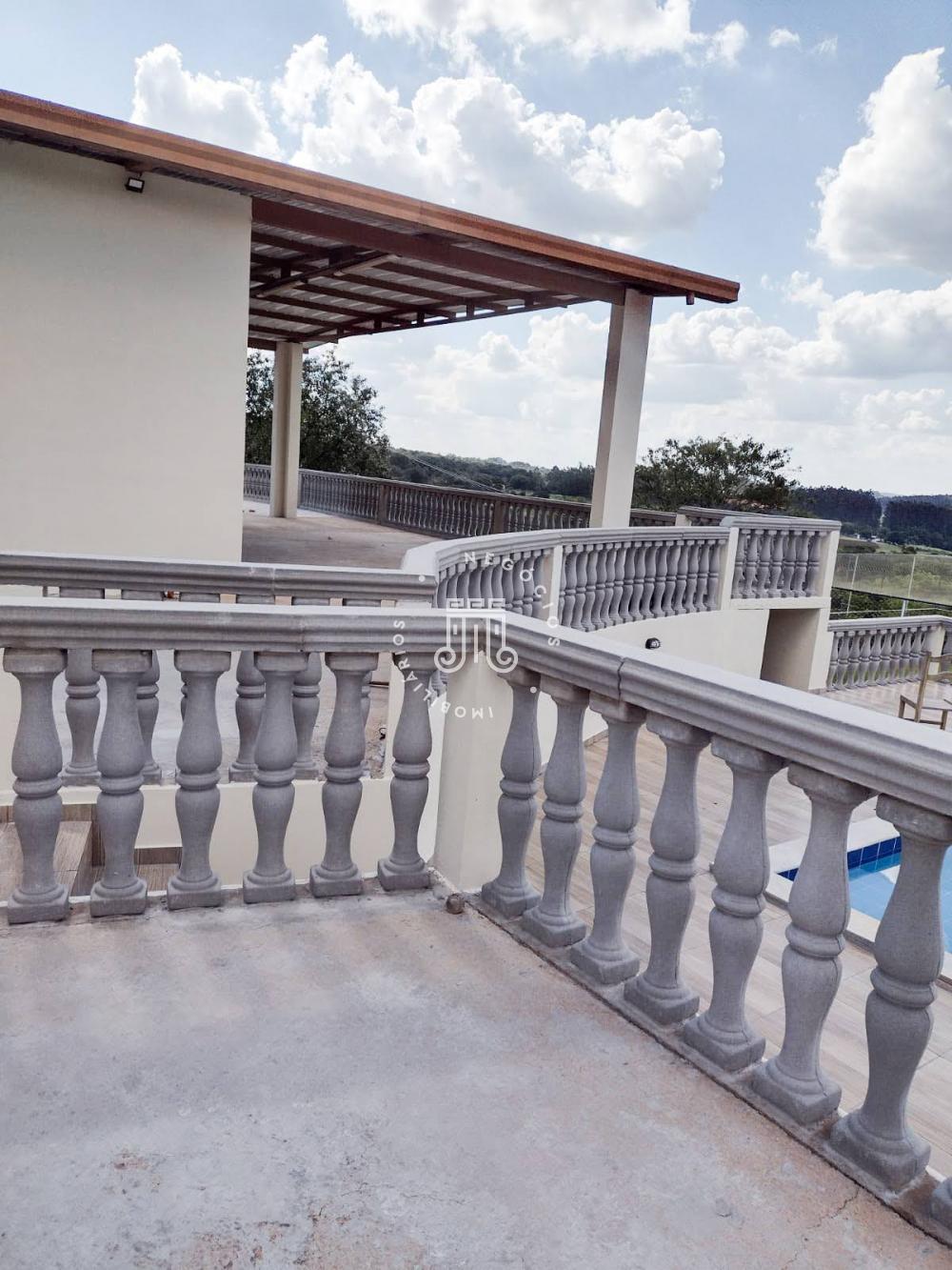 Com terreno de 5.116 m² e 602 m² de área útil composta por 02 suítes, 02 banheiros sociais, sala, cozinha, área de serviços, piscina, área gourmet com churrasqueira, campo de futebol (43m x 23m), 2 vestiários, 1 banheiro para cadeirante, poço artesiano, água encanada, energia elétrica, garagem coberta para 6 carros, estacionamento grande para pelo menos 30 carros, canil e com uma vista deslumbrante.